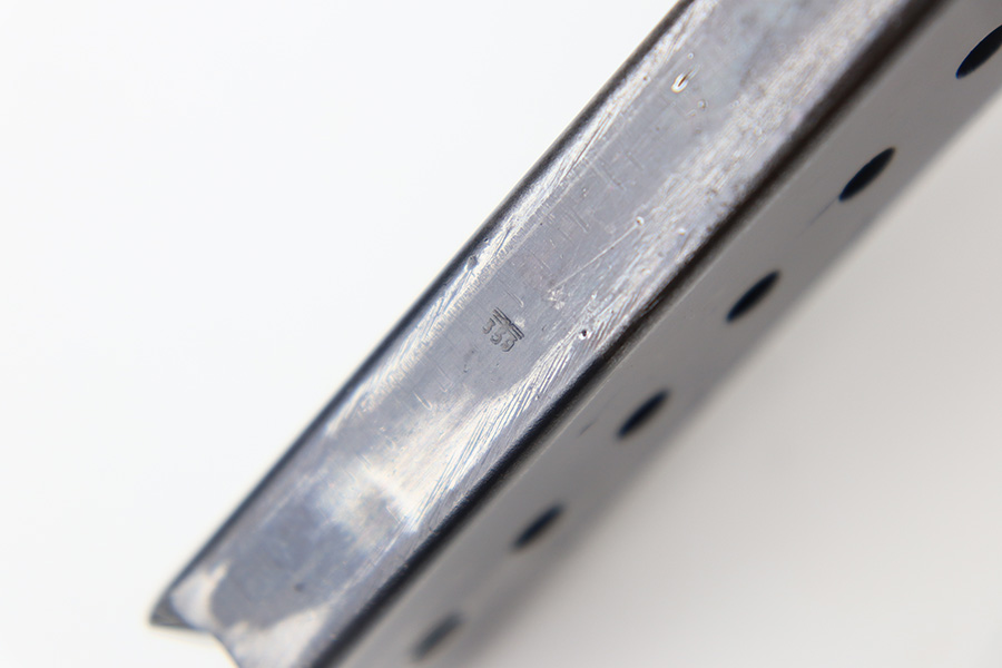 11/20/23 – This is a later wartime production Walther P.38 magazine. The magazine features a P.38v and “ac” stamp on the left side of the tube. The spine is stamped with an eagle/359 military proof. The original finish is mostly intact with some dark patina and spotty discoloration throughout. Strong, functional spring.