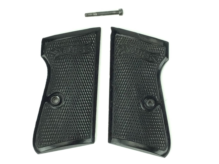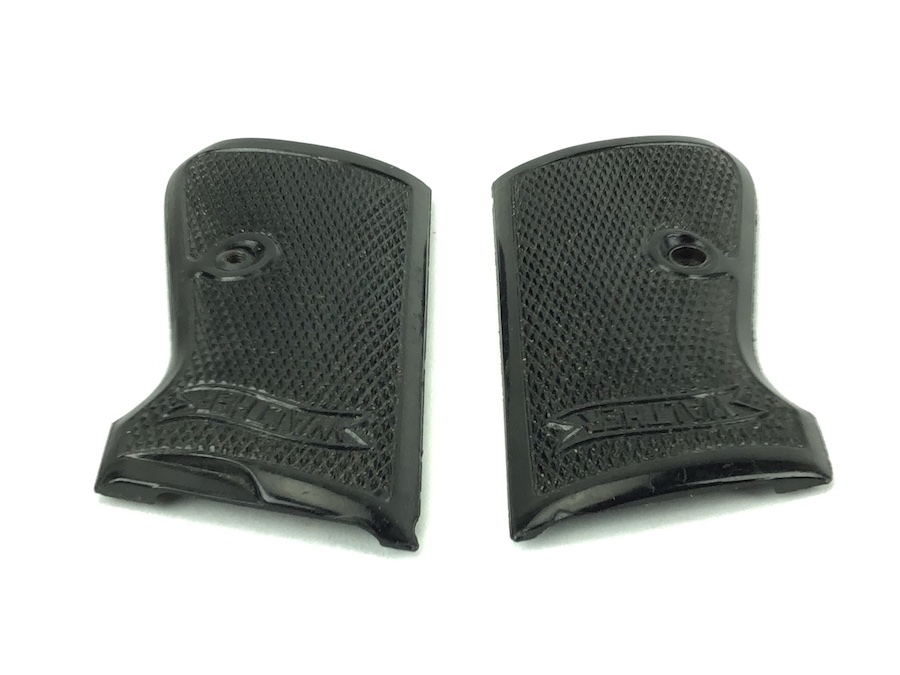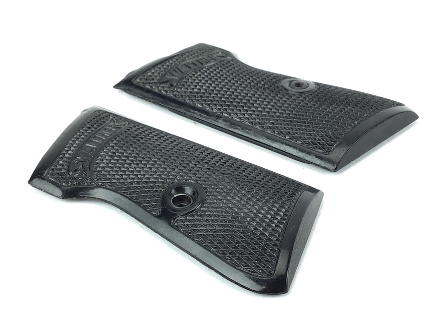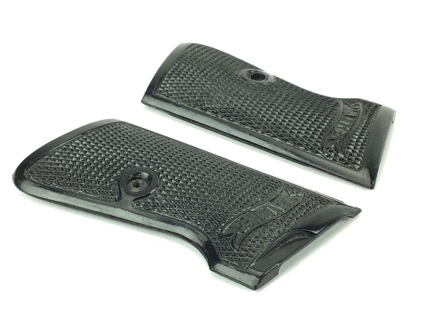 8/6/21 – Original and excellent pair of WW2 era Walther PP grips and screw. The checking is strong and crisp. There are no cracks or chips. These are the un-weighted, wartime variation. Guaranteed original and authentic.