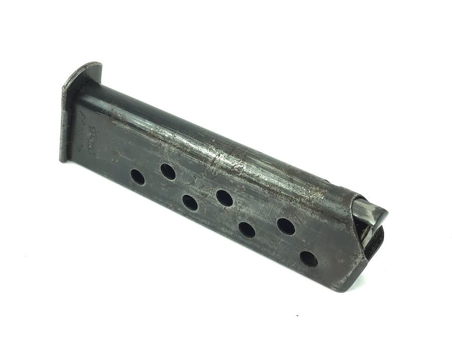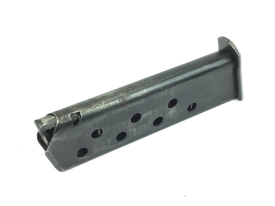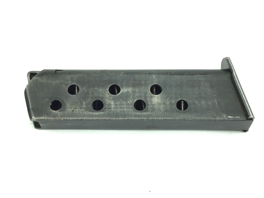 9/22/21 – This is an original wartime Walther PP magazine from WW2. The magazine has a dull blued finish and is in good condition. There is use wear and minor pitting. The spring is strong and fully functional. Priced accordingly.