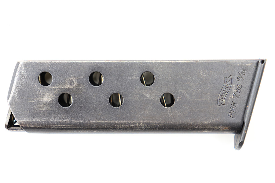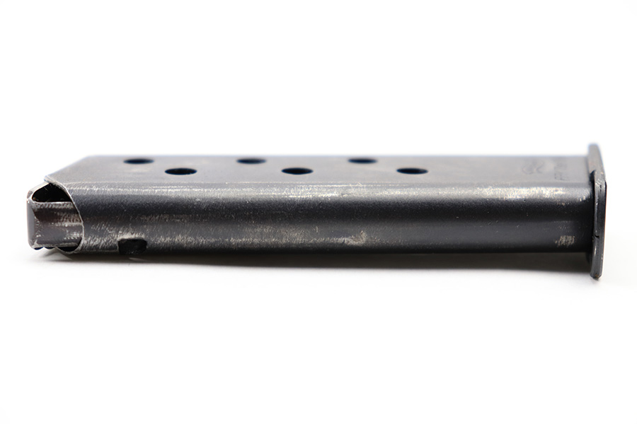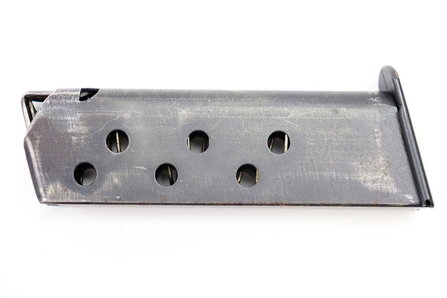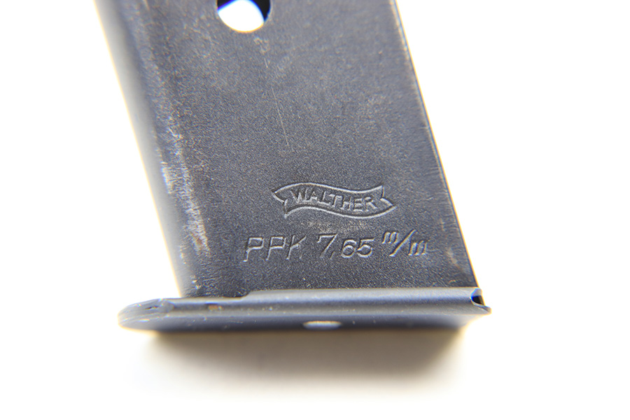 6/23/22 – This is an original wartime production Walther PPK magazine. The magazine has an excellent dull blued finish throughout with some mild surface wear and spots of patina along the spine. The spring is strong and functional without issues.