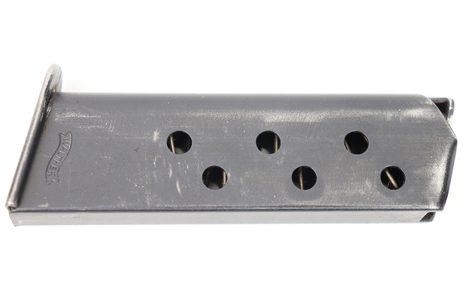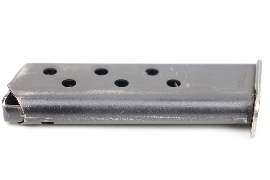 2/28/23 – This is an excellent condition WW2 production Walther PPK Magazine. The magazine has a dull blued finish and minimal finish loss. No rust or pitting and a fully functional spring.