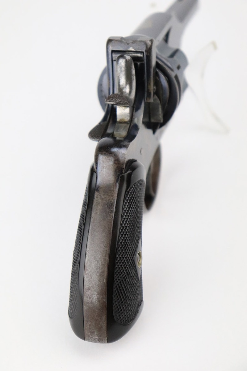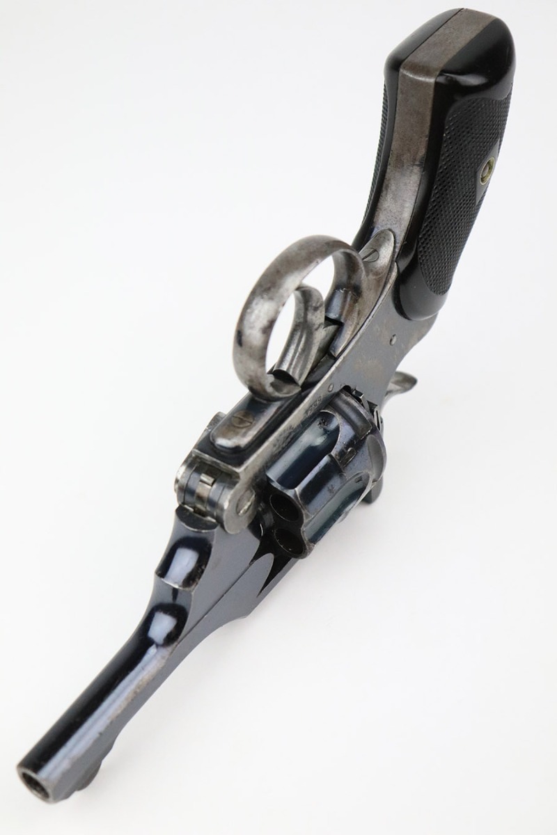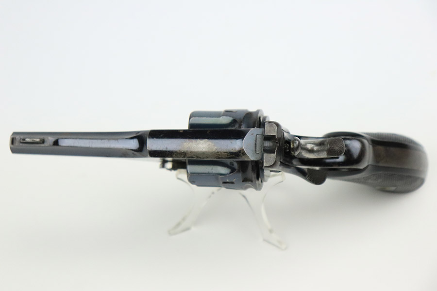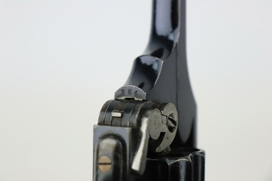 11/30/22 – This is a nice example of a scarce Webley Mark III 320 Pocket Pistol, manufactured in the early 1900’s and chambered in .32 Caliber. This one is all matching and has a fairly early serial number. It has retained roughly half of its early commercial high polish finish. There are areas of obvious splotchy discoloration on the whole frame and on the top strap. Wear around the muzzle and on the high edges in general. Comes with nice period-correct blackish-brown bakelite grips. The bore is excellent – shiny with strong rifling.