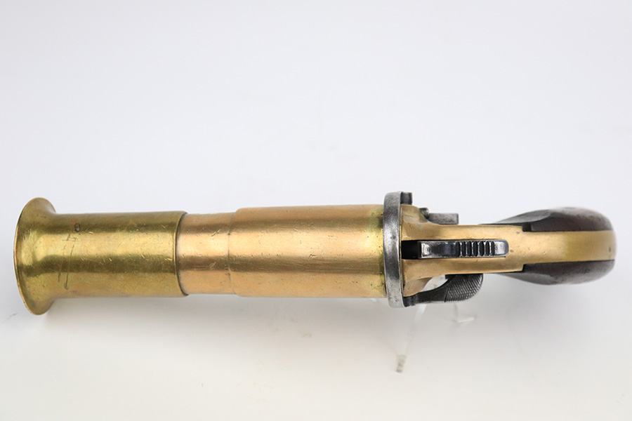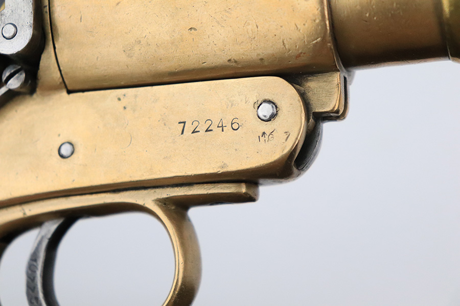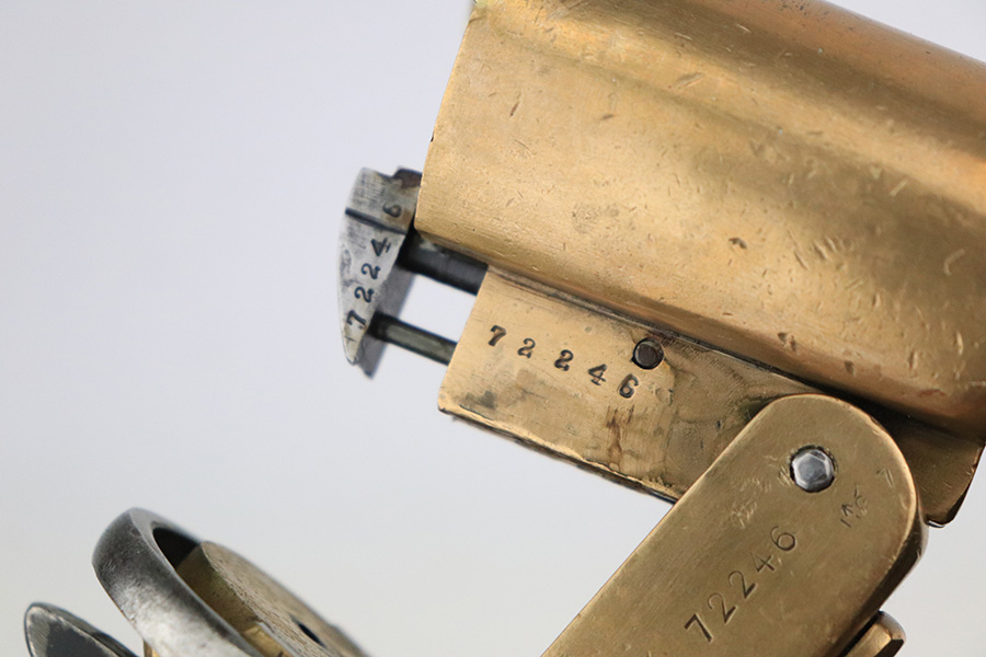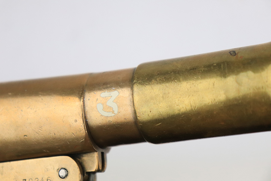 6/8/22 – This is an original WW1 production Webley & Scott Flare Signal Pistol. The Mark 3* began production in 1916 and featured a swiveling lanyard loop and flanged barrel. This example is in great condition with all original matching numbered parts. Fully functional with smooth action. The original wood grips are in great condition as well with only some mild wear. There’s evidence of aging throughout, but this is to be expected from an item over 100 years old.