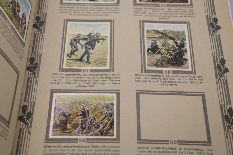 10/17/20 – This is an original, somewhat rare Germany Army card collecting book. The cards were either in the book at print or collected individually. There are hundreds of images depicting all things Wehrmacht. It was printed in 1936 in Germany.