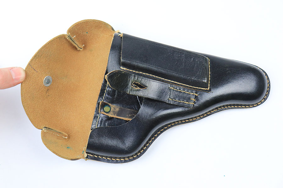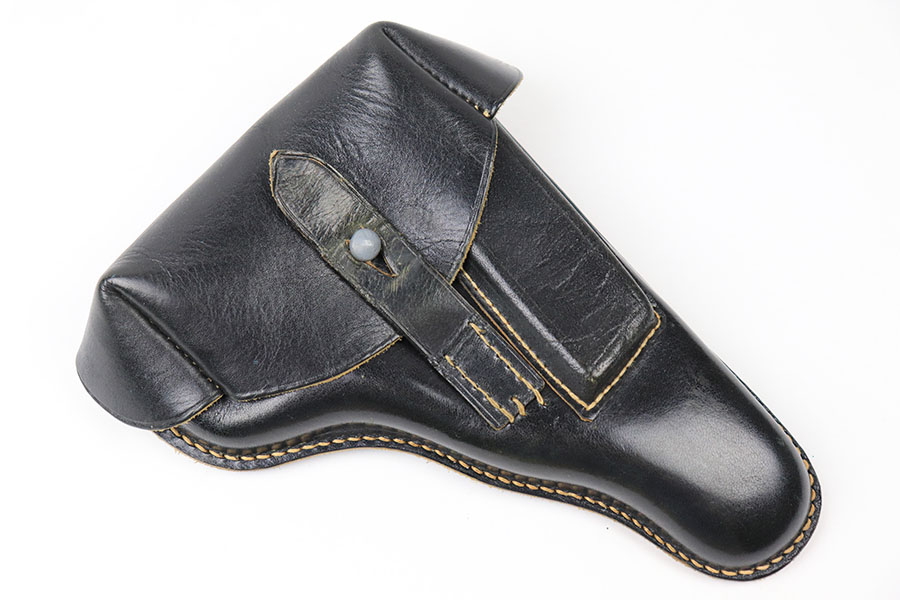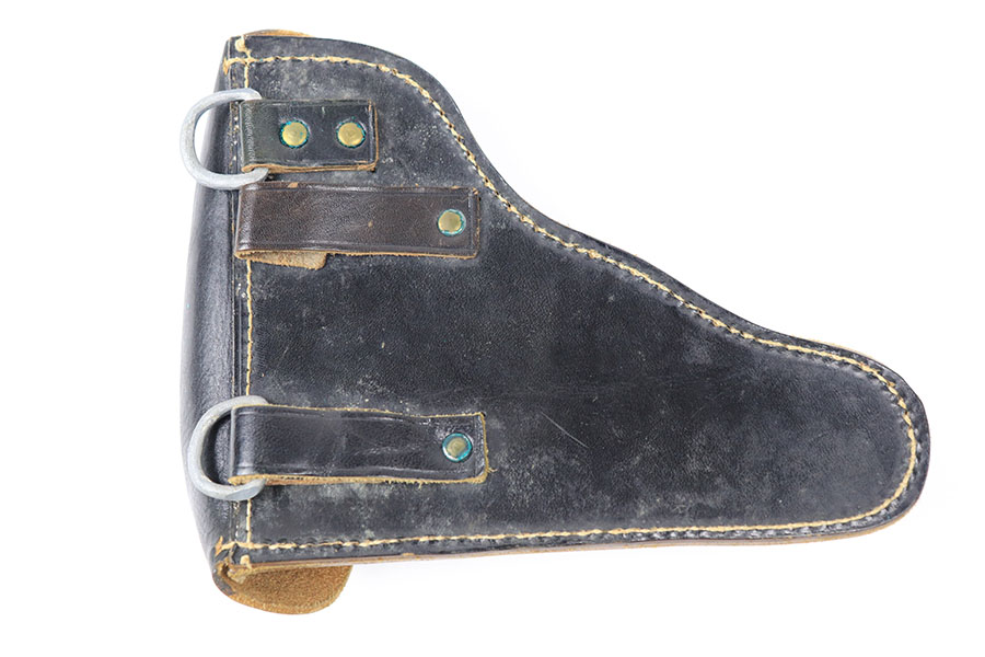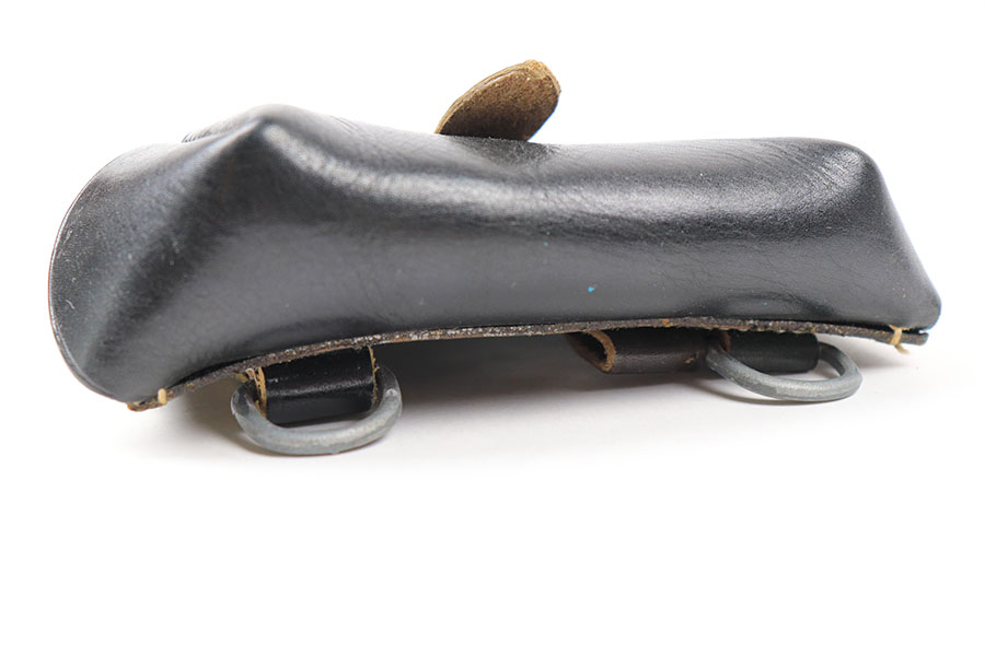 9/2/21 – This is a minty condition, unmarked holster for a Mauser HSC or similar sized 7.65mm pistol. The black leather is very clean and crisp. Excellent, tight stitching is completely in tact. The holster is similar to other holsters made by “WERSA” from the WW2 era, but this holster has no markings. We’re guessing it’s likely end-of-war 1944-45 production and never issued.