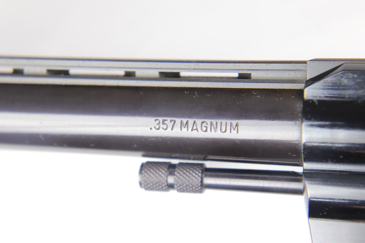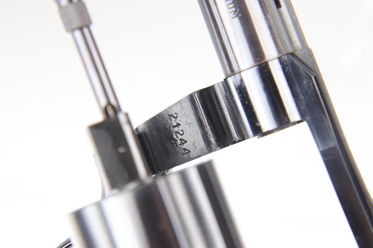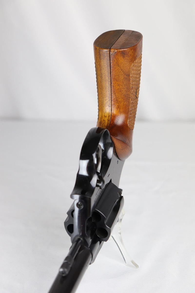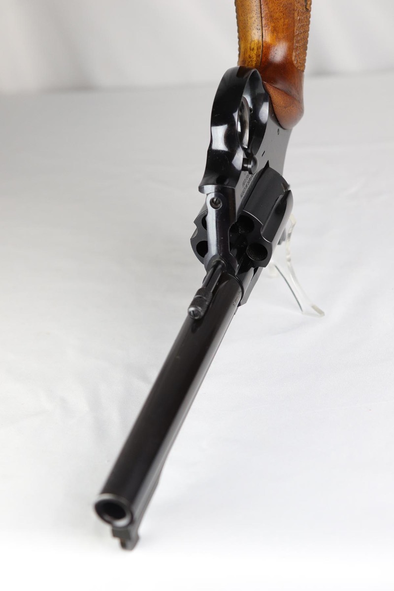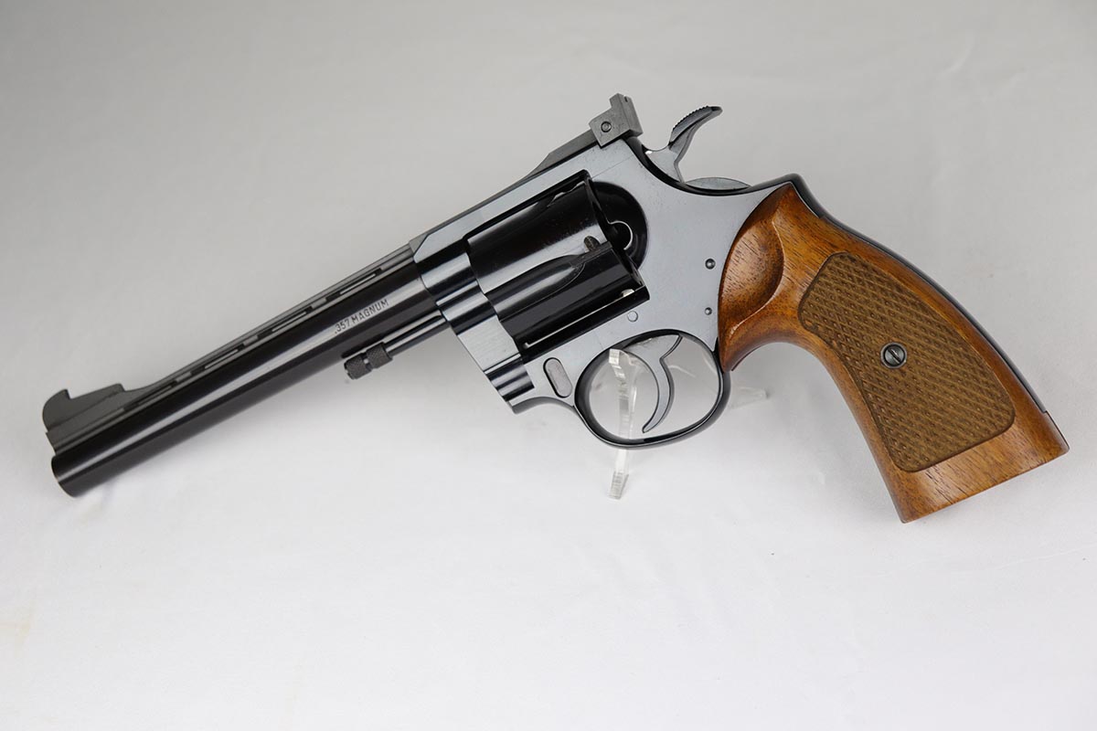 1/27/21 – Arguably the best and the most expensive revolver ever made, Korth was designed by Willie Korth in West Germany in the mid sixties, with all parts completely hand made from one solid billet of steel, hand fitted and beautifully finished. The trigger system was proprietary, invented by Herr Korth himself and rivaled the action of the S&W and Colt Python revolvers of that era. The cylinder was yet another innovation and could be removed from the frame together with yoke with a push of the button. This particular model is the “Sport” model, chambered in .357 magnum, with a 6-inch barrel, adjustable rear sight, and target checkered grips, which proved to be the best combination for a target and a tactical shooter alike. The trigger pull is like butter – crisp and easy. The finish is high gloss original blue rates at 98+% with a tiny rub mark on the rear grip strap. The bore is mint. The gun is proofed and dated 66 (1966) on the barrel which qualifies for C&R.