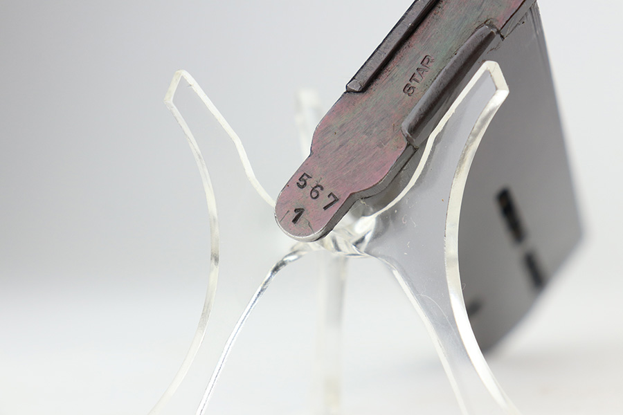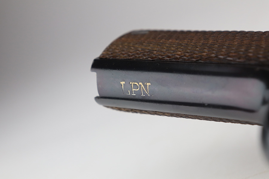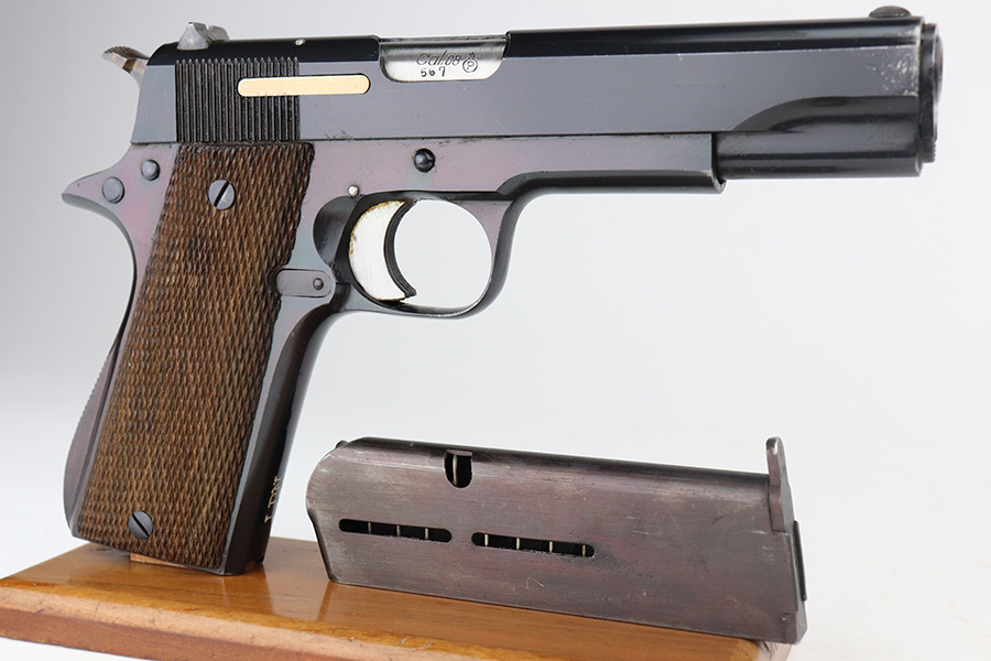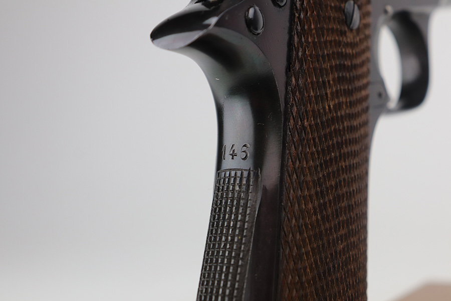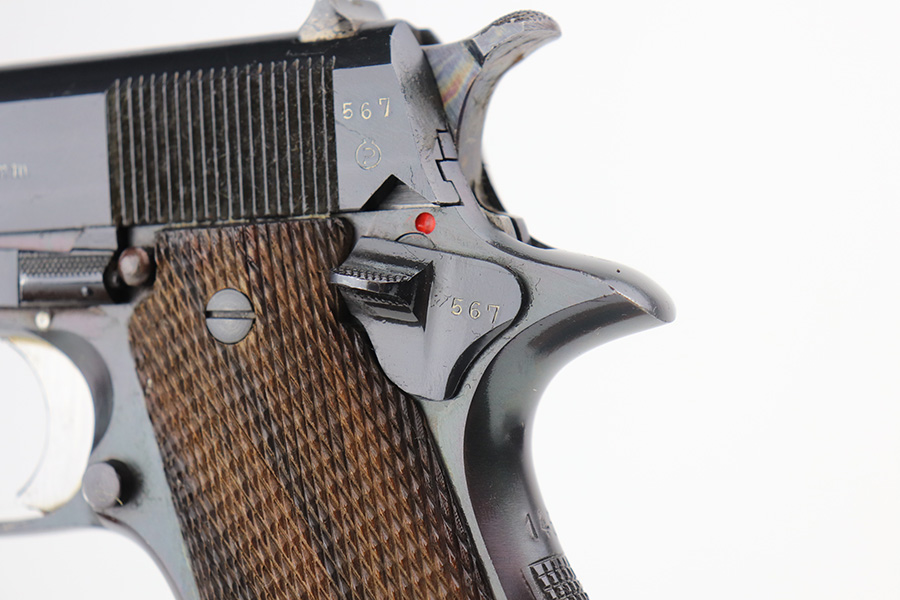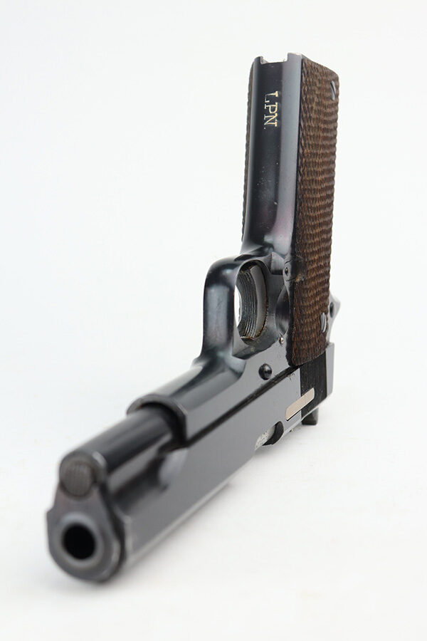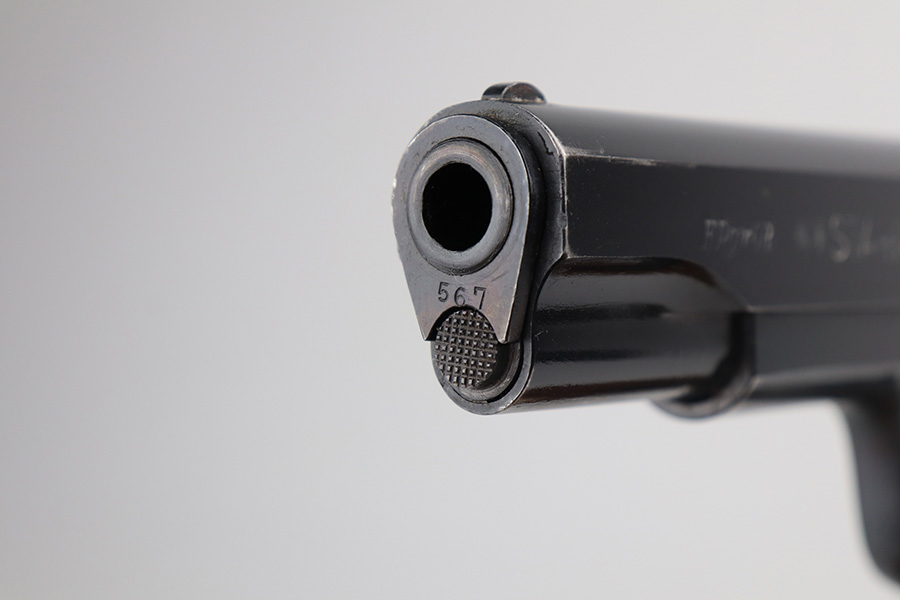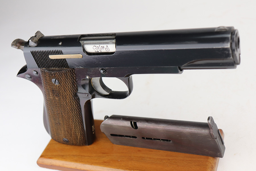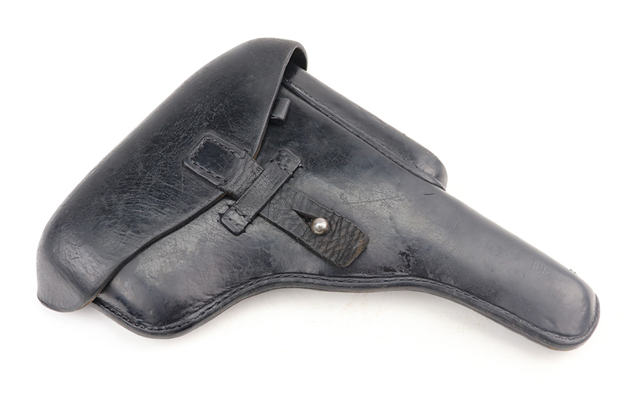 6/9/21 – This is a near-mint example of a Star Model B issued to the West German Police force after WW2. The gun is all matching, has the proper Spanish proofs, and has the proper “LPN” West German Police marking on the front strap. The rig comes with two matching magazines and a matching holster – both numbered at the police arsenal. It has retained about 98% of its bluing – just minor wear on the muzzle and some light handling marks on the front strap. One small spot of minor wear on the top of the slide. Parts of the frame have a really nice plumb color. Excellent wood grips. Mint bore.