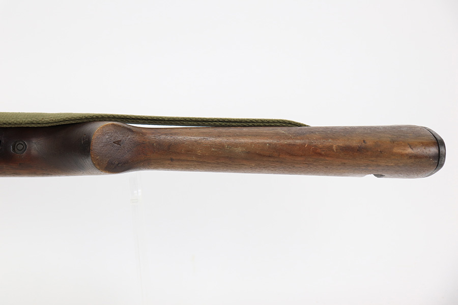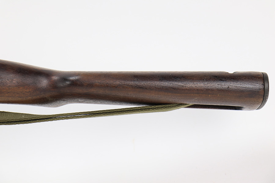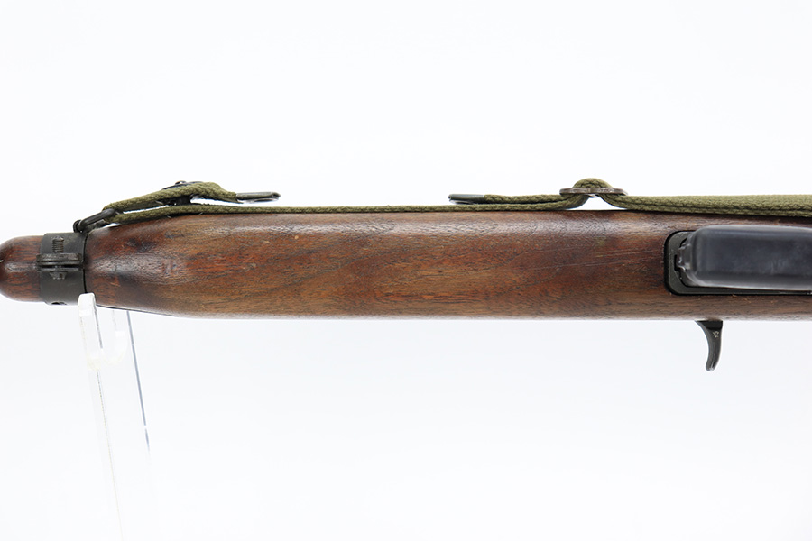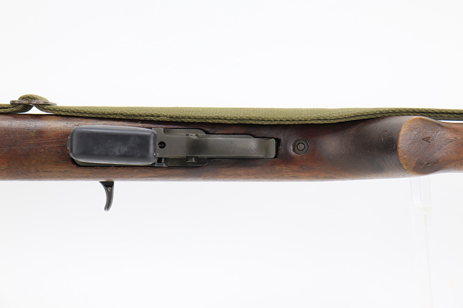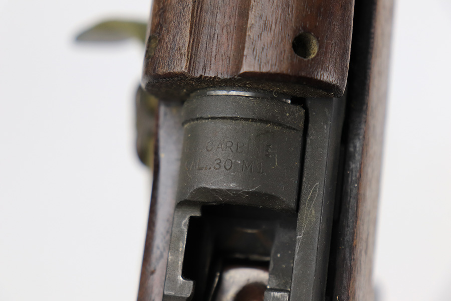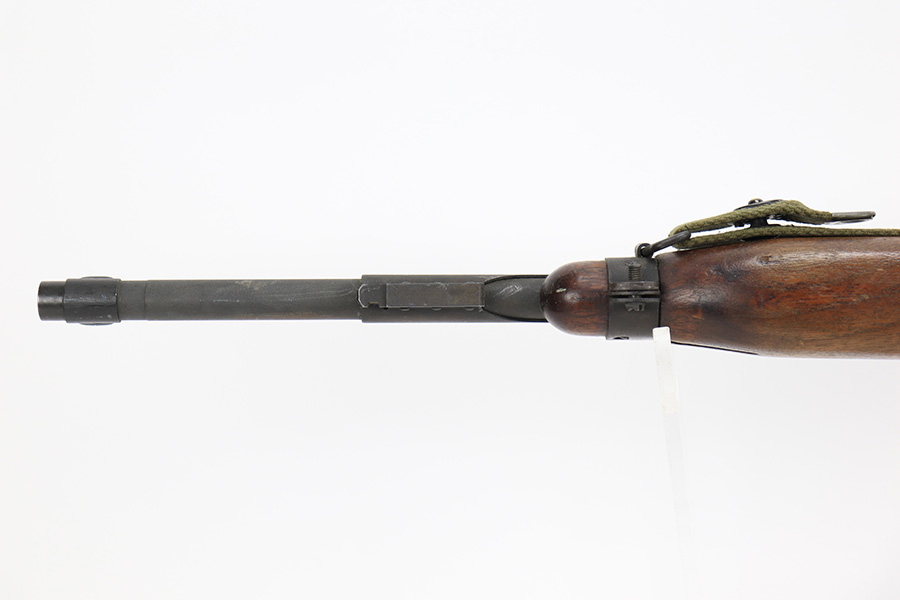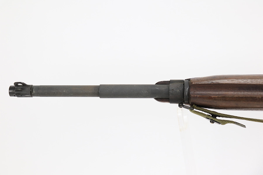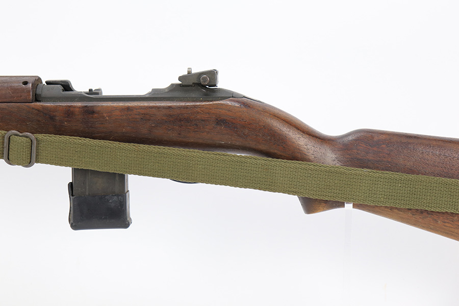 5/16/23 – This is an excellent example of a Winchester M1 Carbine issued to the US military in about 1943. The receiver is Winchester, the barrel was made by IBM, and the stock is “IO” Inland marked. There is an arsenal rework stamp on the left side of the stock. Faint cross-canon cartouche on the right side of the butt stock. An adjustable rear sight and bayonet lug were added, likely for re-issue during the Korean War. It comes with one magazine, an oiler, a green canvas sling, and a green canvas carrying case. The metal parts have retained nearly all of their parkerized finish with just some small spots of discoloration here and there. Excellent wood stock with just some tiny dings on the upper hand guard. Minty bore.