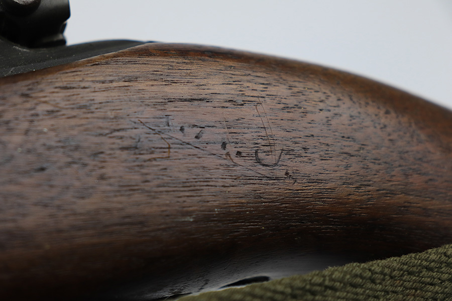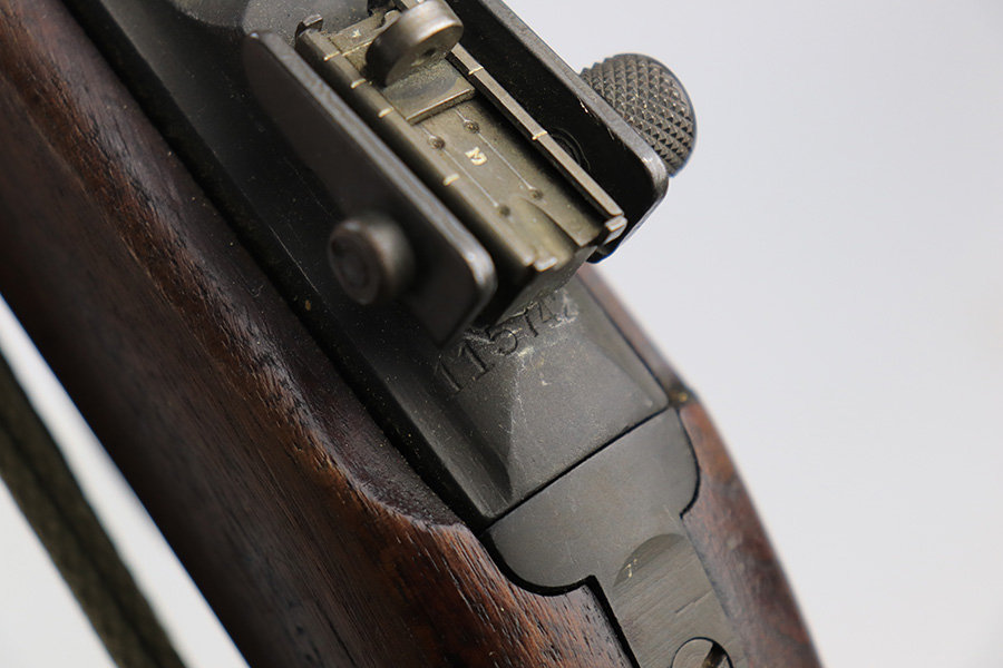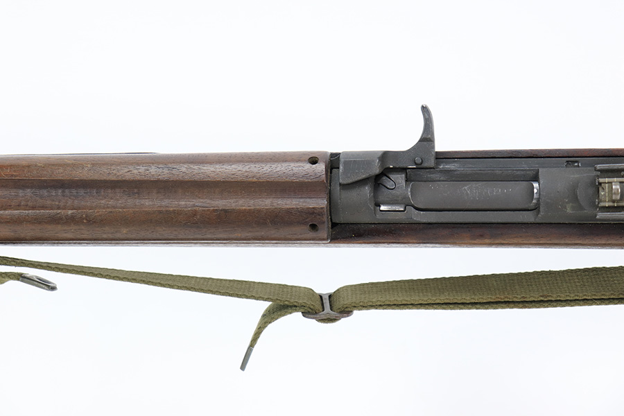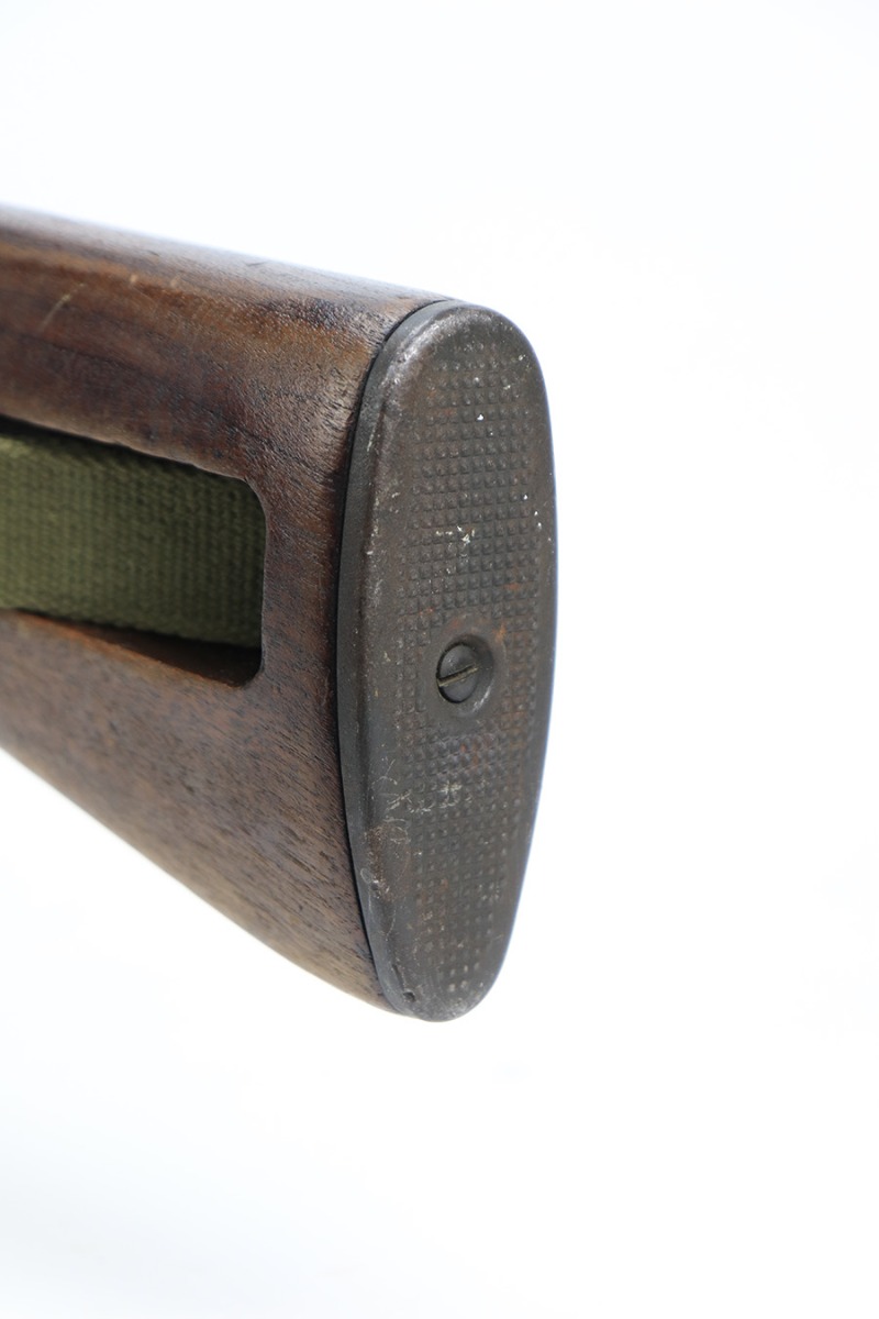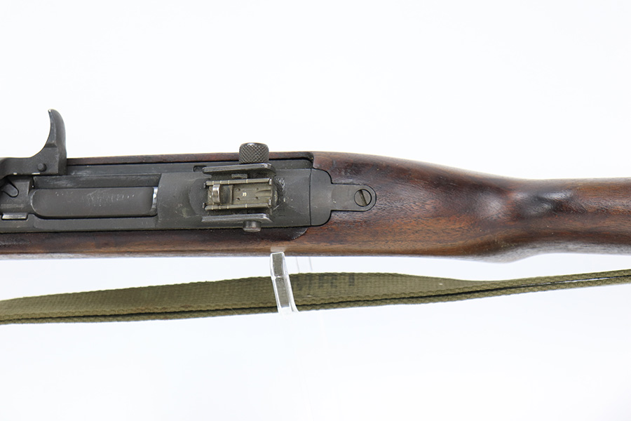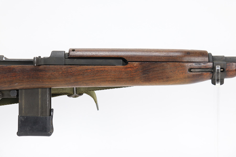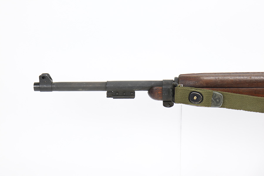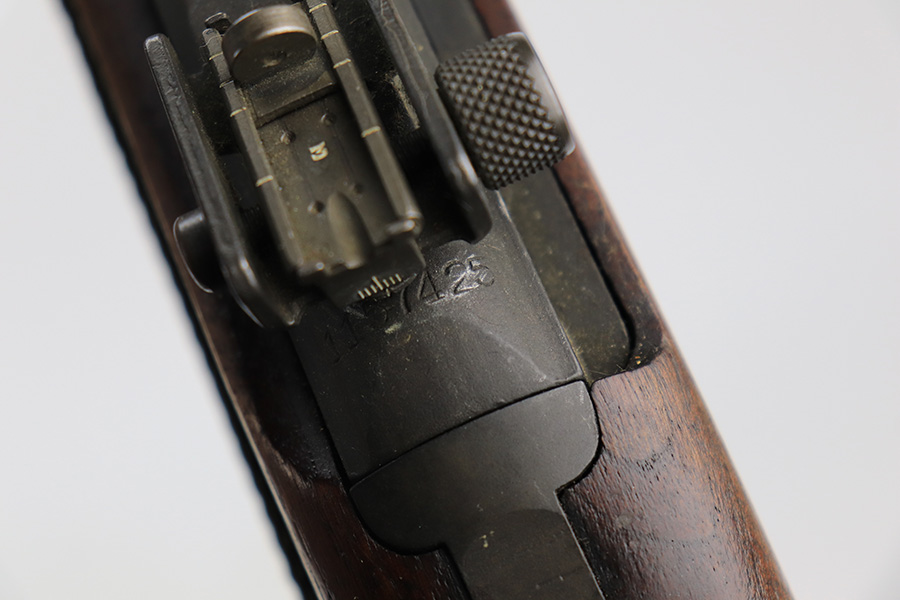 5/16/23 – This is an excellent example of a Winchester M1 Carbine issued to the US military in about 1943. The receiver is Winchester, the barrel was made by IBM, and the stock is “IO” Inland marked. There is an arsenal rework stamp on the left side of the stock. Faint cross-canon cartouche on the right side of the butt stock. An adjustable rear sight and bayonet lug were added, likely for re-issue during the Korean War. It comes with one magazine, an oiler, a green canvas sling, and a green canvas carrying case. The metal parts have retained nearly all of their parkerized finish with just some small spots of discoloration here and there. Excellent wood stock with just some tiny dings on the upper hand guard. Minty bore.
