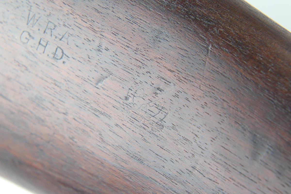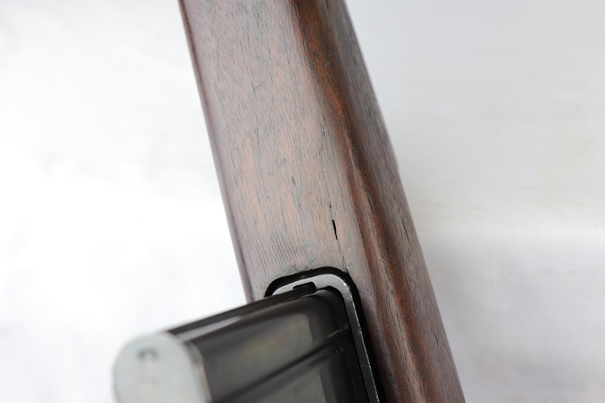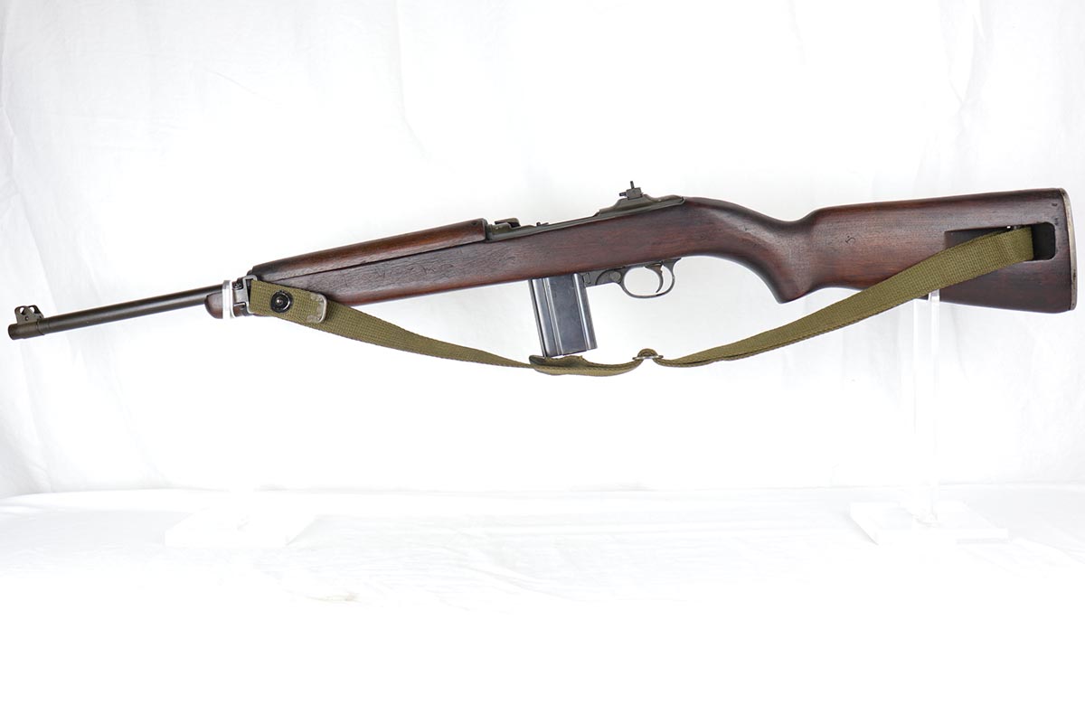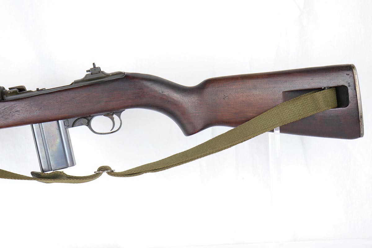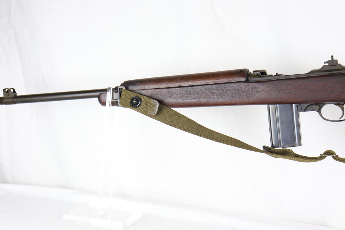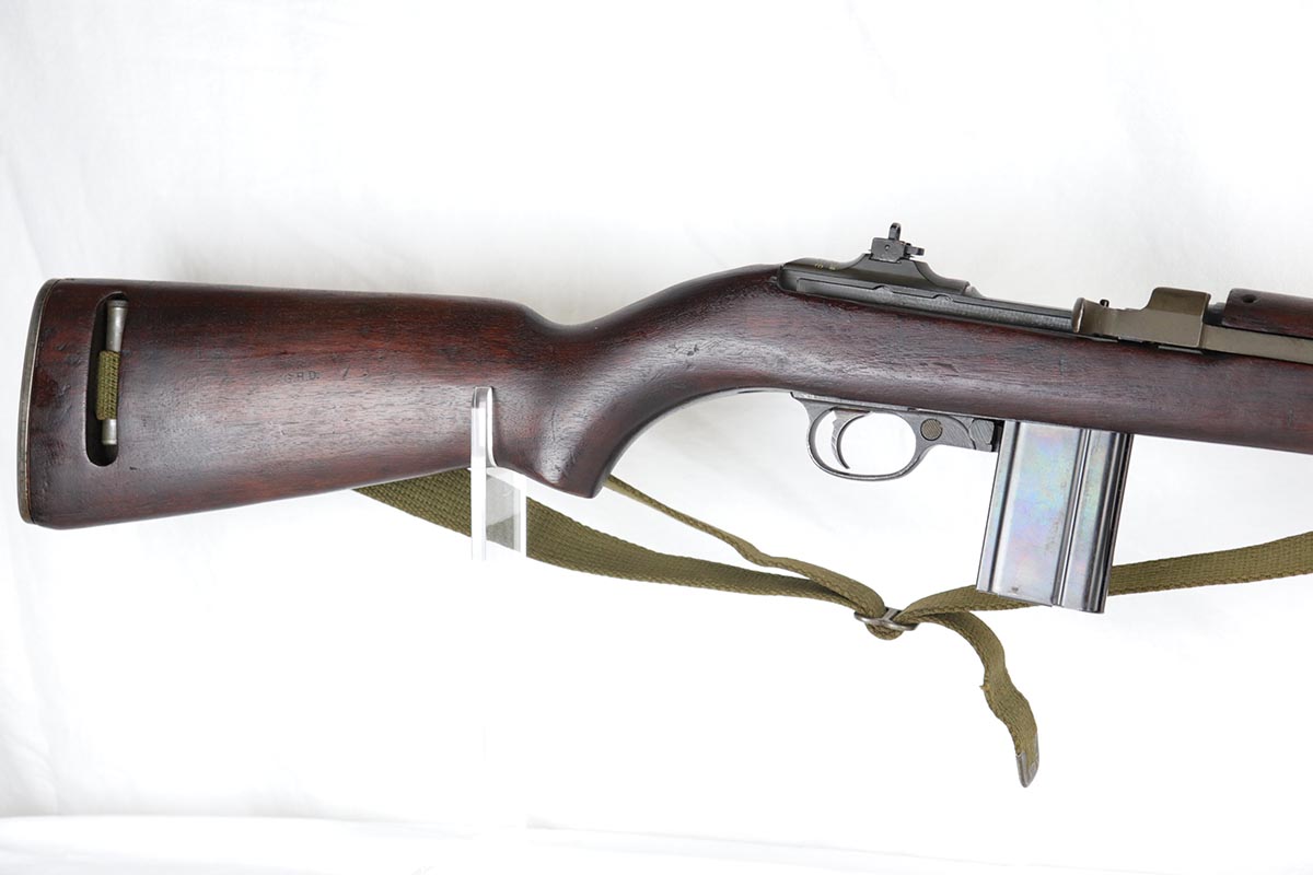 8/20/18 – This is an original Winchester M1 Carbine from the first large scale production run of M1s made by Winchester. It has the original low wood stock with no ‘belly,’ and the right side of the stock is correctly WRA/GHD marked with crossed cannons cartouche accompanying it. The barrel and sling well are both ‘W’ marked. Magazine is SW marked. Rack number visible on wrist. The finish on the rifle is excellent with only minor thinning due to age. Excellent bore and original sling. Only knock is there is a thin crack in the stock that was professionally repaired. Most would have a hard time spotting it if not pointed out, and there’s a photo included at the end of the listing.