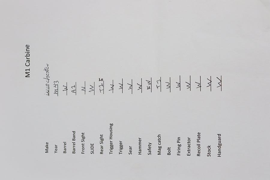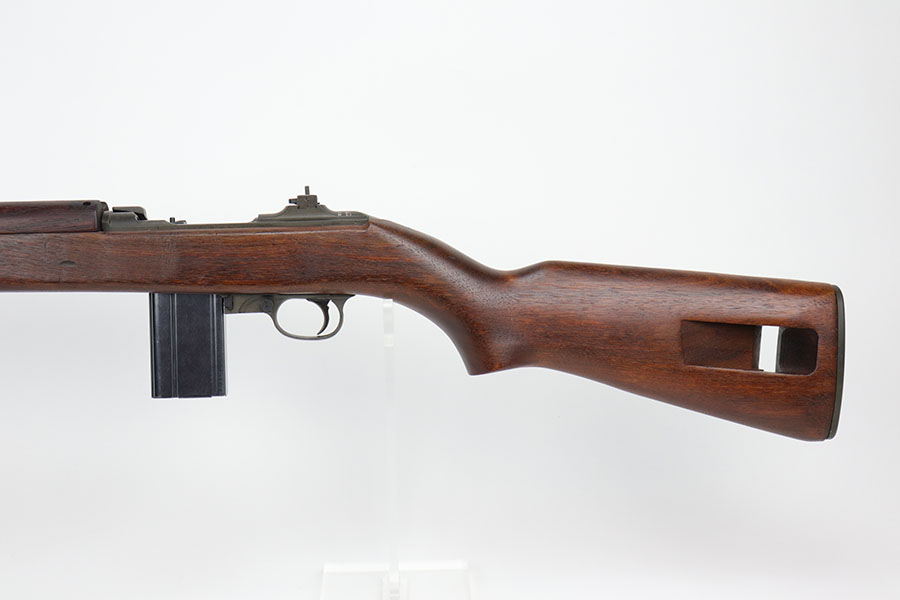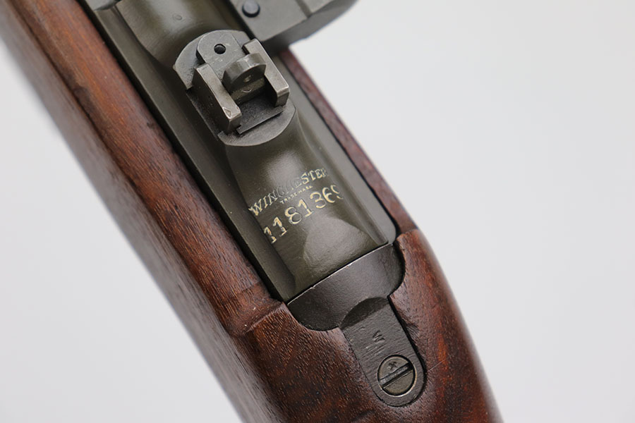 10/1/20 – This is an excellent Winchester M1 Carbine from 1943. A full parts list is included in the photos for the listing. The finish on the gun is minty but it does appear that the barrel and bolt could have been re-parkerized. Receiver finish appears correct and original. Bore and stock are both minty. Stock is low wood and Winchester made. Crossed cannons cartouche on right side of stock.