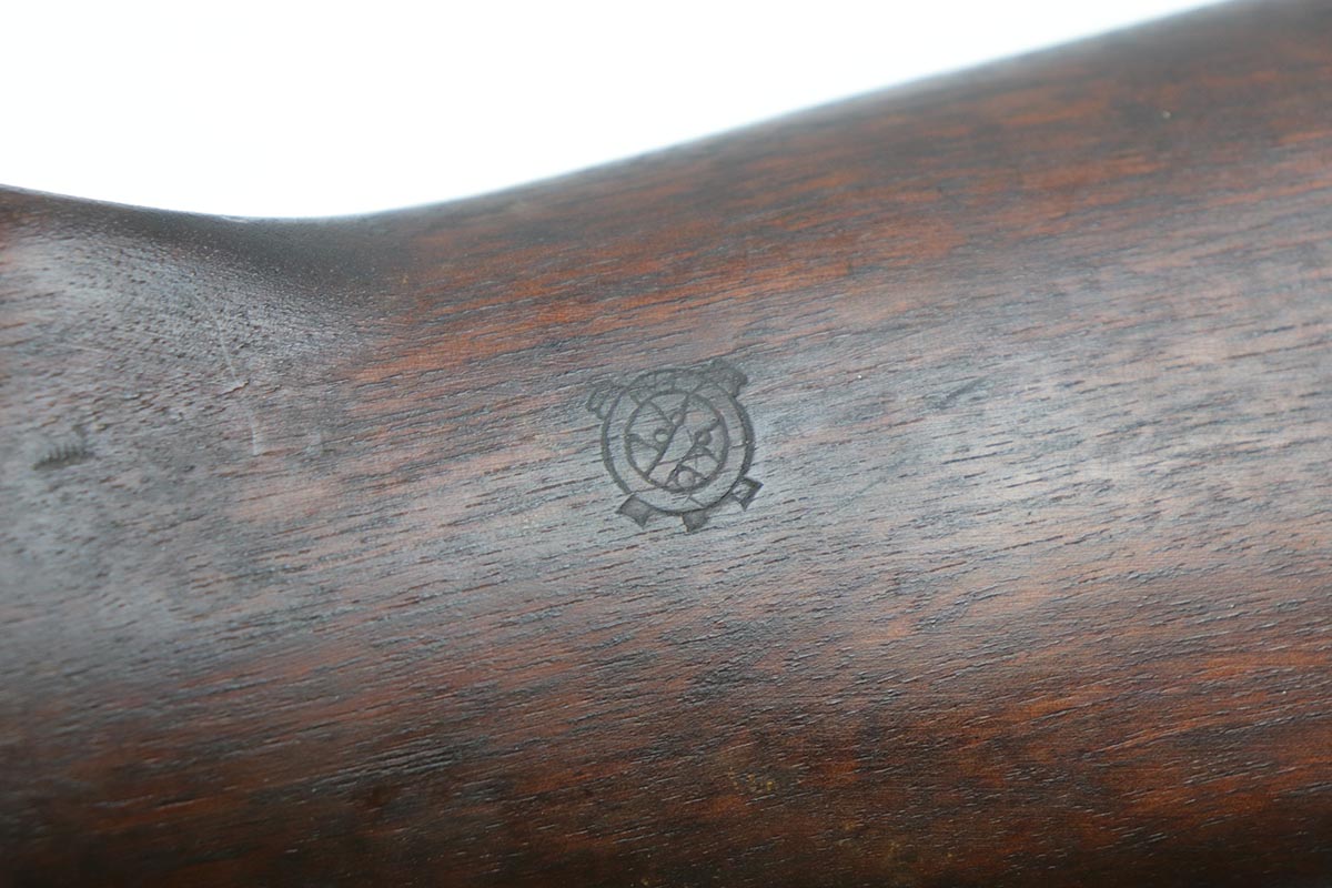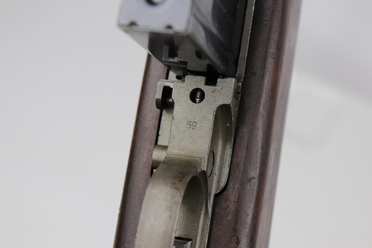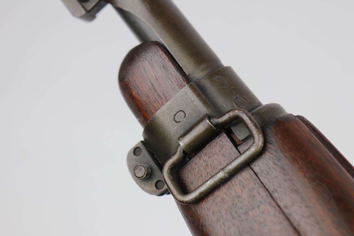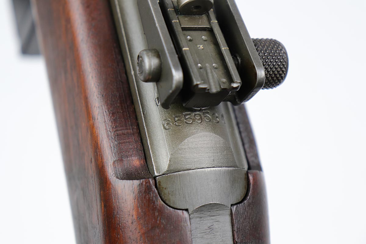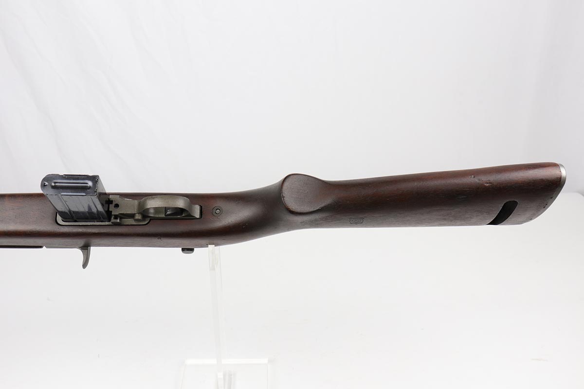 6/14/19 – This is an excellent example of a Winchester M1 Carbine, made in the latter months of 1944. Low wood stock with sharp cartouche on right side of stock. W proof on barrel and in the sling well. Handguard is also W marked inside. Excellent parkerized finish on metal parts with correctly blued bolt. Stock is in great shape with only minor nicks and dings. Has adjustable rear sight and bayo lug – may have been made at the end of World War II and then never issued until the Korean War. Excellent bore. S-O marked magazine.