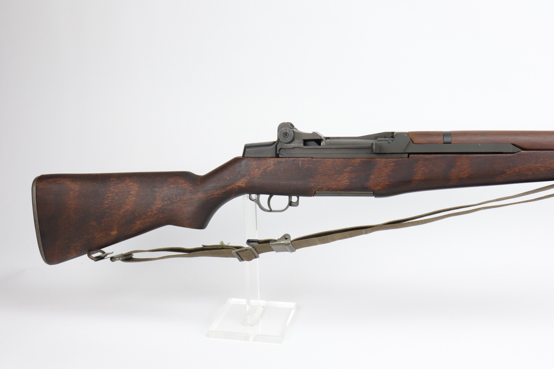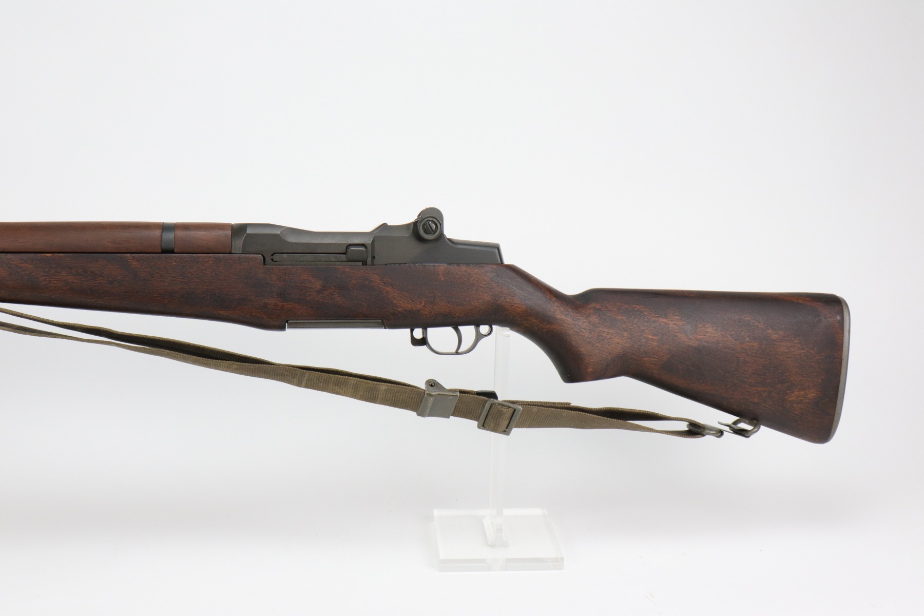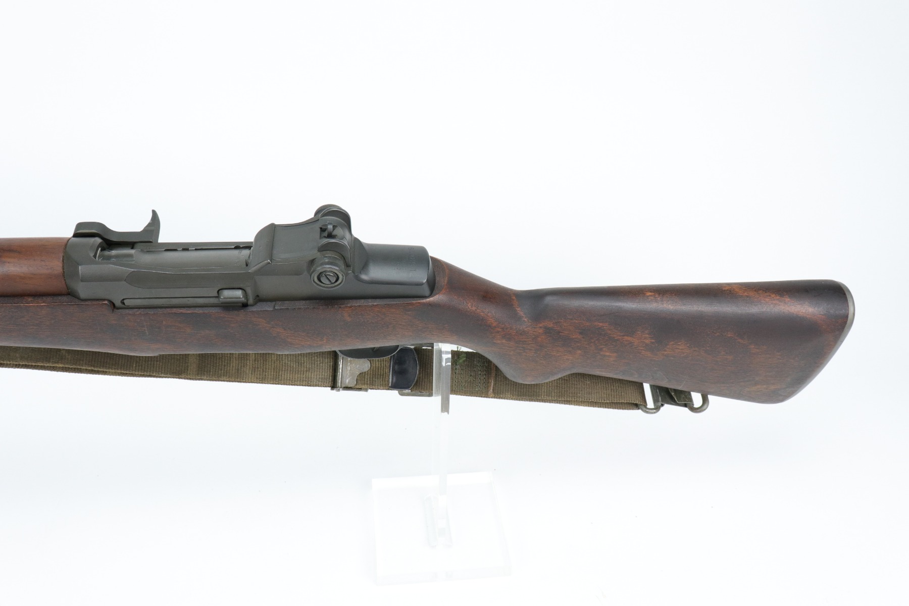 2/15/21 – This is a minty example of a Winchester M1 Garand. The receiver dates to 1942. The barrel, however was replaced in 1965. The gun was reworked, and is in minty condition. The metal parts have retained almost all of their finish except for some very light handling marks on the barrel. The stock is also minty except for very light handling marks. It comes with a canvas sling. The bore is very nice with strong rifling. Fully functional and the action is smooth.