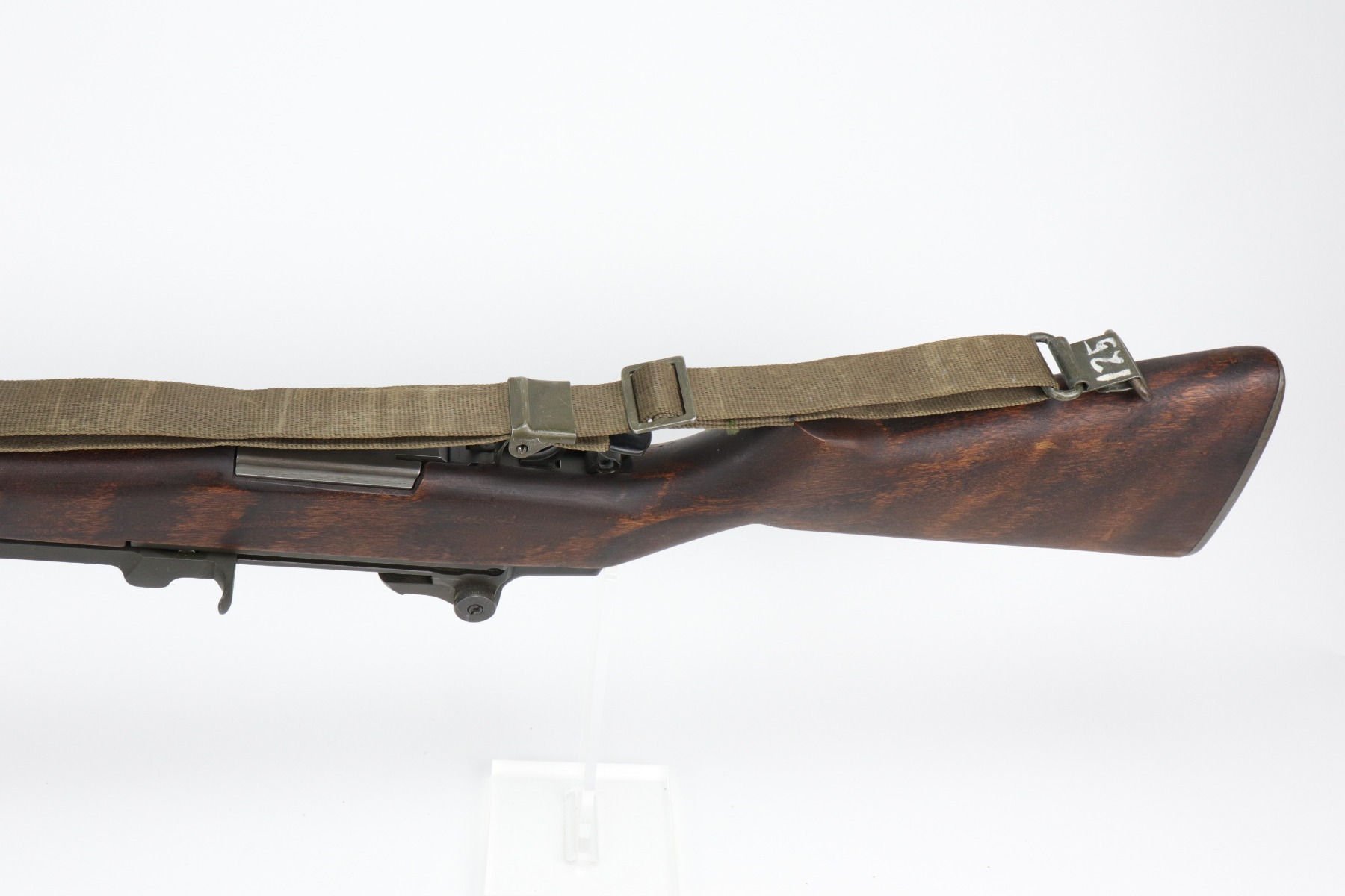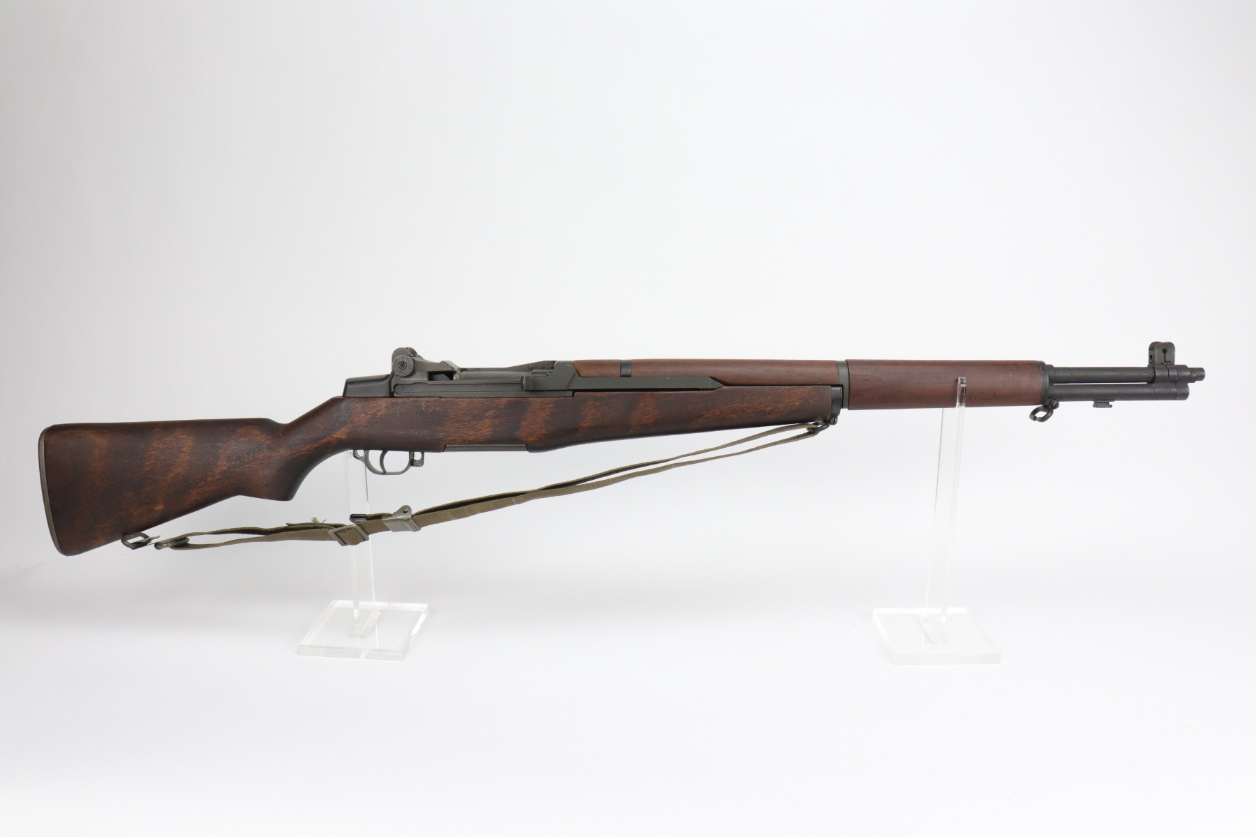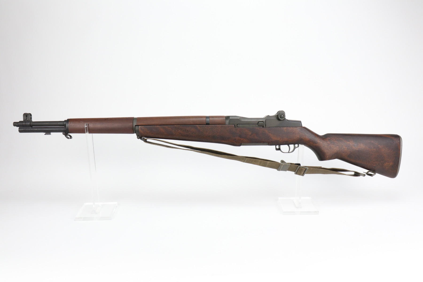 2/15/21 – This is a minty example of a Winchester M1 Garand. The receiver dates to 1942. The barrel, however was replaced in 1965. The gun was reworked, and is in minty condition. The metal parts have retained almost all of their finish except for some very light handling marks on the barrel. The stock is also minty except for very light handling marks. It comes with a canvas sling. The bore is very nice with strong rifling. Fully functional and the action is smooth.