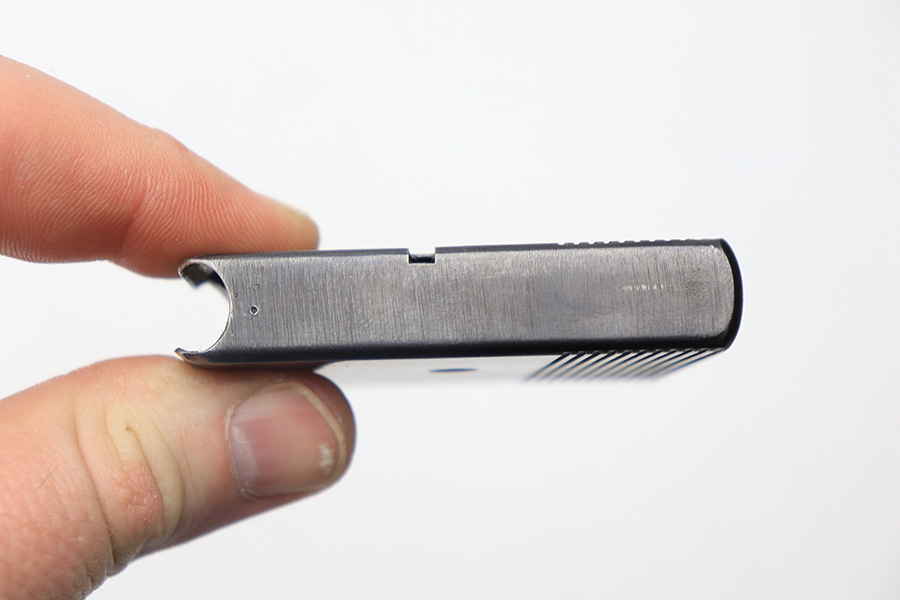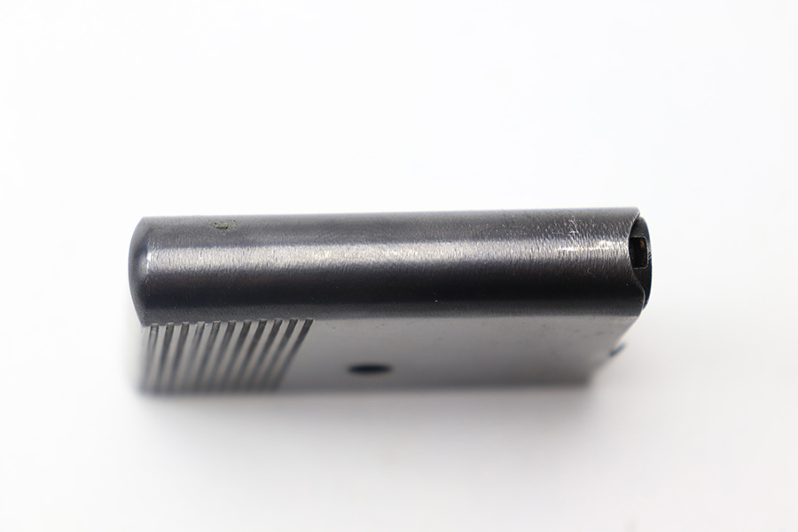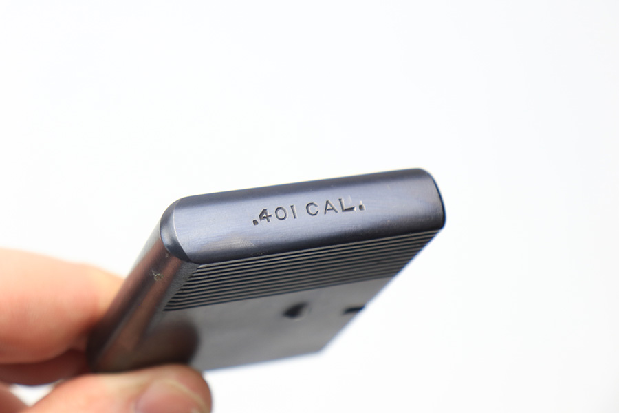 3/30/22 – This is an excellent example of a Winchester Model 1910 .401 caliber Magazine. It has retained a majority of its original finish, showing only minor signs of wear along the top edges. The magazine bottom is marked “.401 CAL”. The spring and follower are strong and functional.