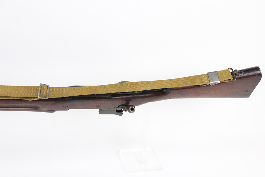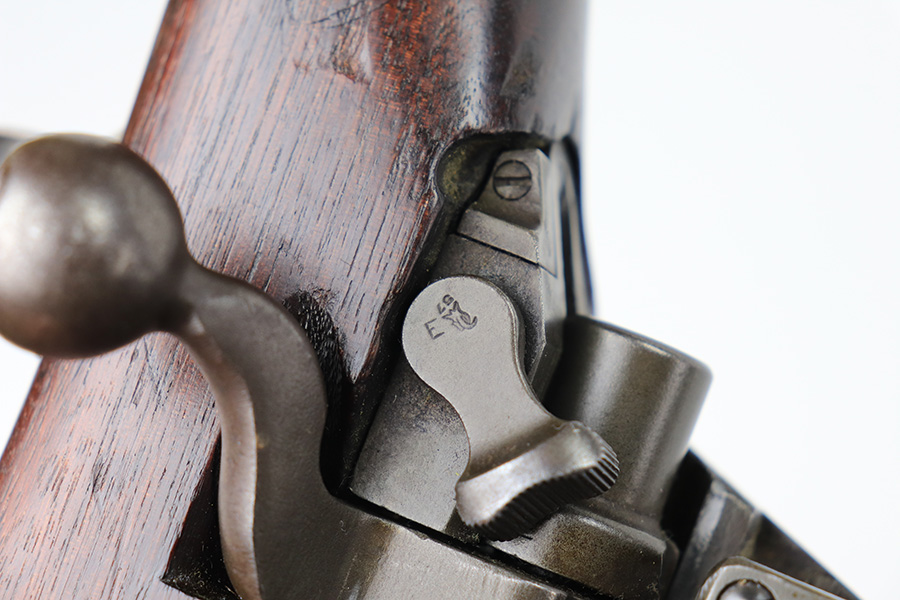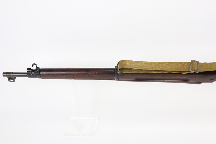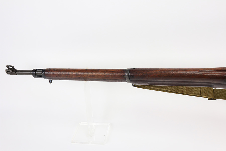 1/12/22 – This is a nice Winchester M1917 rifle from 1918. Winchester is the most desirable and valued maker of these rifles, and this one is in good condition overall. It was re-worked at some point as many parts are marked with an ‘E’, indicating they were made at Eddystone. This includes the barrel, which is dated to June of 1918. Excellent parkerized finish on the metal parts throughout. Nice, original stock with handling wear and dings throughout but no major cracks. The nose is marked with an ‘R’, indicating it was made by Remington. The bore has strong, pronounced rifling but is very dirty and in need of a thorough cleaning. Bore rating may be more like a 7 or 8 out of 10, depending on how the cleaning goes.