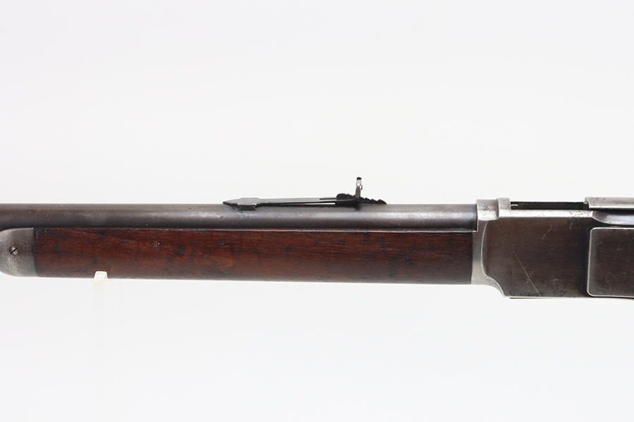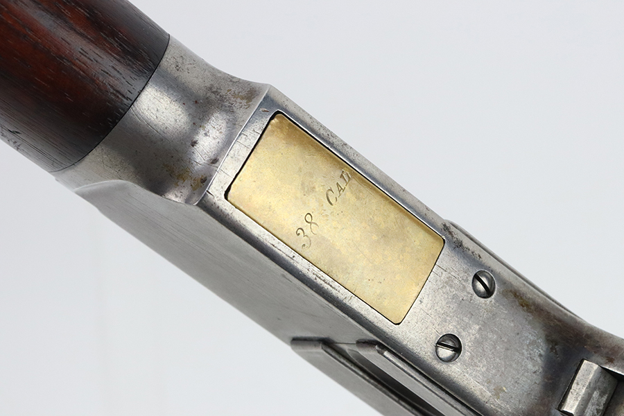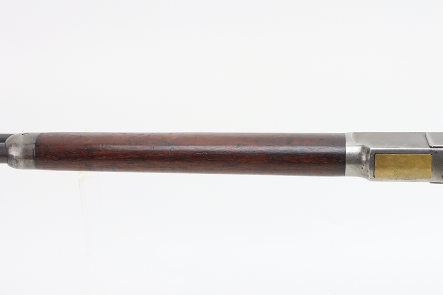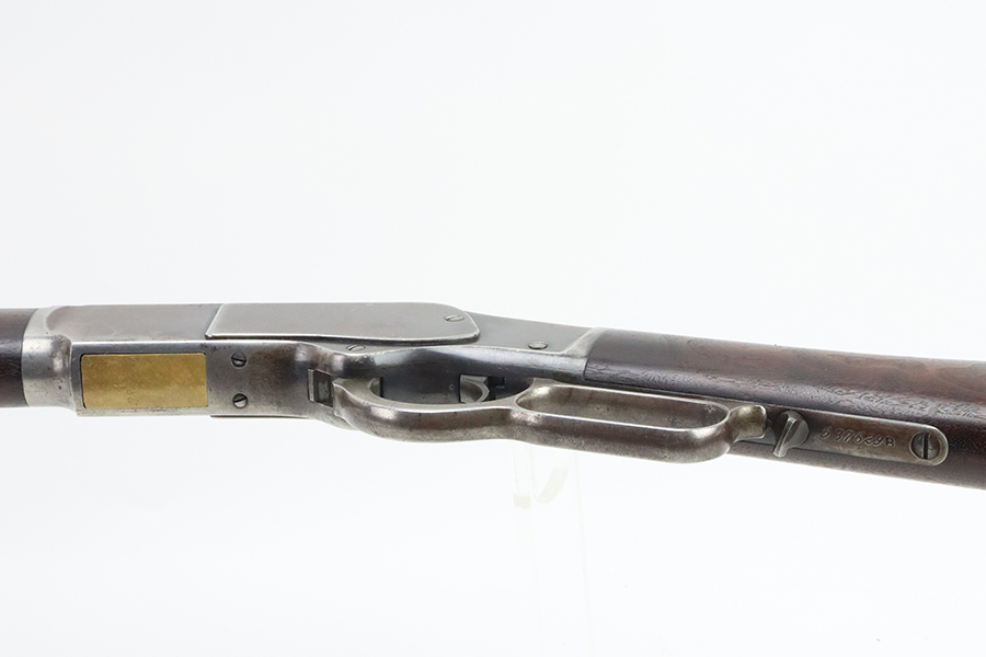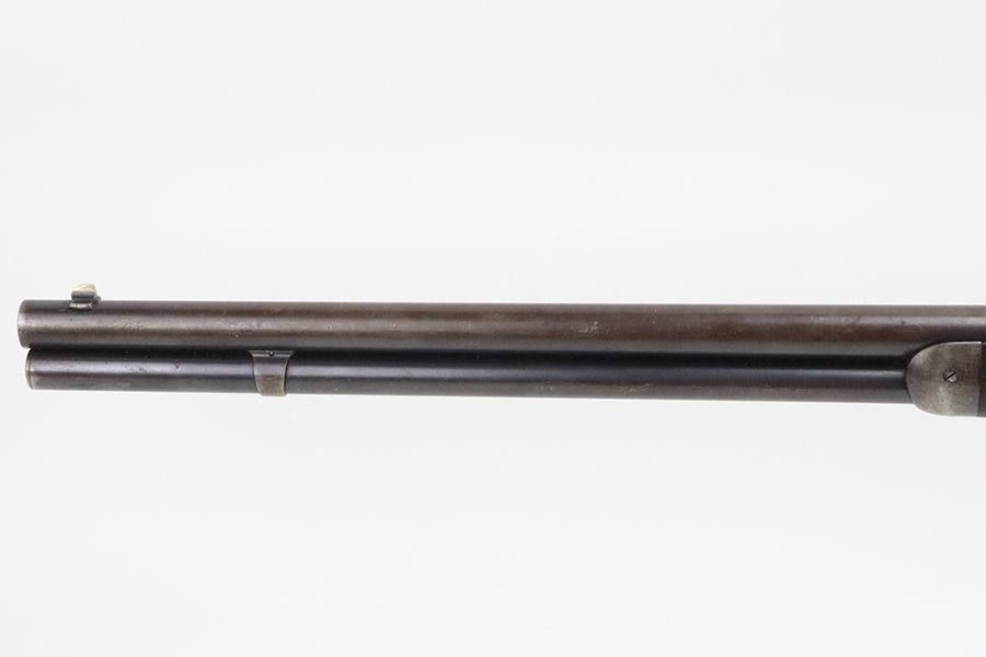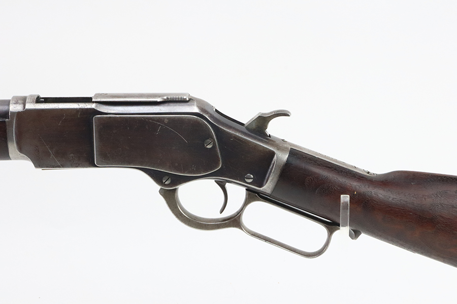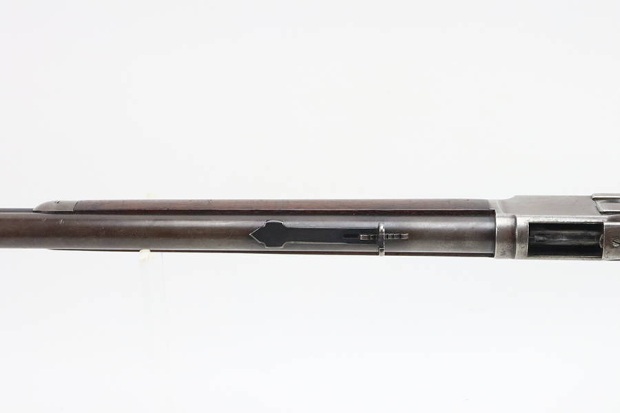 4/8/24 – This is a nice example of a Winchester Model 1873 Lever Action Rifle, manufactured in 1899 and chambered in .38 WCF. Round barrel. The finish on the metal parts rates roughly 65% with general thinning, high edge wear, and “attic patina” throughout. The wood furniture is pretty nice with only mild signs of wear and use. The bore has pretty good rifling, but there is tiny pitting throughout. Fully functional. Smooth action.