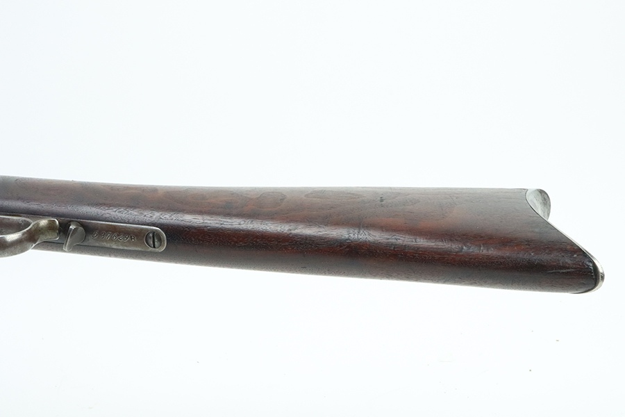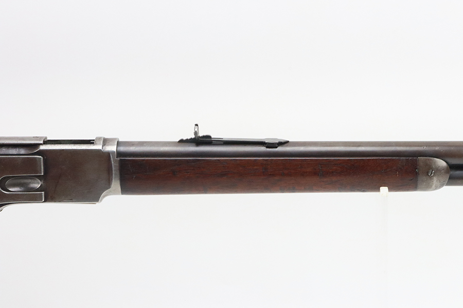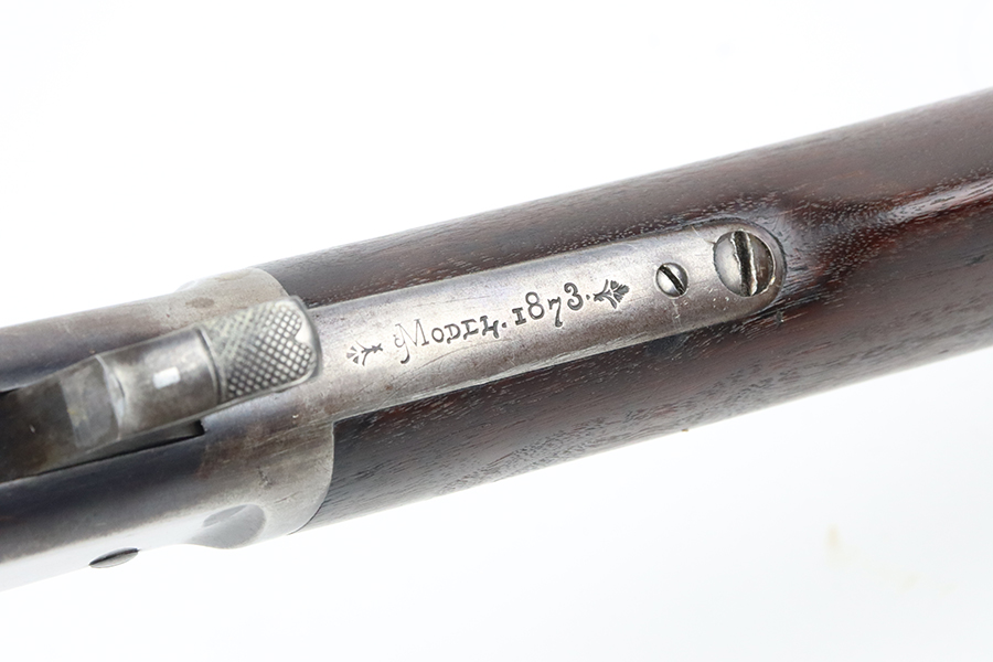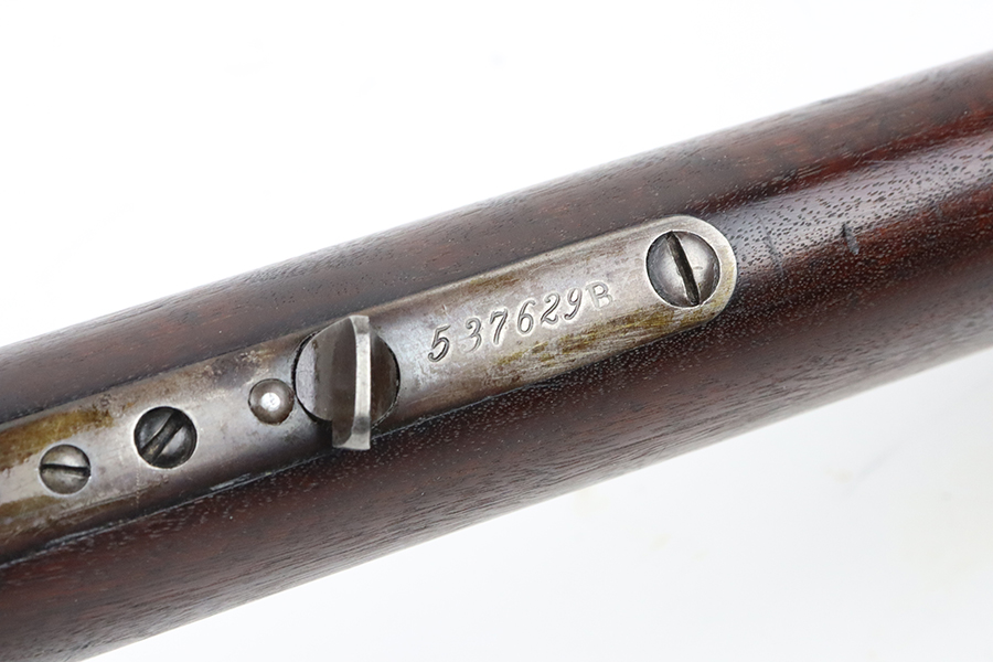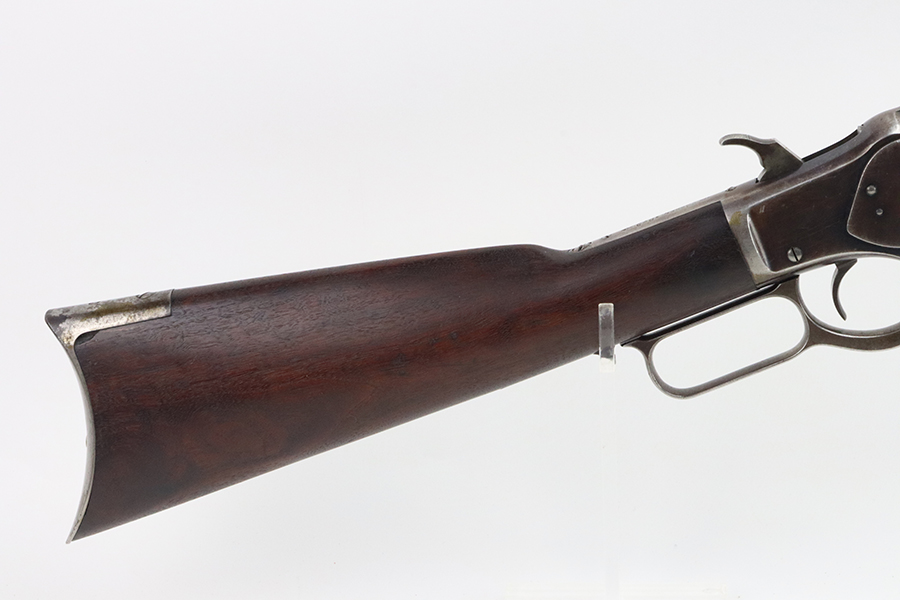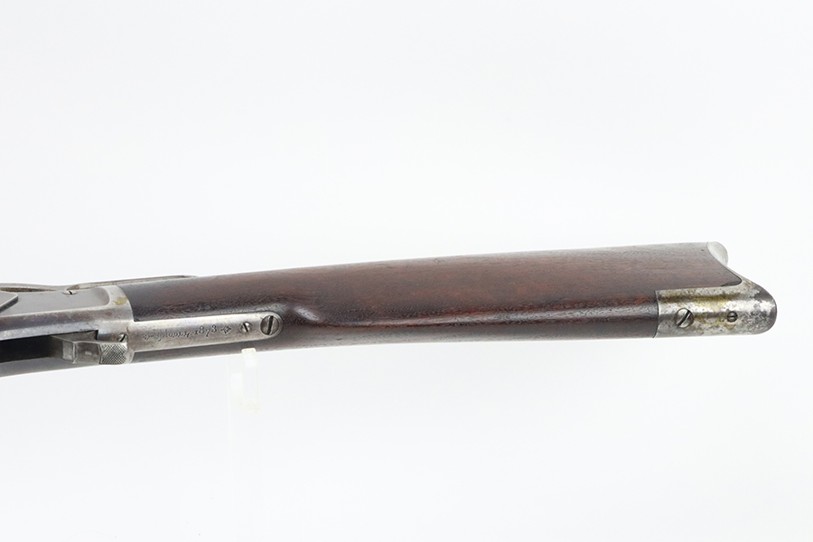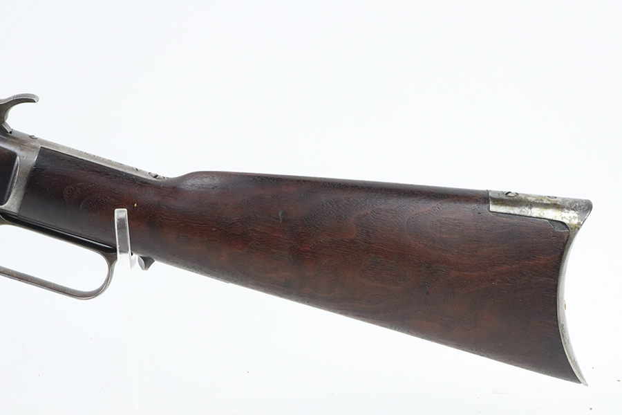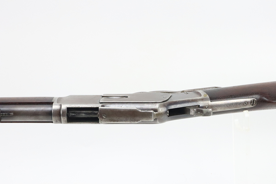 4/8/24 – This is a nice example of a Winchester Model 1873 Lever Action Rifle, manufactured in 1899 and chambered in .38 WCF. Round barrel. The finish on the metal parts rates roughly 65% with general thinning, high edge wear, and “attic patina” throughout. The wood furniture is pretty nice with only mild signs of wear and use. The bore has pretty good rifling, but there is tiny pitting throughout. Fully functional. Smooth action.