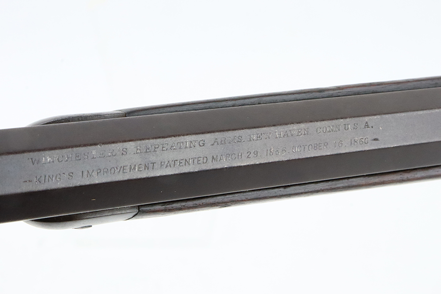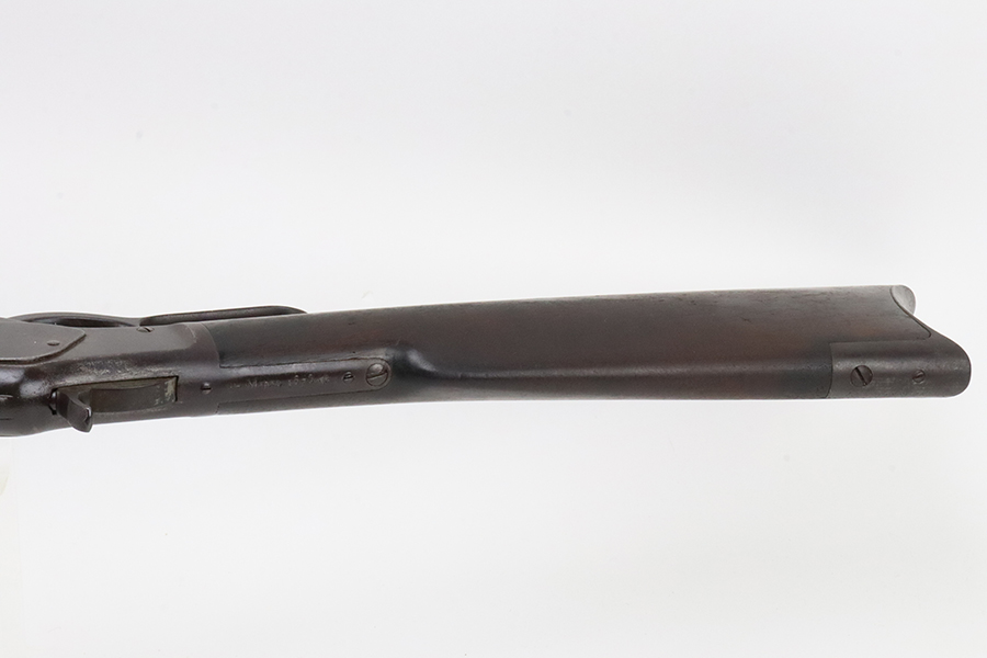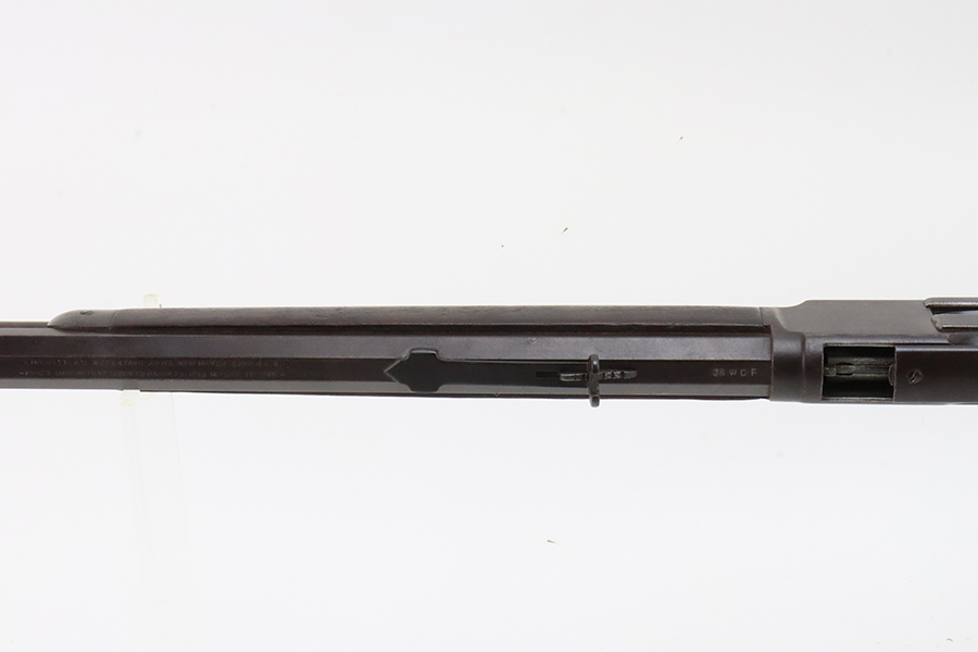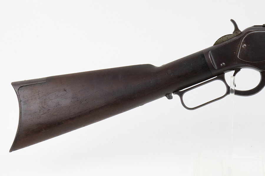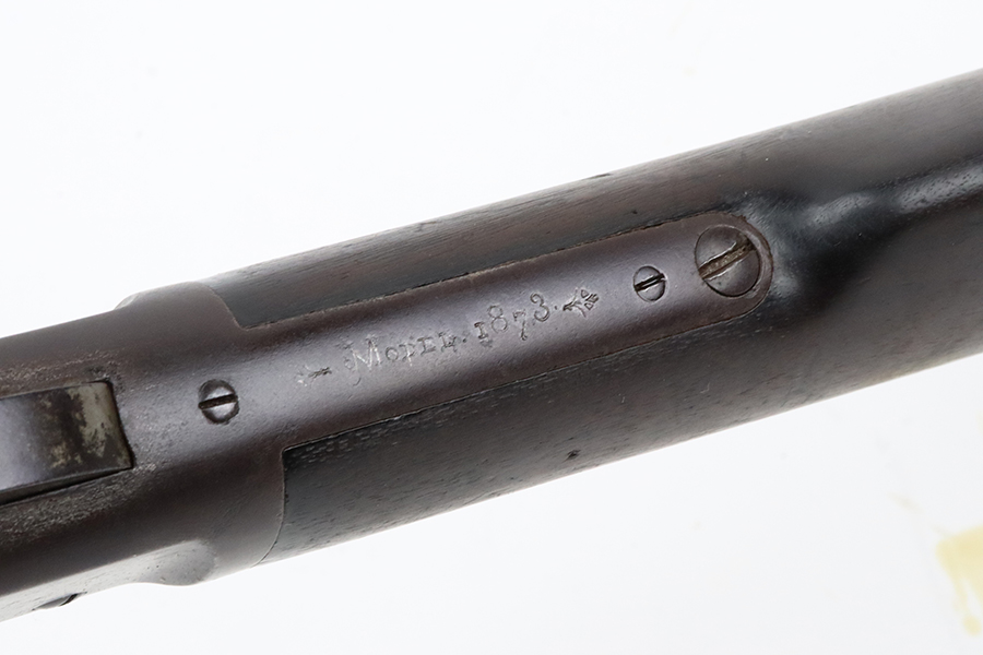 3/20/24 – This is a nice example of a Winchester Model 1873 Lever Action Rifle, often referred to as “The Gun That Won The West”. This one is all matching, chambered in .38 WCF, and was manufactured in 1897. Overall, the gun is in nice condition for its age. Not much actual finish loss, but there is heavy brown patina covering all of the metal parts and some small areas of pitting here and there. Very nice wood stock. The bore has decent rifling, but there is minor pitting throughout.