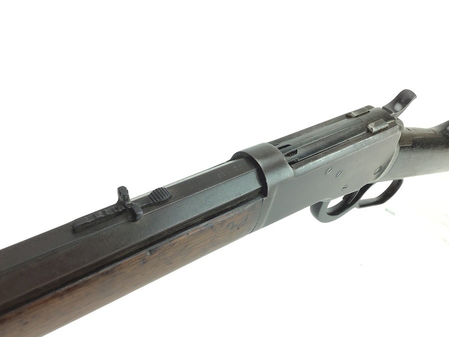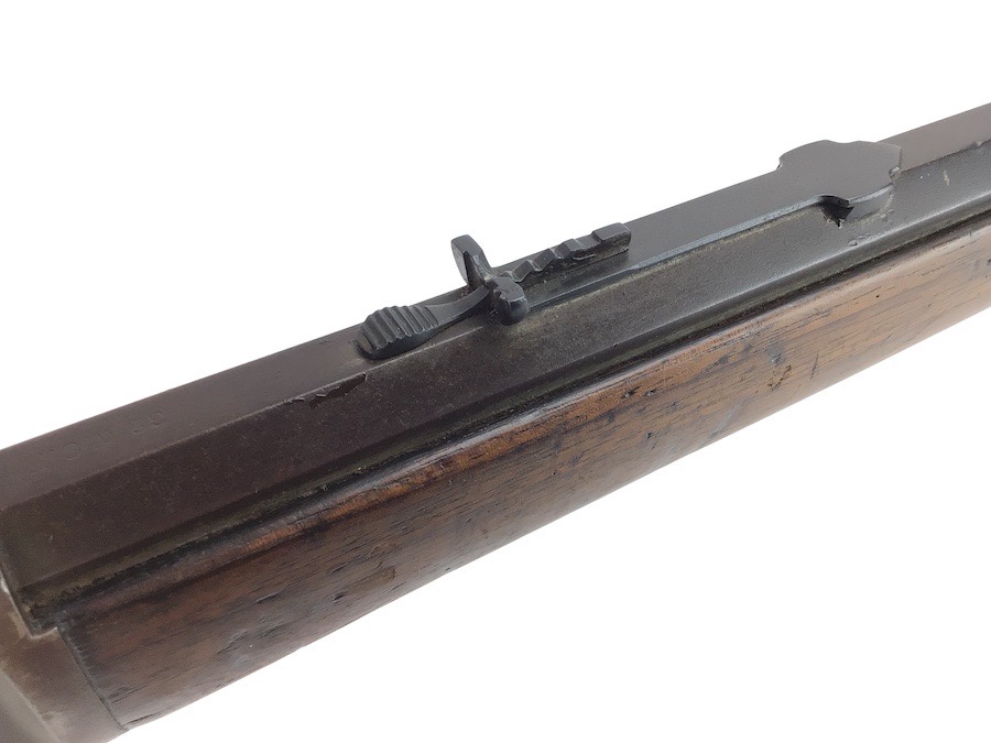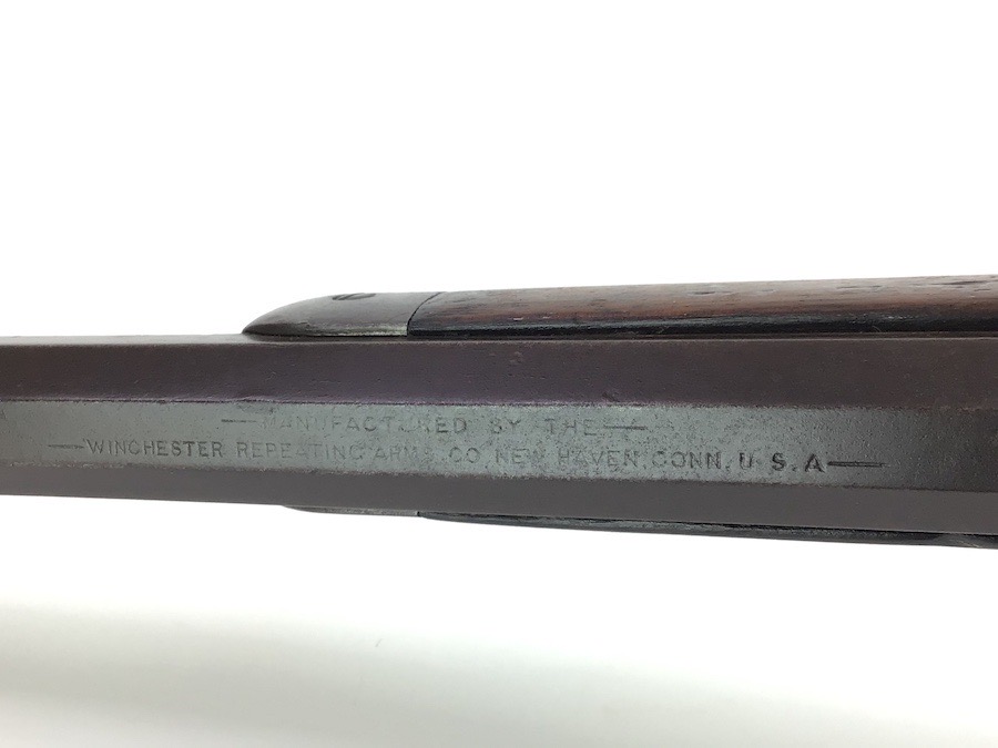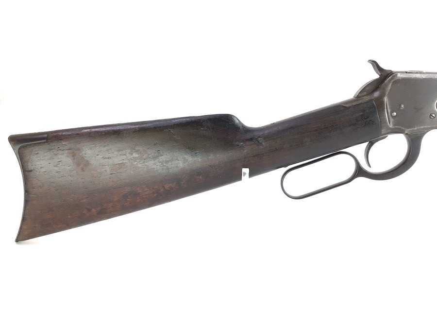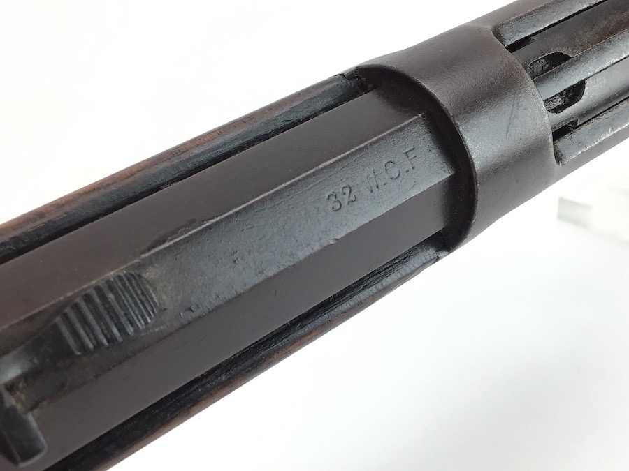 8/3/24 – This is a nice example of a Winchester Model 1892 lever action rifle, manufactured in the 1890’s and chambered in .32 WCF. Its original finish rates roughly 75%. Most of the finish loss is on the receiver, but there is brown patina and spotty oxidation throughout. Very nice wood furniture for its age. The bore has good rifling, but there is minor pitting and spotty oxidation. Fully functional. No FFL required. Located in our Ohio office.