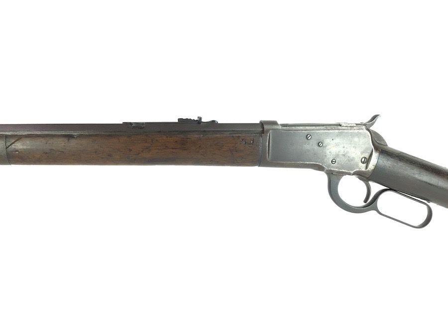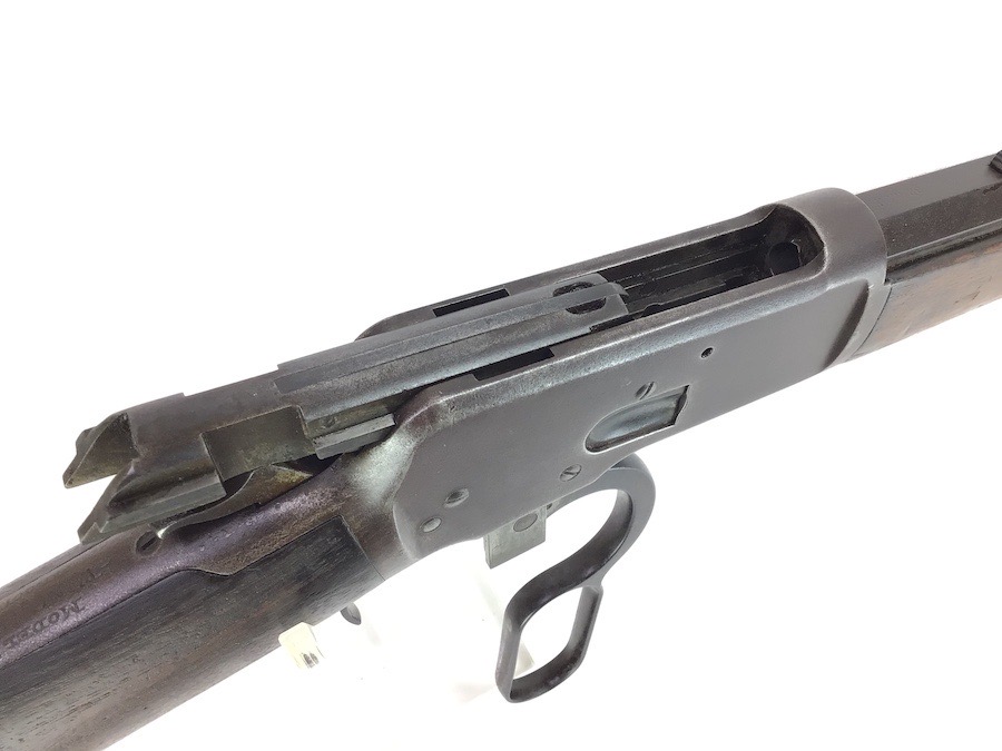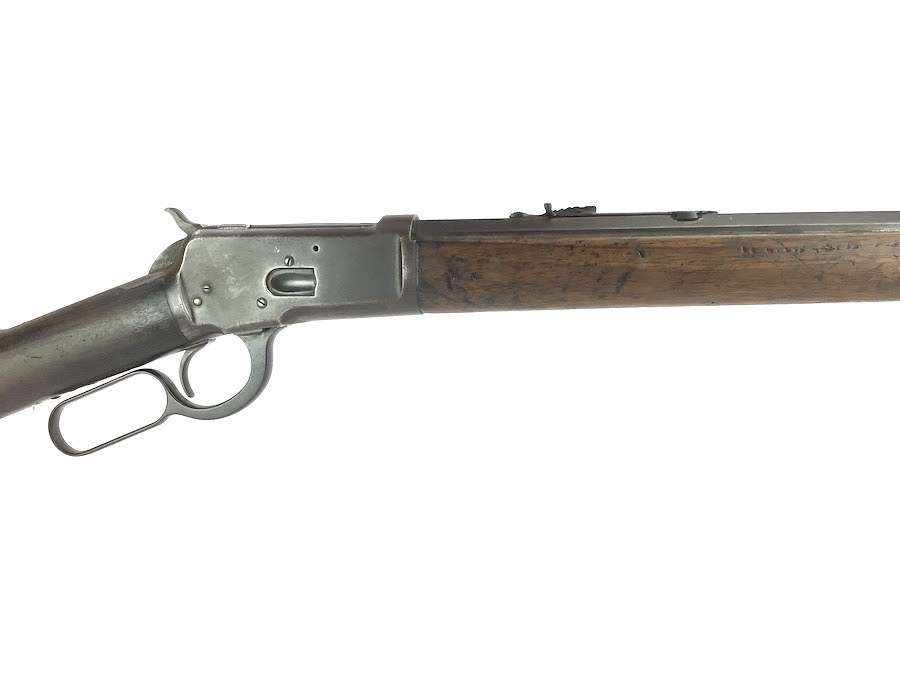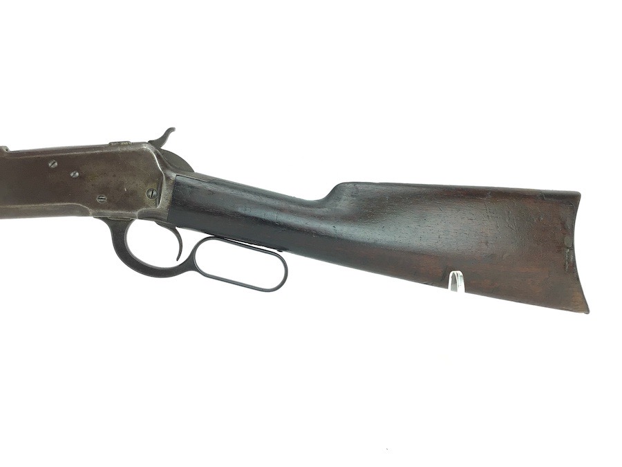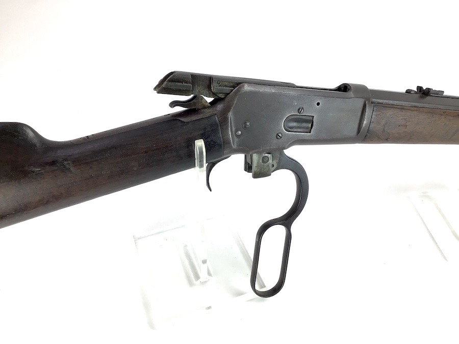 8/3/24 – This is a nice example of a Winchester Model 1892 lever action rifle, manufactured in the 1890’s and chambered in .32 WCF. Its original finish rates roughly 75%. Most of the finish loss is on the receiver, but there is brown patina and spotty oxidation throughout. Very nice wood furniture for its age. The bore has good rifling, but there is minor pitting and spotty oxidation. Fully functional. No FFL required. Located in our Ohio office.