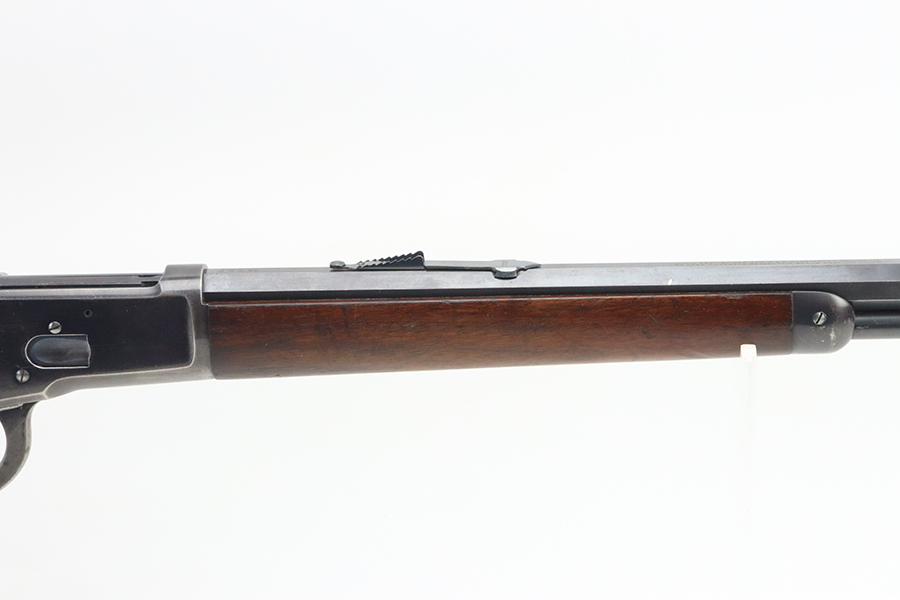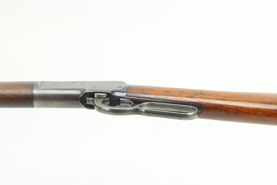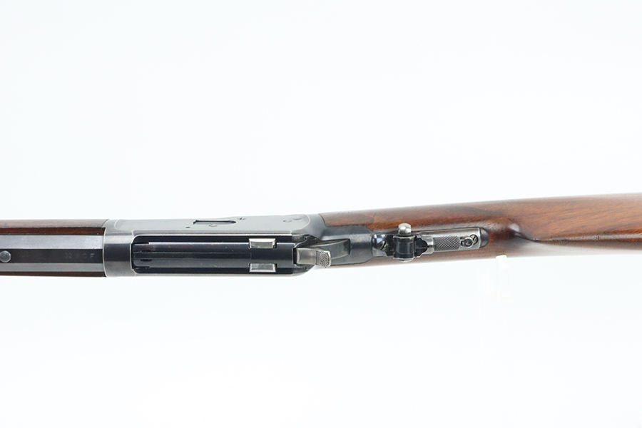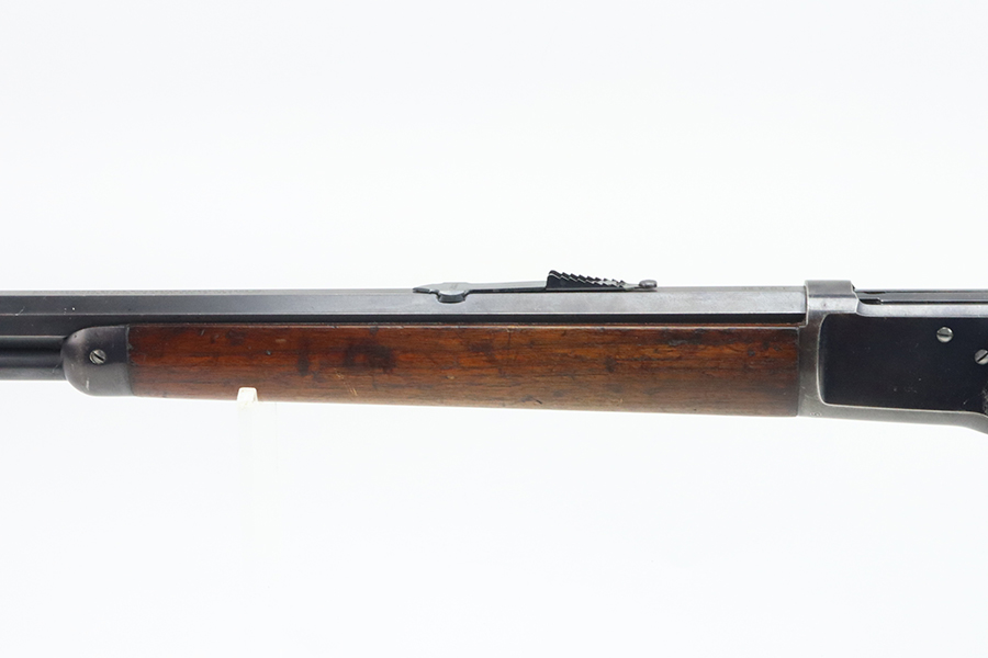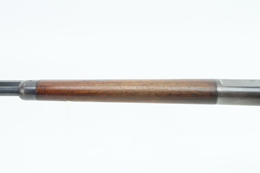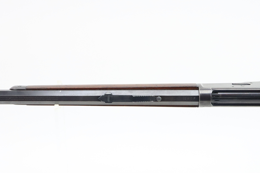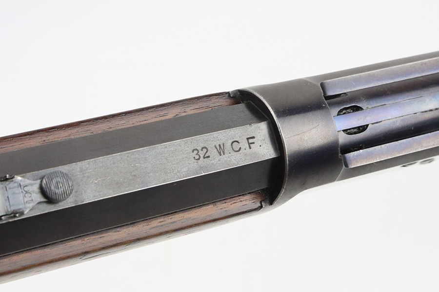 4/4/24 – This is a very nice example of a Winchester Model 1892 lever action rifle, manufactured in 1903 and chambered in .32 WCF. Equipped with a peep-style adjustable rear sight. The metal parts have retained somewhere between 85-90% of their original high polish finish. There is general high edge wear, but most of the finish loss is on the underside of the receiver. Some light scratches and handling marks on the receiver as well. Very nice wood furniture overall, but there are light scratches and bruises throughout. Excellent bore with great rifling.