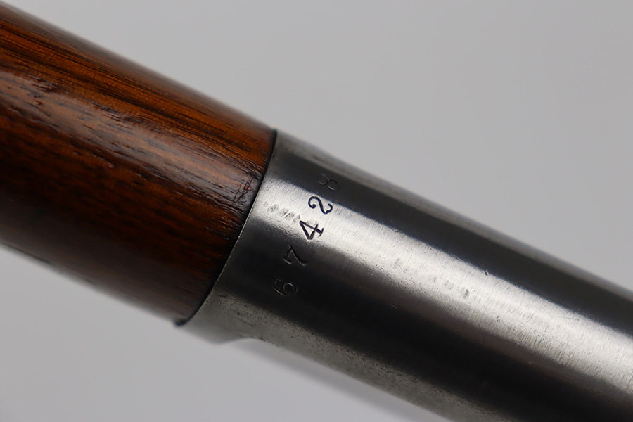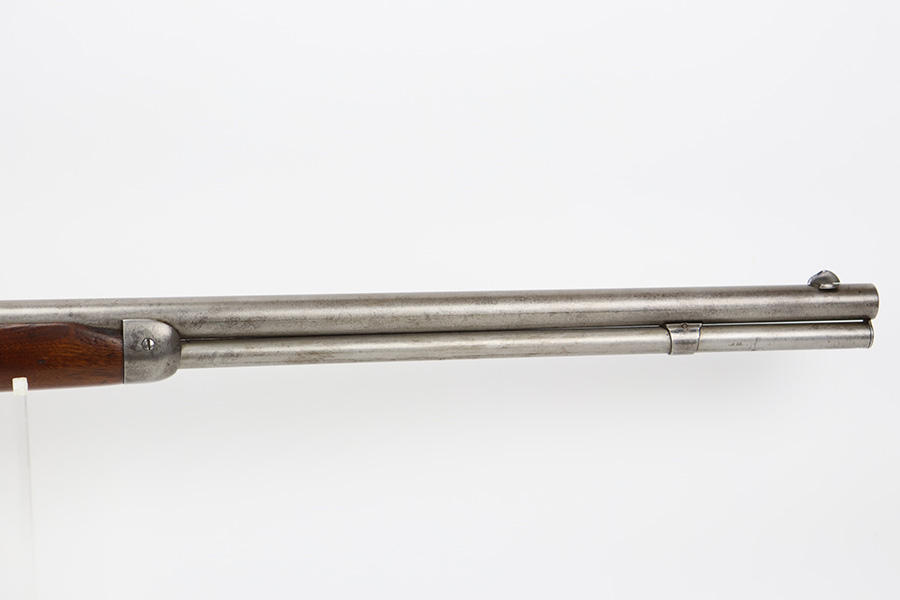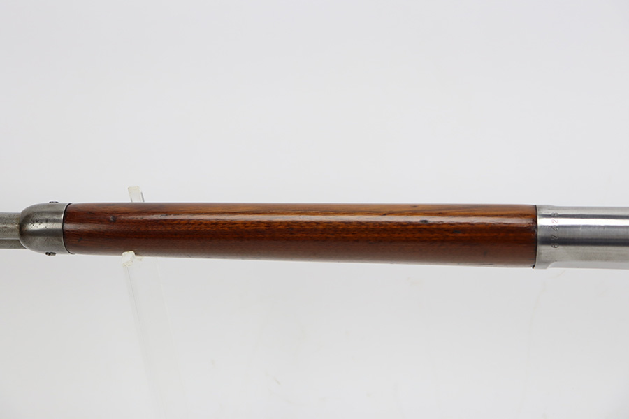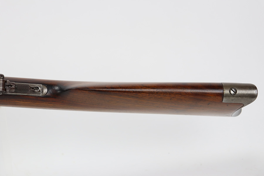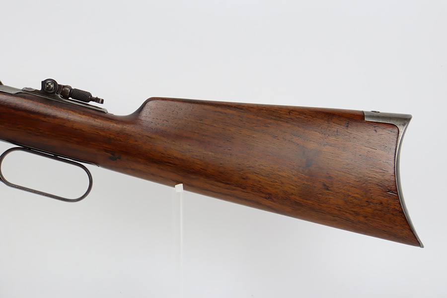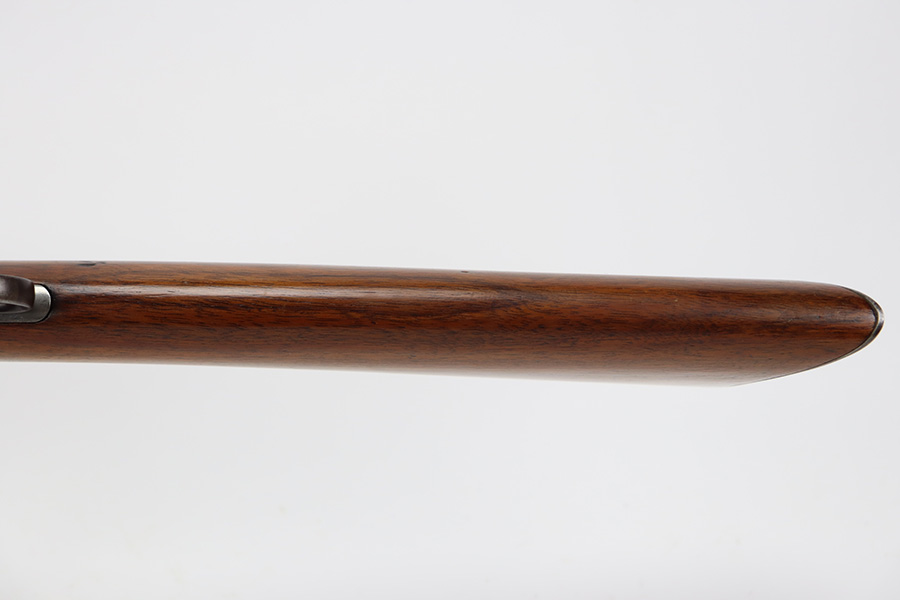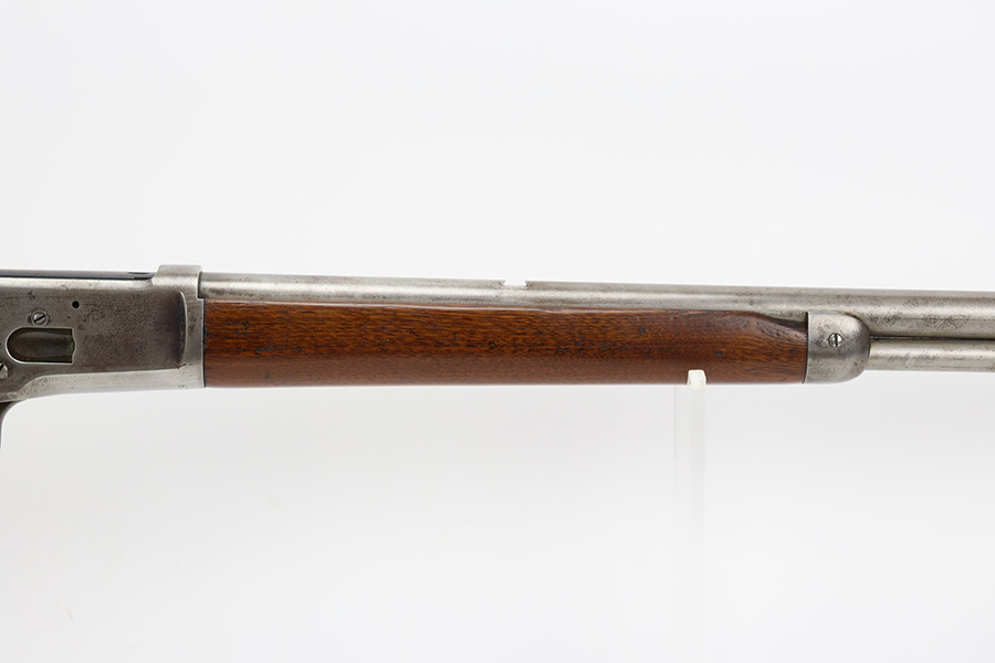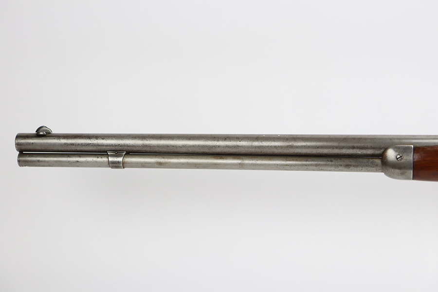 9/29/23 – This is a Winchester Model 1892 lever action rifle, manufactured in 1894 and chambered in .25-20 WCF. It is matching and has a peep-style rear sight. The bluing is virtually all gone with obvious finish loss and spotty brown patina throughout. Some areas of tiny pitting here and there, most noticeable on the receiver. Excellent wood furniture. The bore has good rifling with minor pin-pricking throughout.