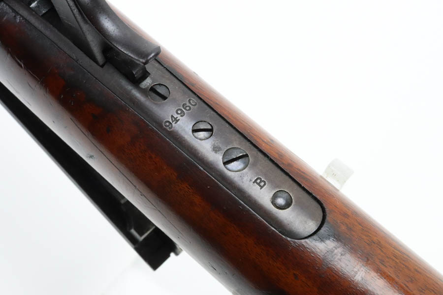 06/12/2024 – For sale is a Winchester Model 1895 Rifle chambered in .30-40 Krag / .30 Army and was made in 1915. The Winchester 1895 was the last of the lever actions designed by John M. Browning utilizing a box magazine and chambered in safari hunting calibers. The 1895’s would also be produced for the Imperial Russian Army and a small batch for the US Army in the Phillipines. This rifle is a commercial model in the “rifle” configuration with a full length barrel but a half length forestock. This rifle is in an overall 90% condition with the bluing on the receiver turning brown with age. The barrel has some tiny specs of oxidation throughout but no pitting or damage. The stock and forestock are also in good condition without any breaks or cracks. The bore is bright towards the beginning but the last 5 inches or so of the muzzle becomes dark.