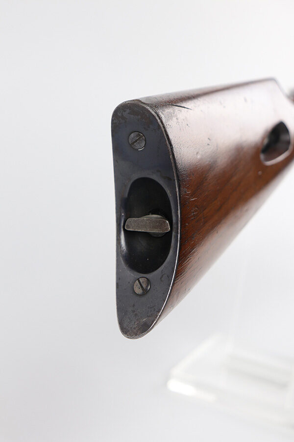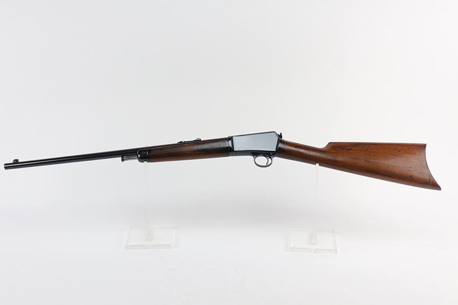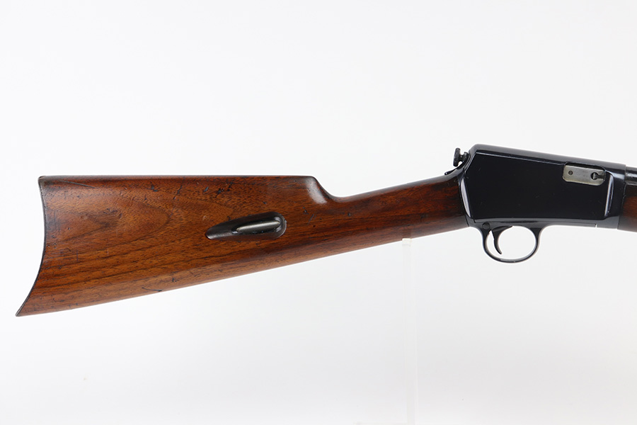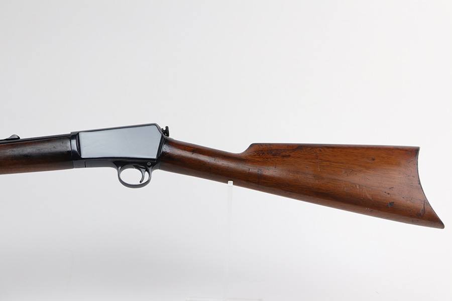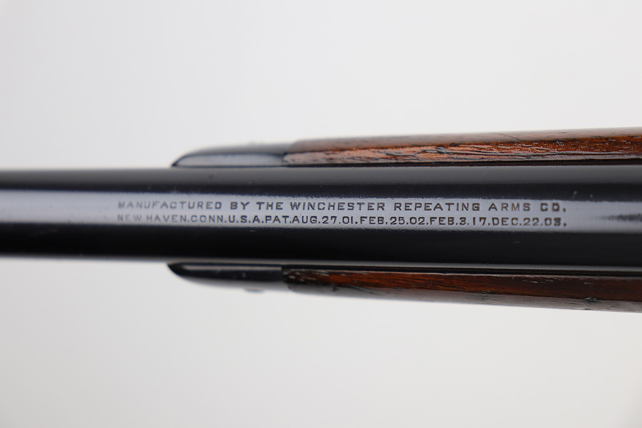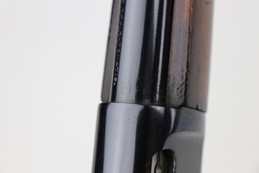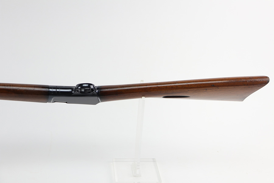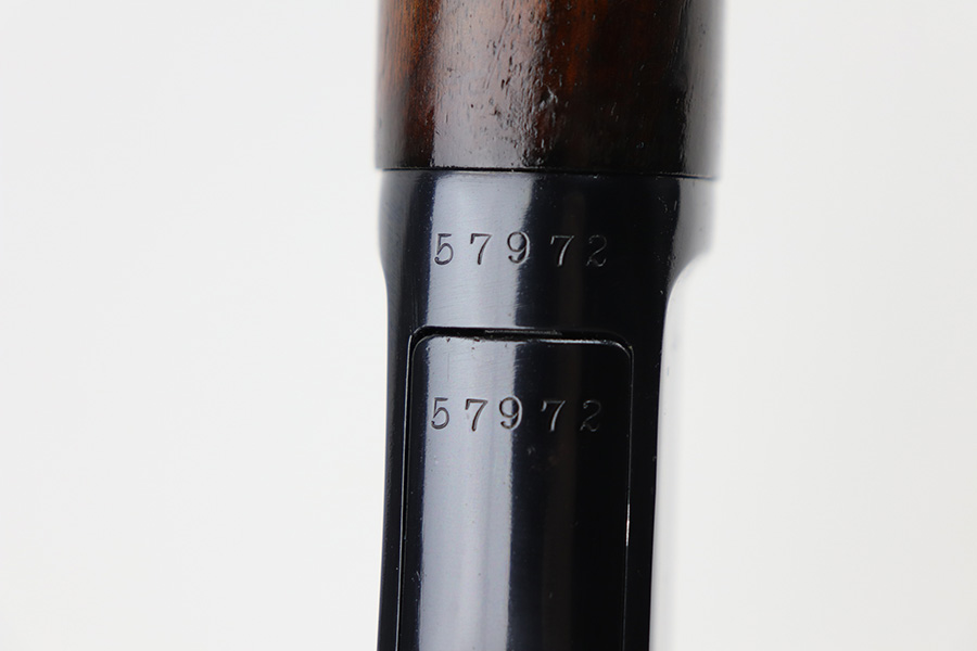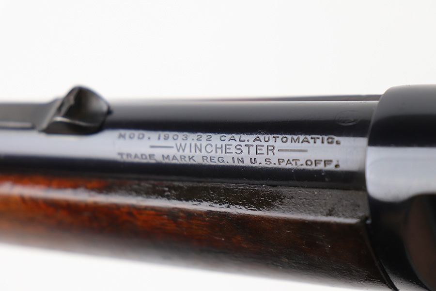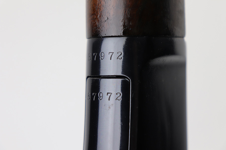 9/28/21 – This is an excellent example of a Winchester Model 1903, manufactured in 1911 and chambered in .22 LR. It is matching and fully functional. The finish is a little dark, so we believe it has been professionally restored. As a result, it has a beautiful appearance. It has retained virtually all of its new finish with very minor handling marks here and there. The wood stock is nice but has minor dings, dents, and scratches throughout. The bore has strong rifling, but there are areas of spotty oxidation. The front sight looks like it may have been replaced.