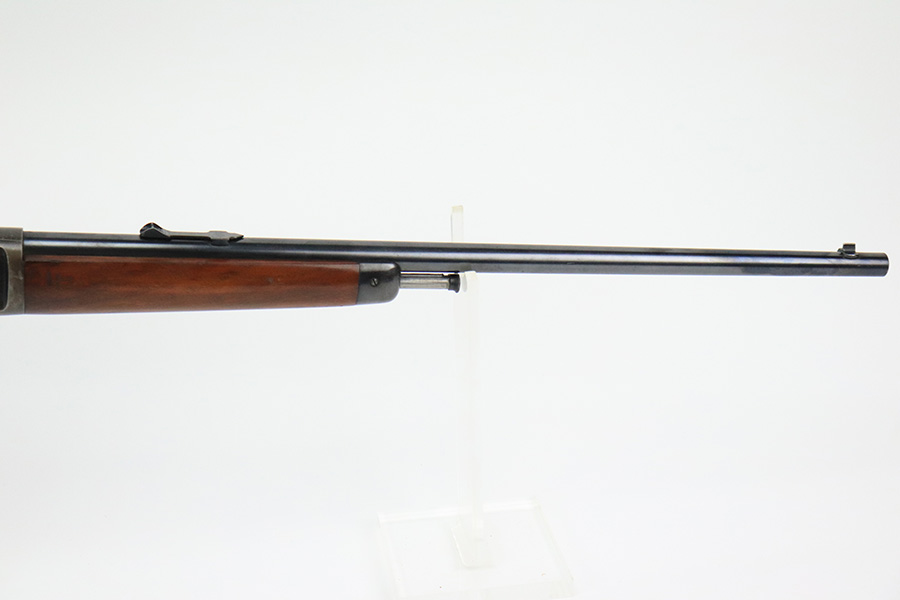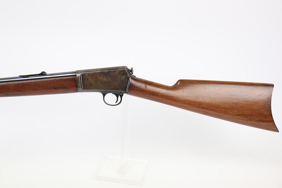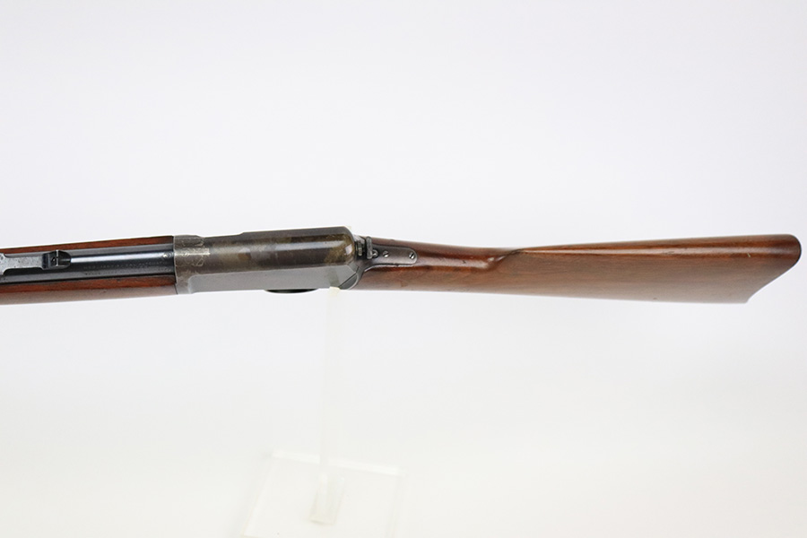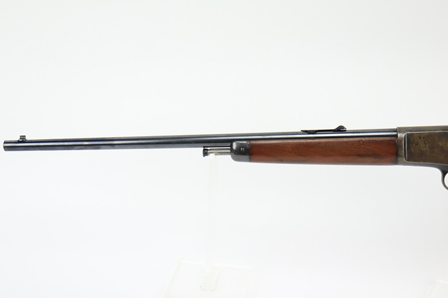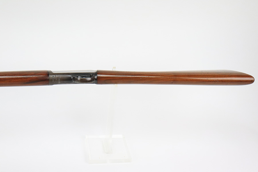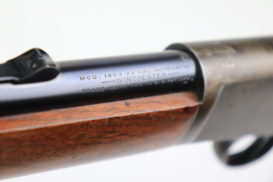 9/23/22 – This is a Winchester model 1903 rifle produced in 1911. The rifle has a reduced price because of a minor bulge in the barrel near the muzzle. This looks like a small ring of wear in the bore, and likely was due to the use of improper ammunition in the rifle. The rifle takes .22 Winchester (NOT .22 LR). The receiver is missing most of the finish, and has a natural brown patina throughout. The barrel still has most of the original bluing intact and the wood is in great shape with no cracks or chips. Smooth functionality, but we do not recommend shooting before having a gunsmith inspection.