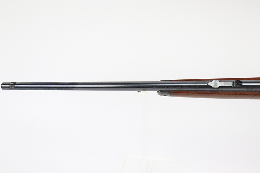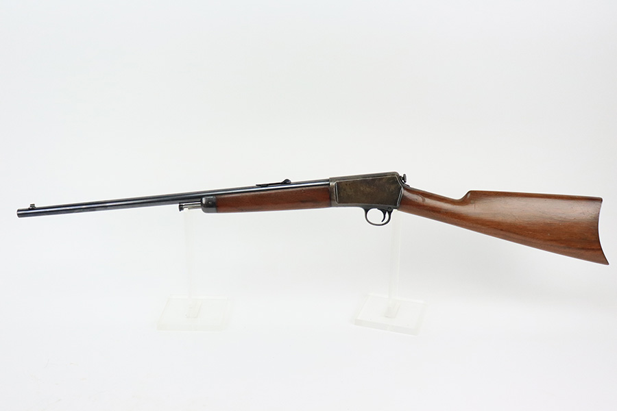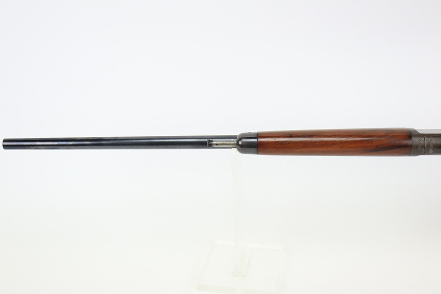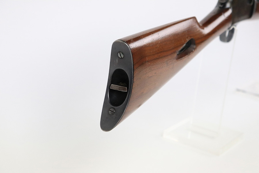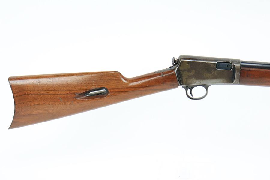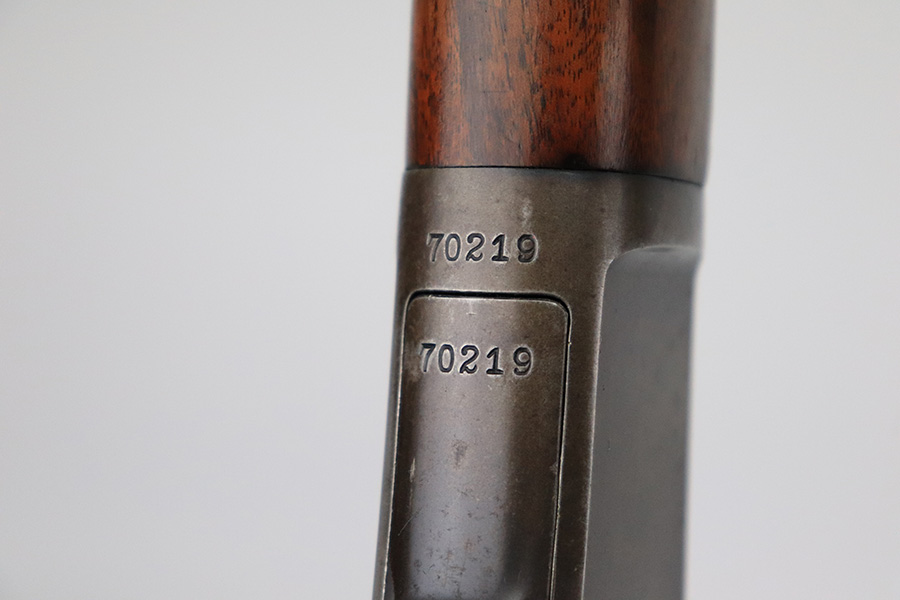 9/23/22 – This is a Winchester model 1903 rifle produced in 1911. The rifle has a reduced price because of a minor bulge in the barrel near the muzzle. This looks like a small ring of wear in the bore, and likely was due to the use of improper ammunition in the rifle. The rifle takes .22 Winchester (NOT .22 LR). The receiver is missing most of the finish, and has a natural brown patina throughout. The barrel still has most of the original bluing intact and the wood is in great shape with no cracks or chips. Smooth functionality, but we do not recommend shooting before having a gunsmith inspection.