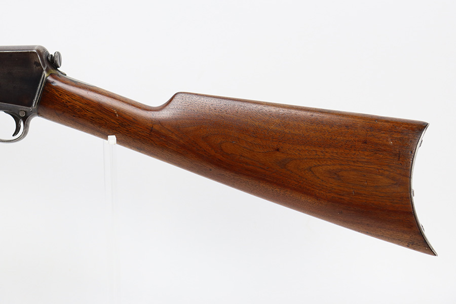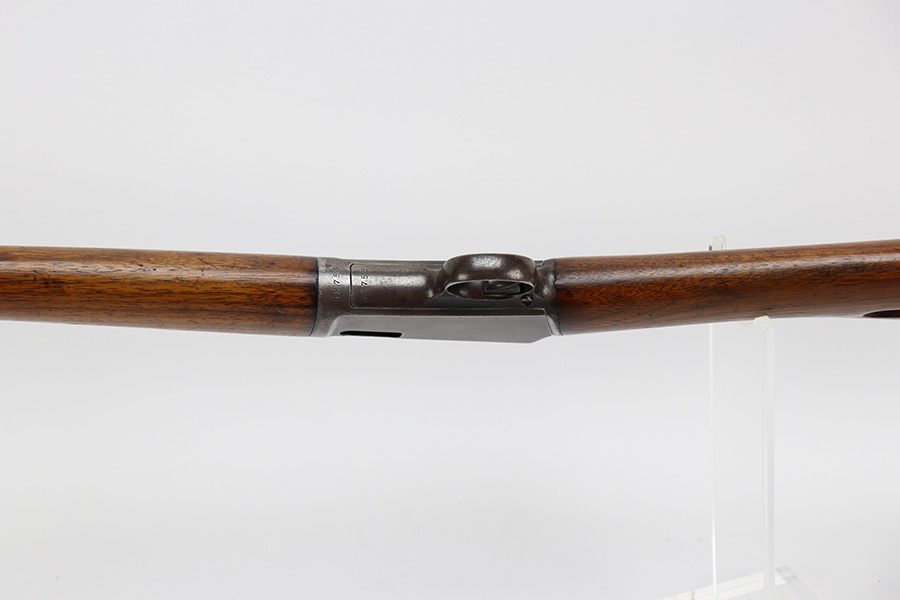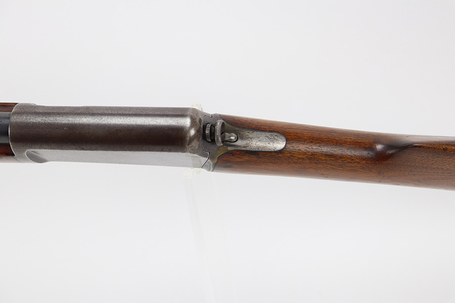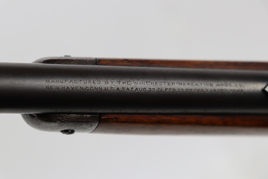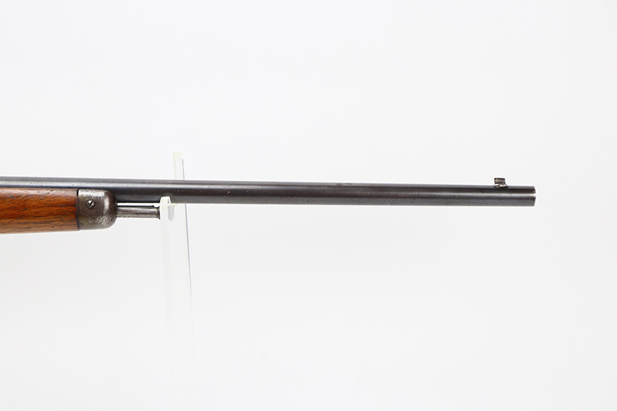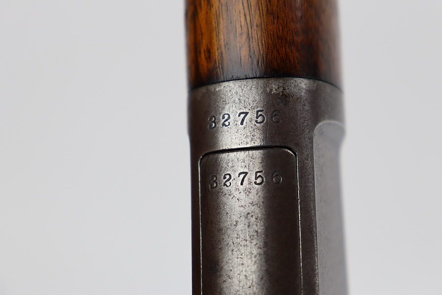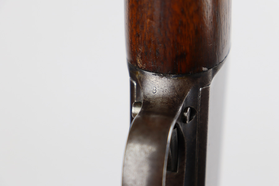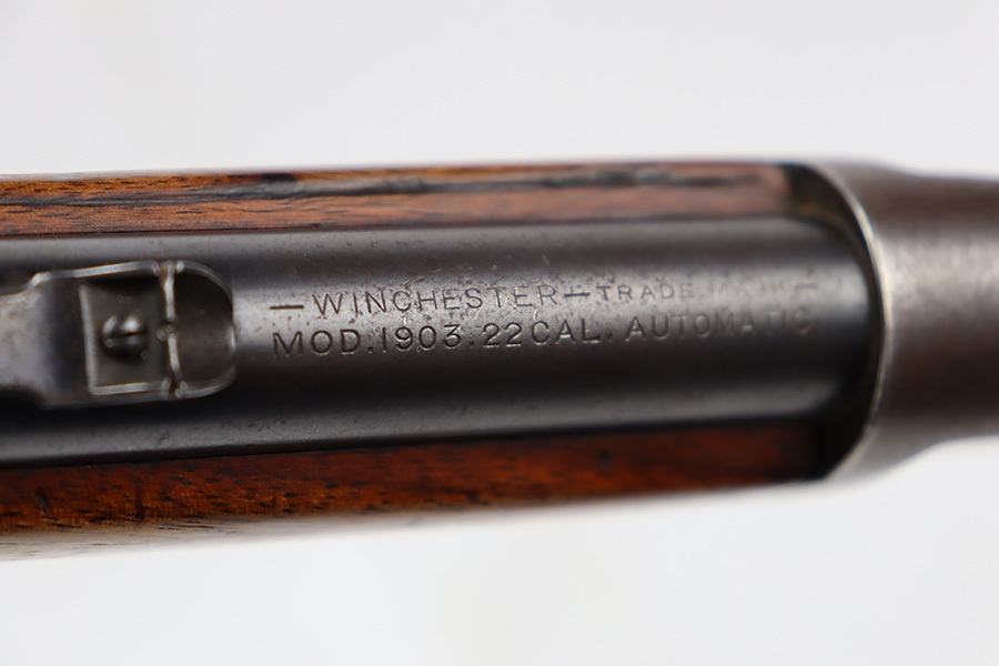 7/24/23 – This is a nice example of a Winchester Model 1903, manufactured in 1908 and chambered in .22 Caliber. All matching. The metal parts have retained roughly half of their finish with noticeable finish loss on the receiver and light spotty oxidation throughout. Very nice wood furniture with only minor handling marks here and there. The bore is shiny for the most part with strong rifling, but there are some tiny pits here and there.