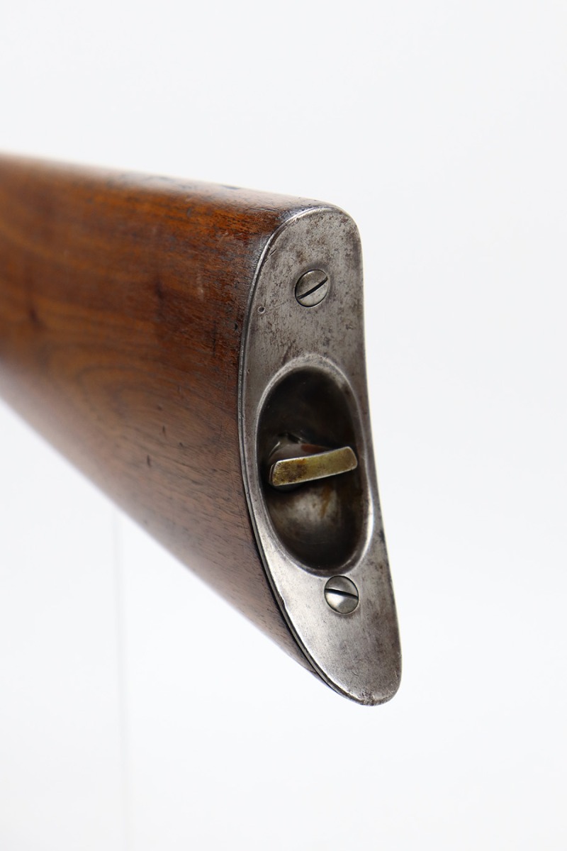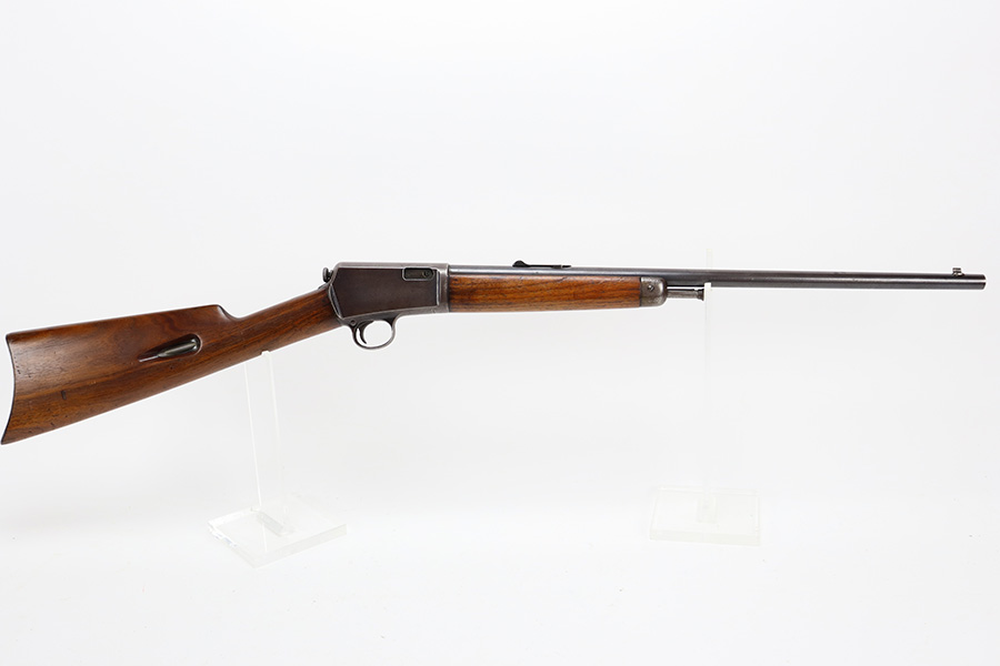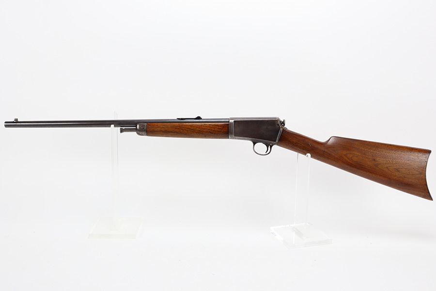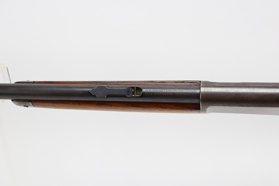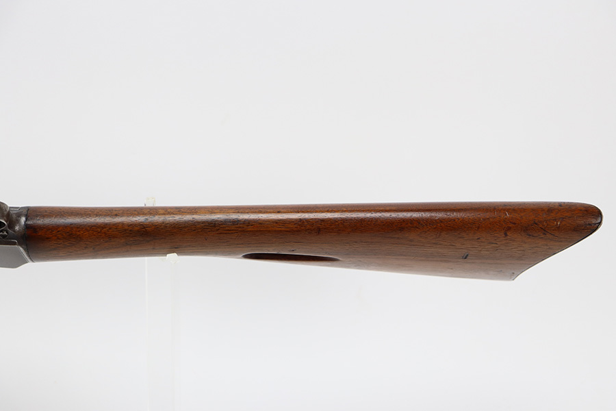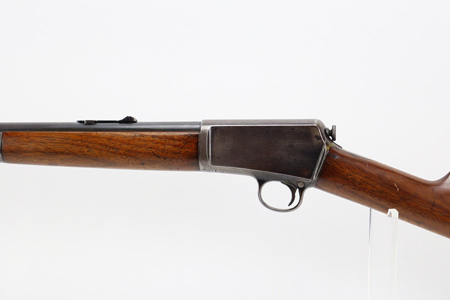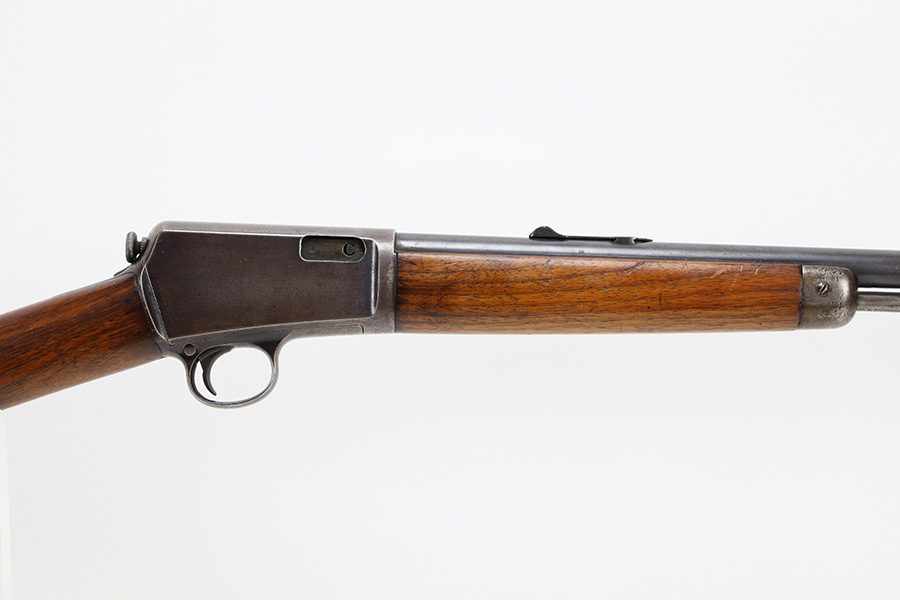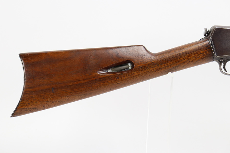 7/24/23 – This is a nice example of a Winchester Model 1903, manufactured in 1908 and chambered in .22 Caliber. All matching. The metal parts have retained roughly half of their finish with noticeable finish loss on the receiver and light spotty oxidation throughout. Very nice wood furniture with only minor handling marks here and there. The bore is shiny for the most part with strong rifling, but there are some tiny pits here and there.