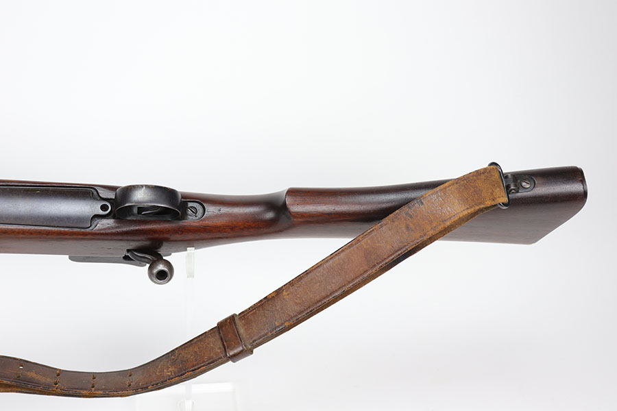 11/11/20 – This is an original Winchester Model 1917 rifle from 1918. It has flaming bomb proofs on receiver, bolt handle and barrel. Barrel is dated to September of 1918. The blued finish is original with minor thinning/oxidation on trigger group and receiver. Fantastic stock with what appears to be Springfield Armory proof behind the trigger guard. Bore has strong rifling but some frost throughout. Comes with period leather sling.