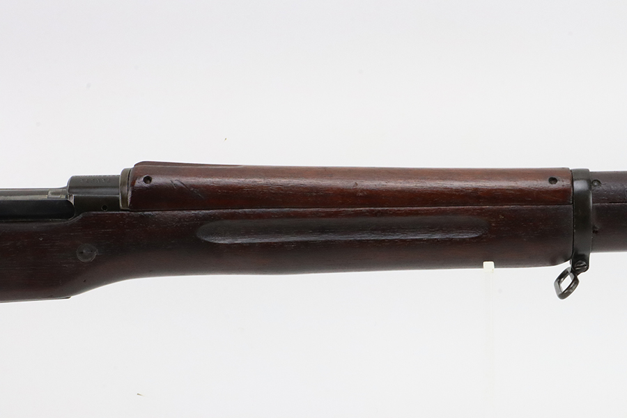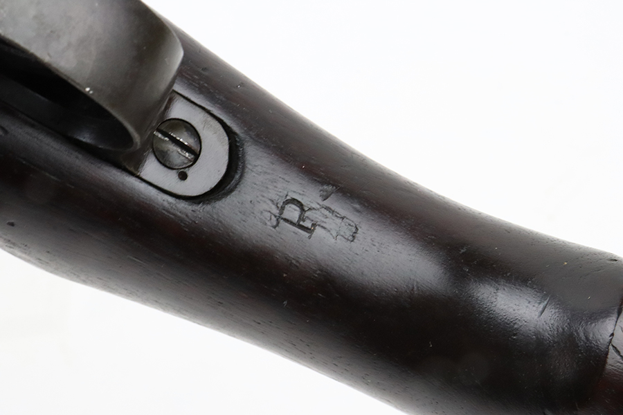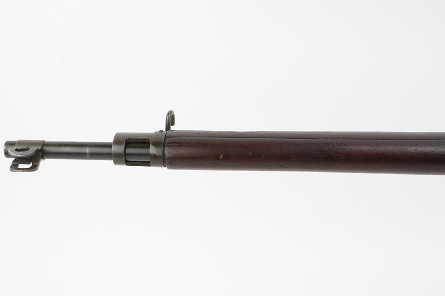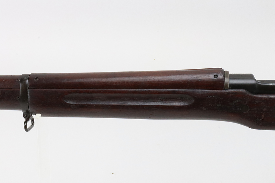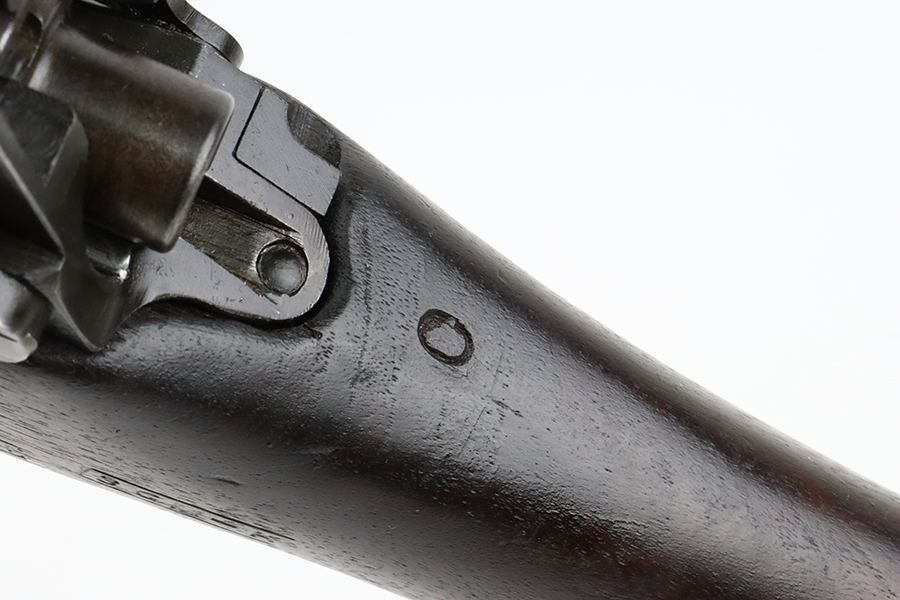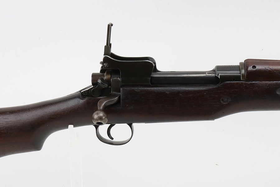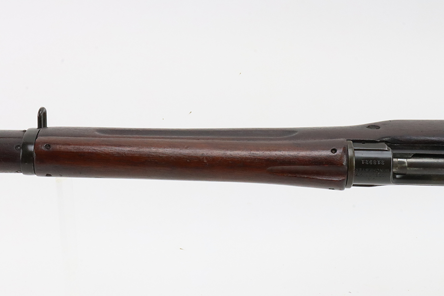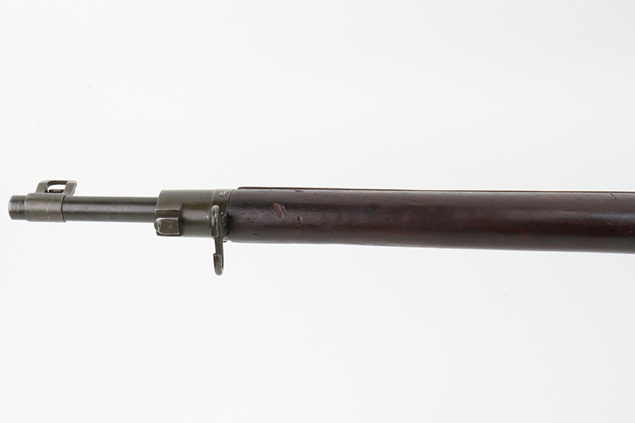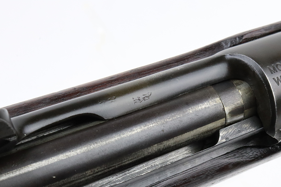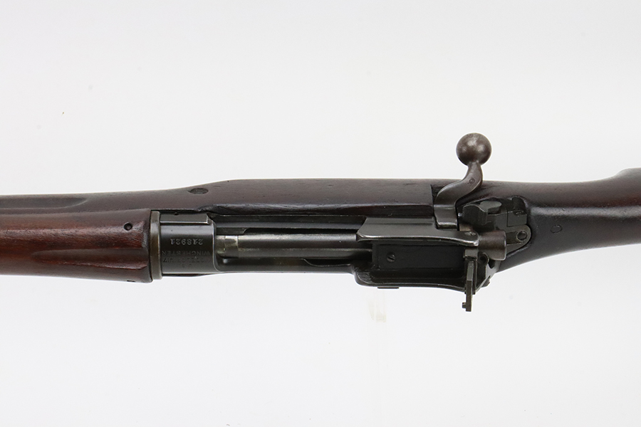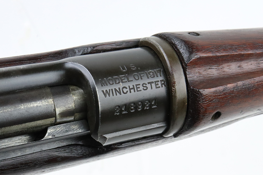 2/5/24 – This is a very nice example of a Winchester Model 1917 rifle issued to the US military during WW1. The barrel is marked Winchester and dated 3-18. The bolt is also Winchester marked. The stock is “Eagle Head” military proofed, but there are arsenal rework markings on the left side. The finish on the metal parts rates about 93-94% with general high edge wear, muzzle wear, and some wear on the bolt handle. Excellent wood furniture with below-average signs of wear. Minty bore.