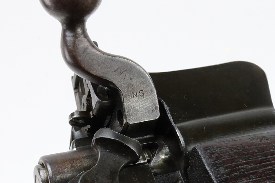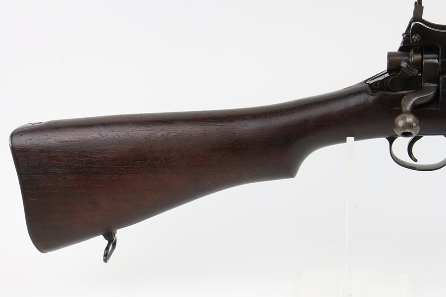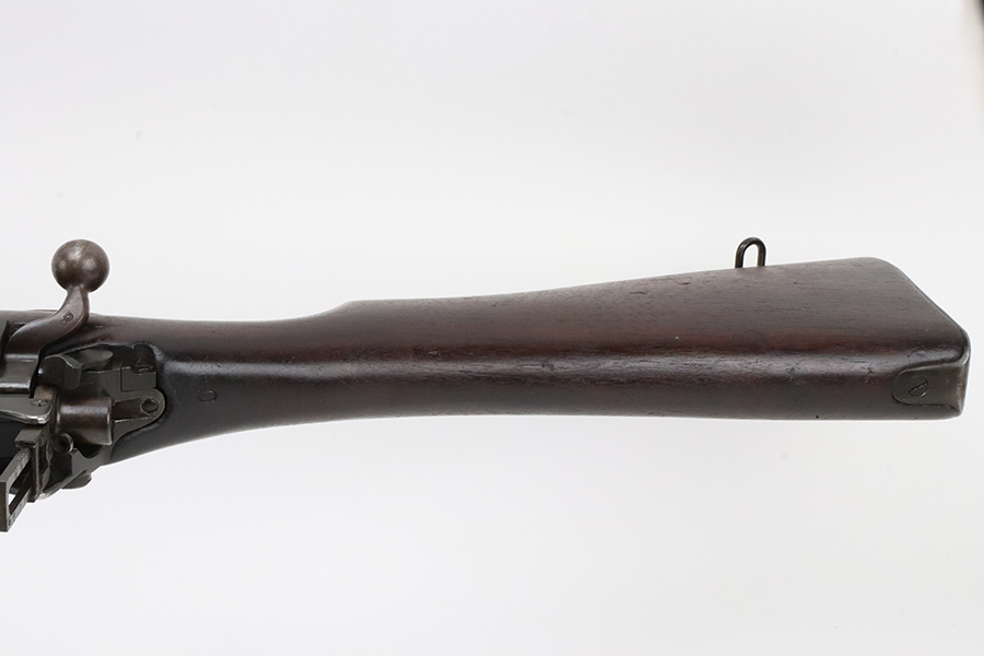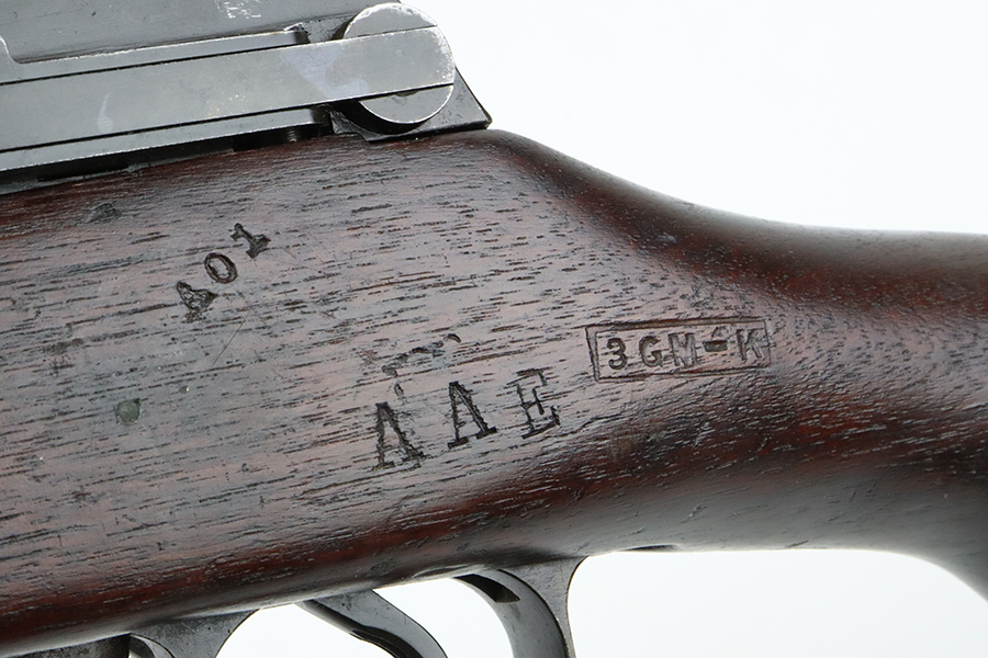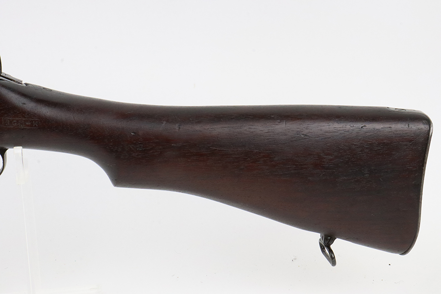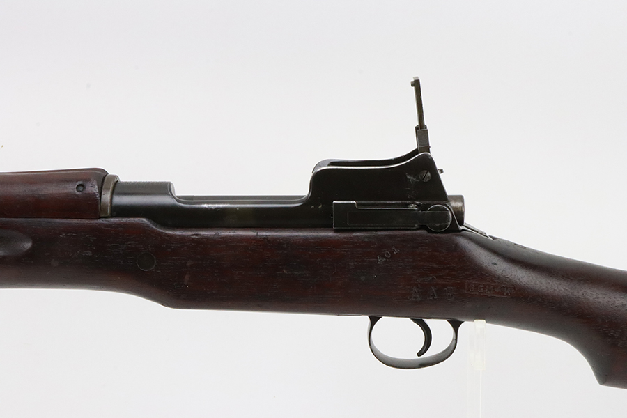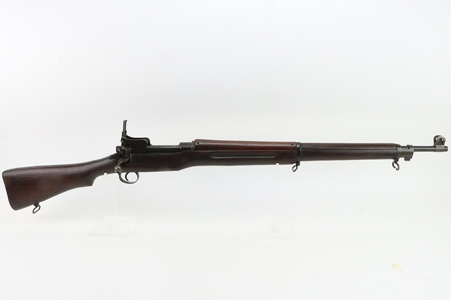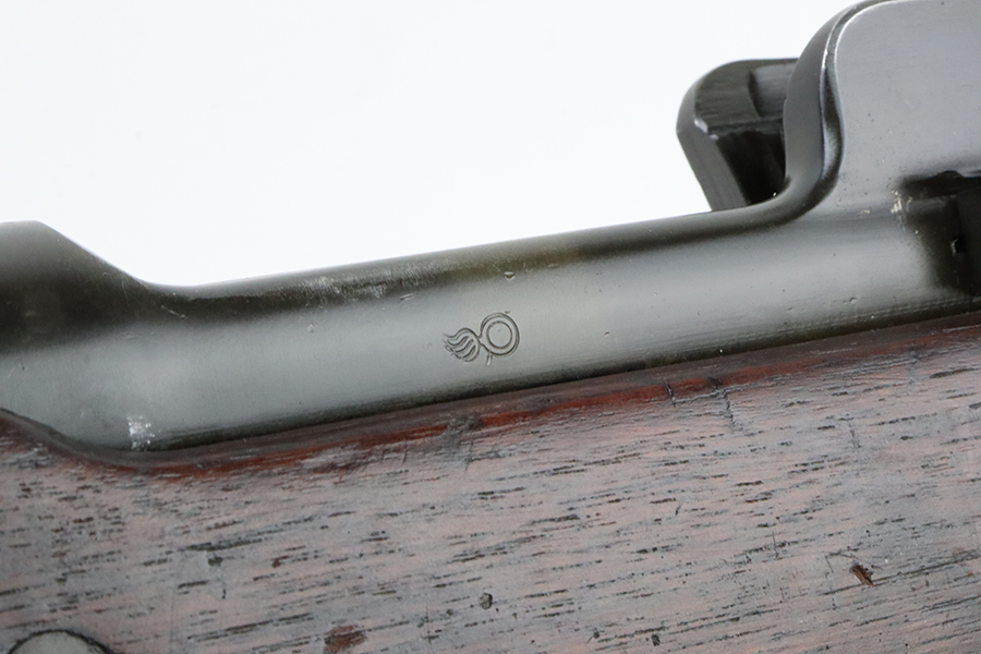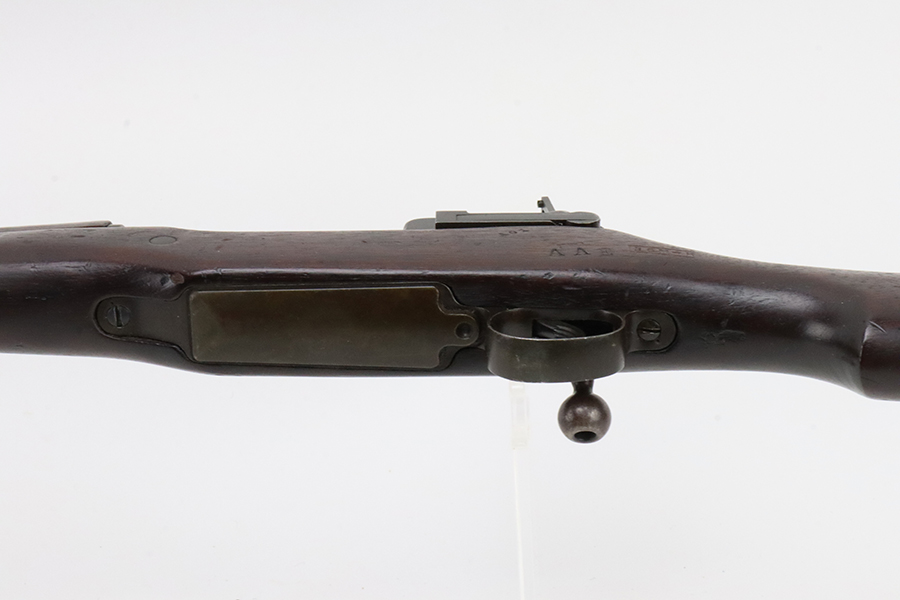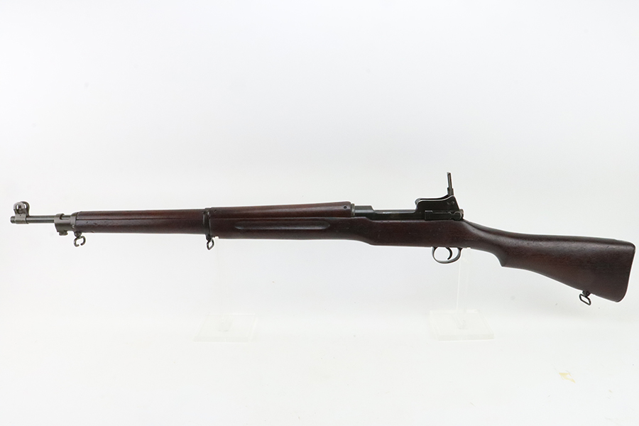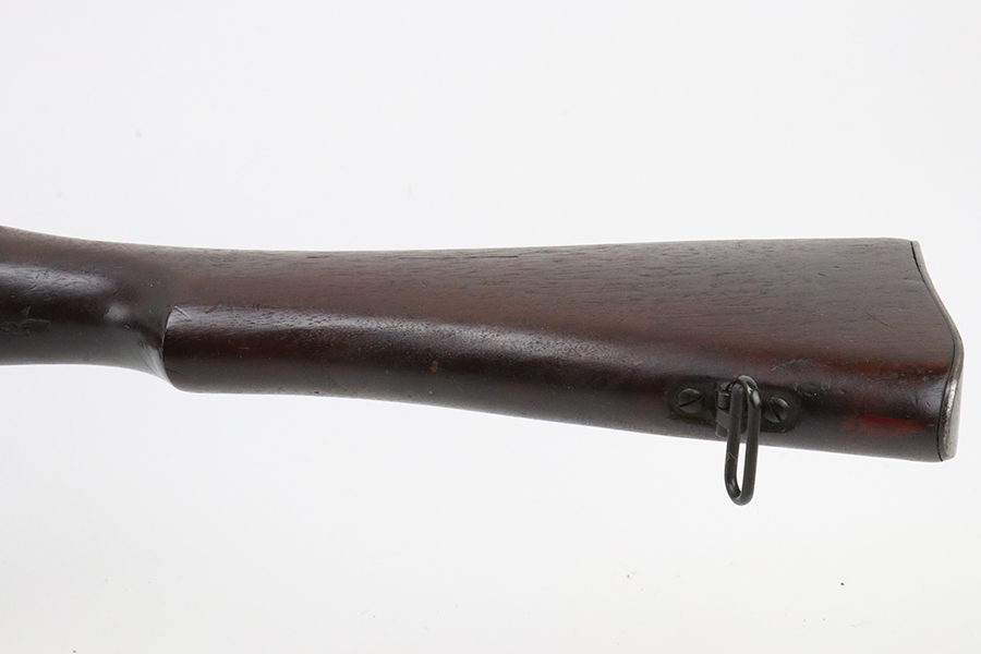 2/5/24 – This is a very nice example of a Winchester Model 1917 rifle issued to the US military during WW1. The barrel is marked Winchester and dated 3-18. The bolt is also Winchester marked. The stock is “Eagle Head” military proofed, but there are arsenal rework markings on the left side. The finish on the metal parts rates about 93-94% with general high edge wear, muzzle wear, and some wear on the bolt handle. Excellent wood furniture with below-average signs of wear. Minty bore.
