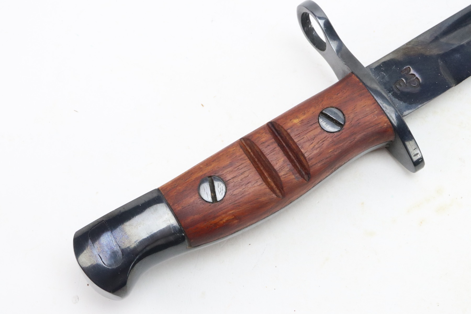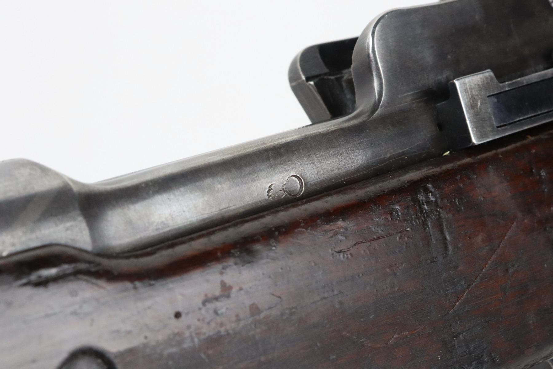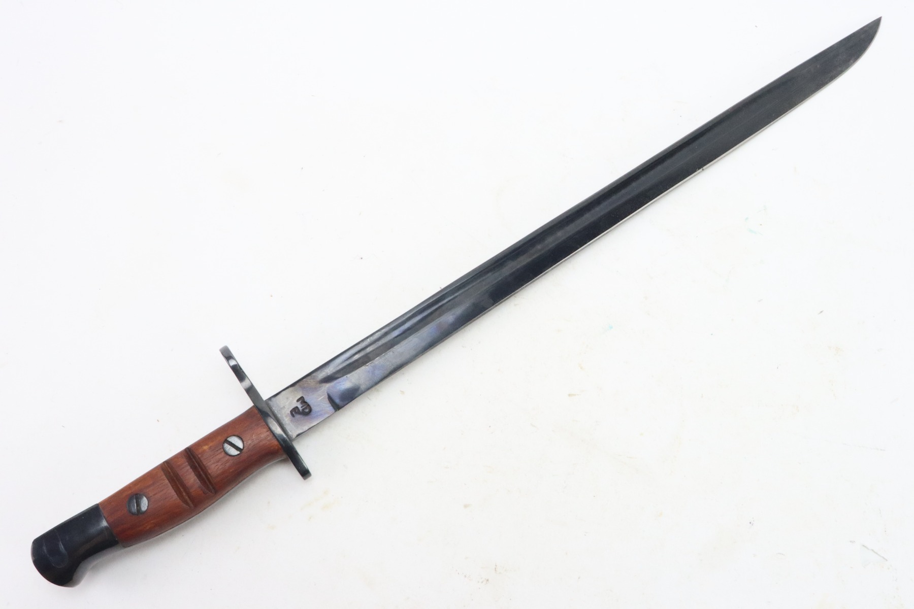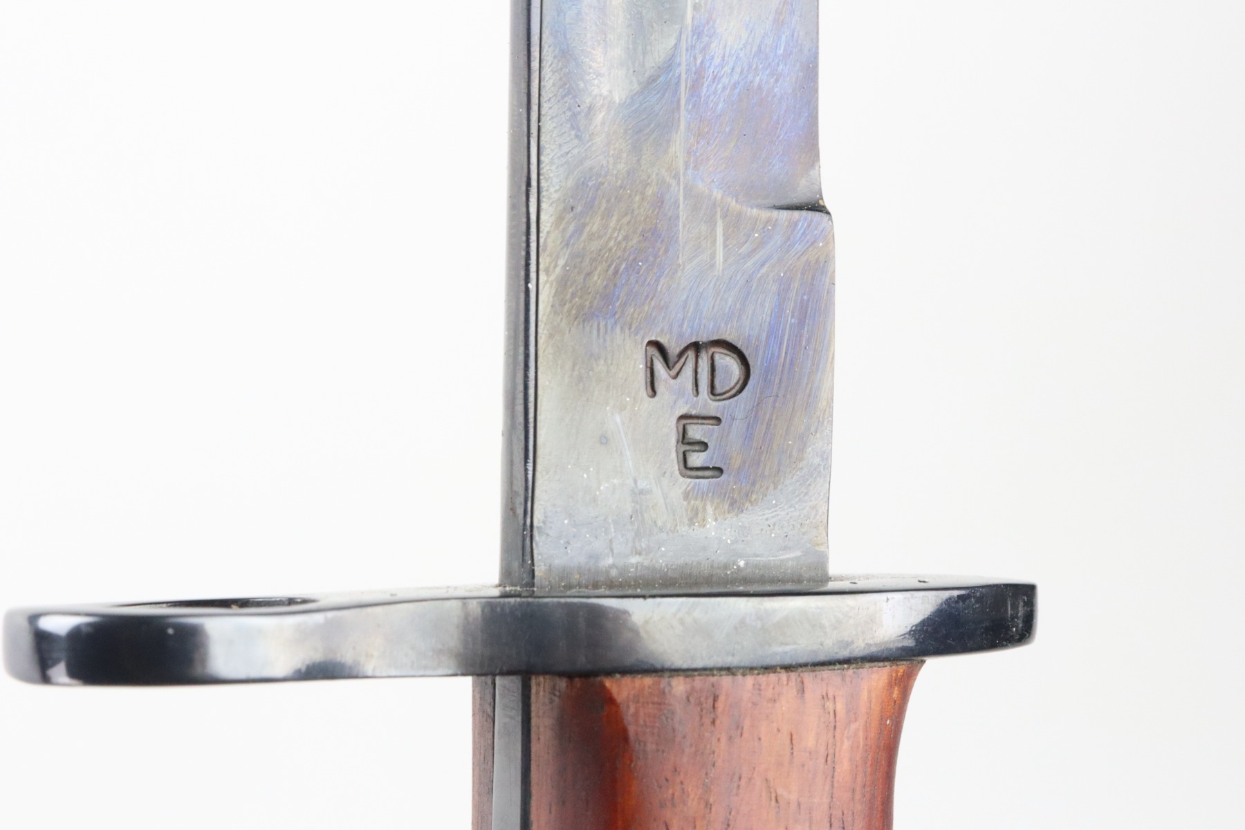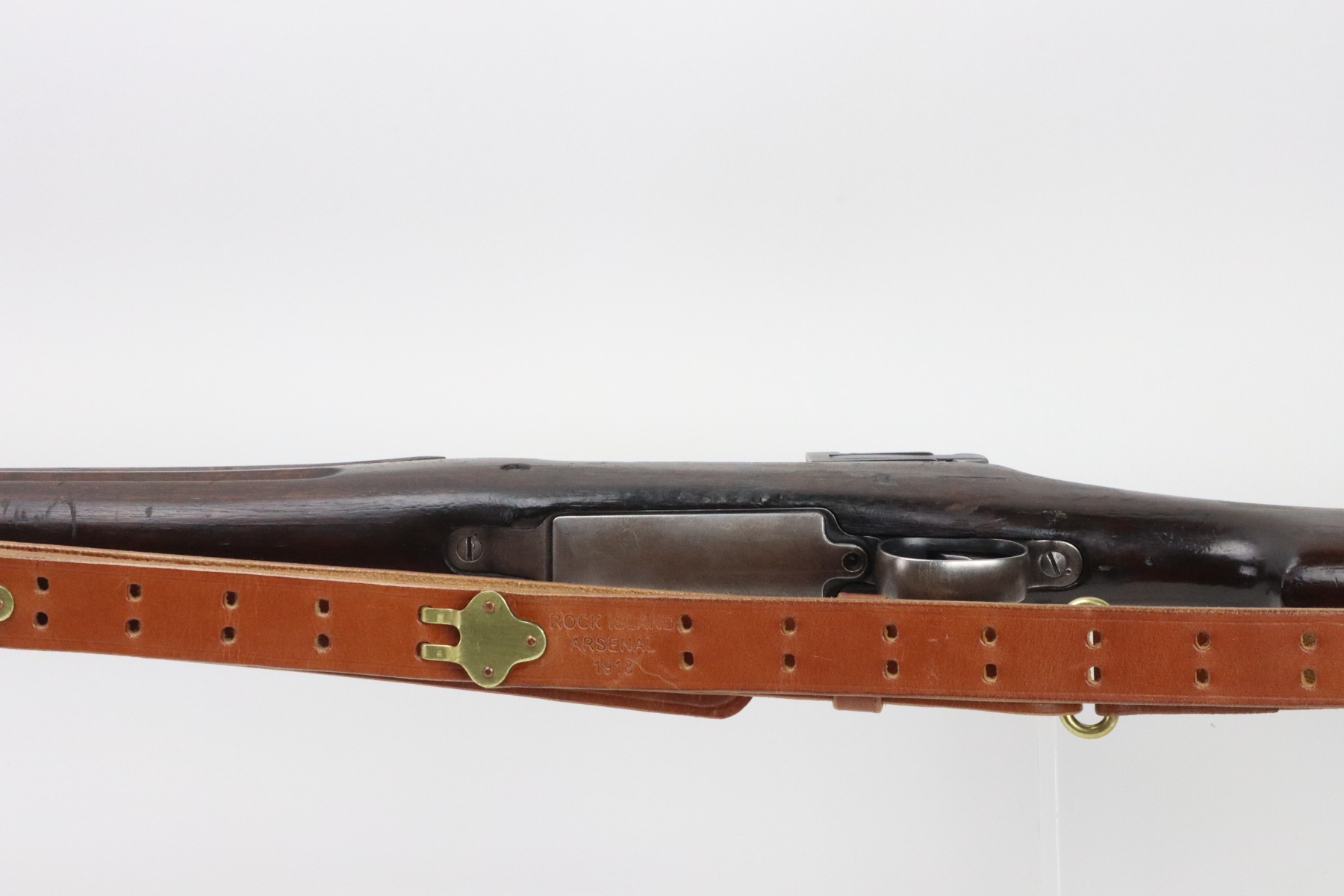 04/09/2024 – For sale is a US Model 1917 made by Winchester in 1918. The rifle is heavily worn but in good condition. Many parts of the receiver and bolt handle are worn down to bare metal. The rest of the rifle retains some of its bluing or instead has patina. The bore is in good shape but is on the darker side with good rifling. The side of the stock is stamped with what looks like a RGM-K in a box. The rifle comes with a repro bayonet and sling.
