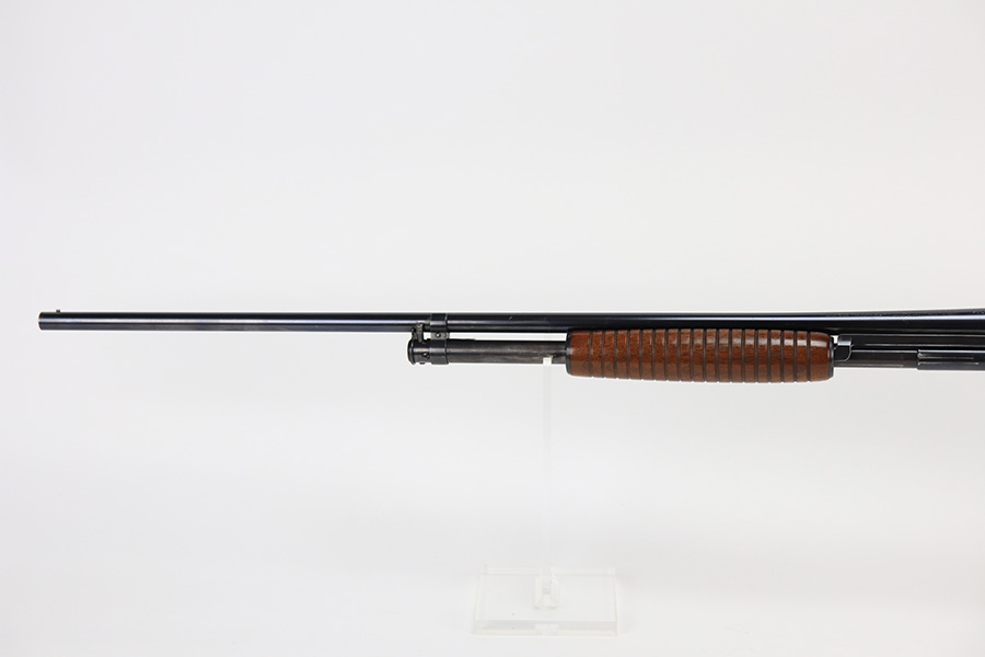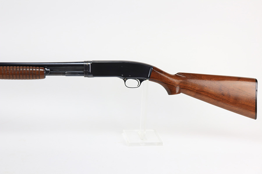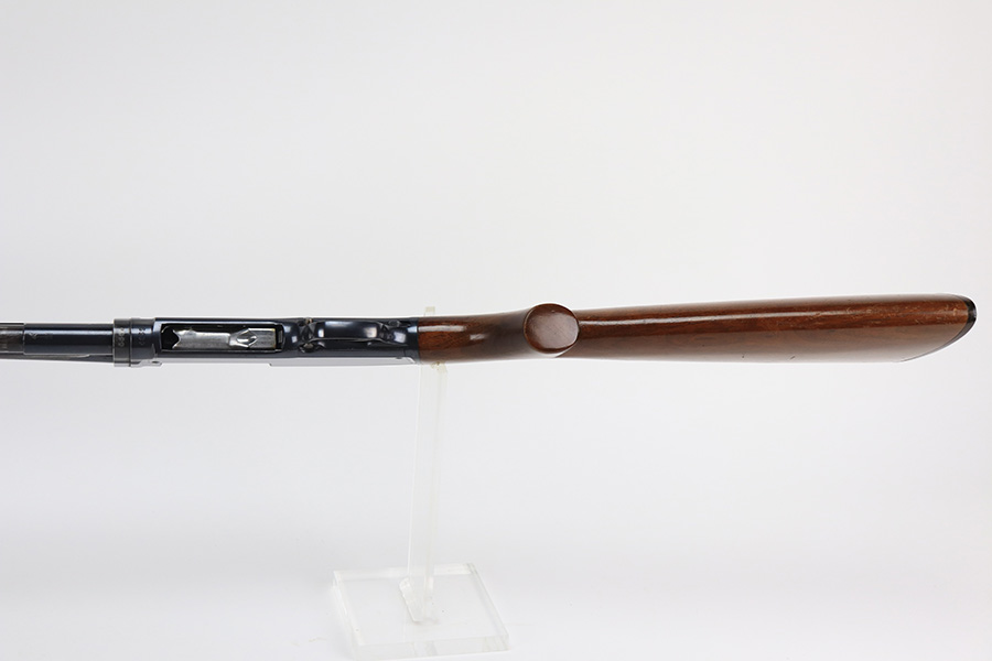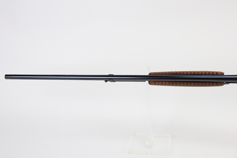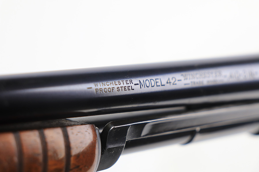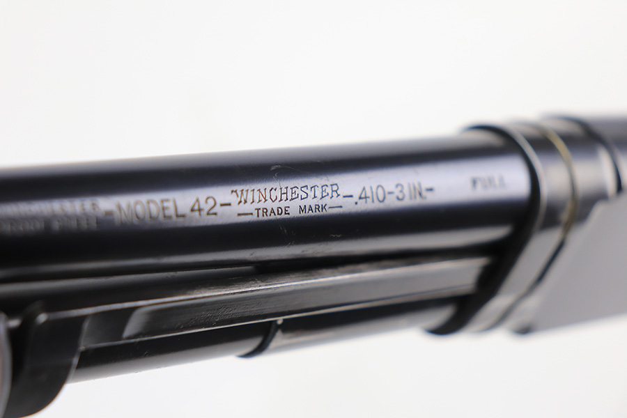 2/17/22 – This is a beautiful and very early Winchester Model 42 that was made in 1933, the first year of production. The Model 42 was the first pump shotgun specifically designed for the .410 chambering and resembles its larger cousin, the Model 12. The original blue is excellent throughout with minor high edge wear on the receiver. Barrel is 28in with 3in chamber with FULL choke and a minty bore. Excellent stock with minor dings, but there are no chips or cracks. The LOP measures 14” from the front of the trigger to the back of the buttplate.
