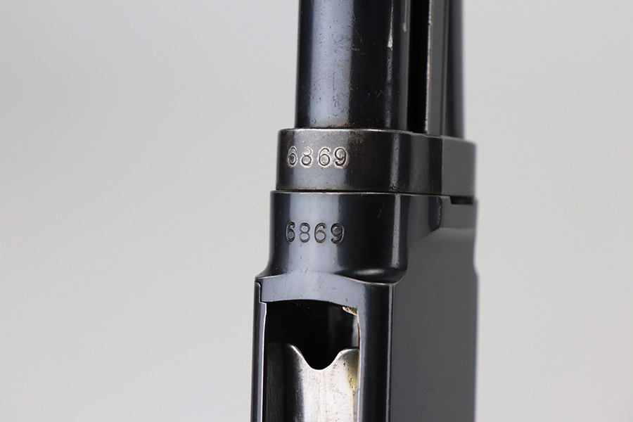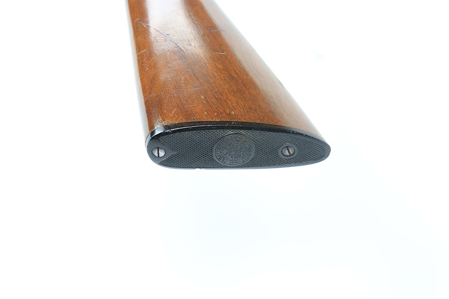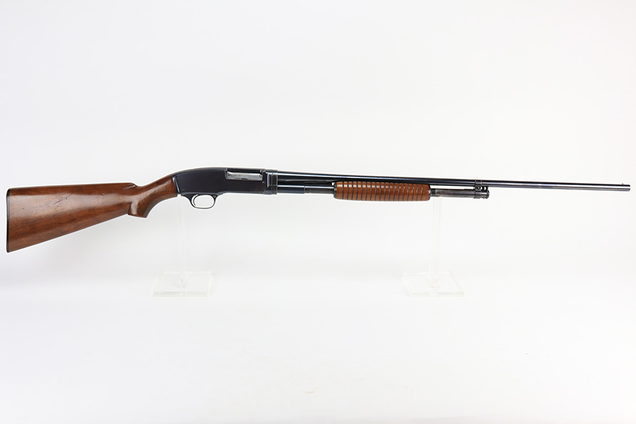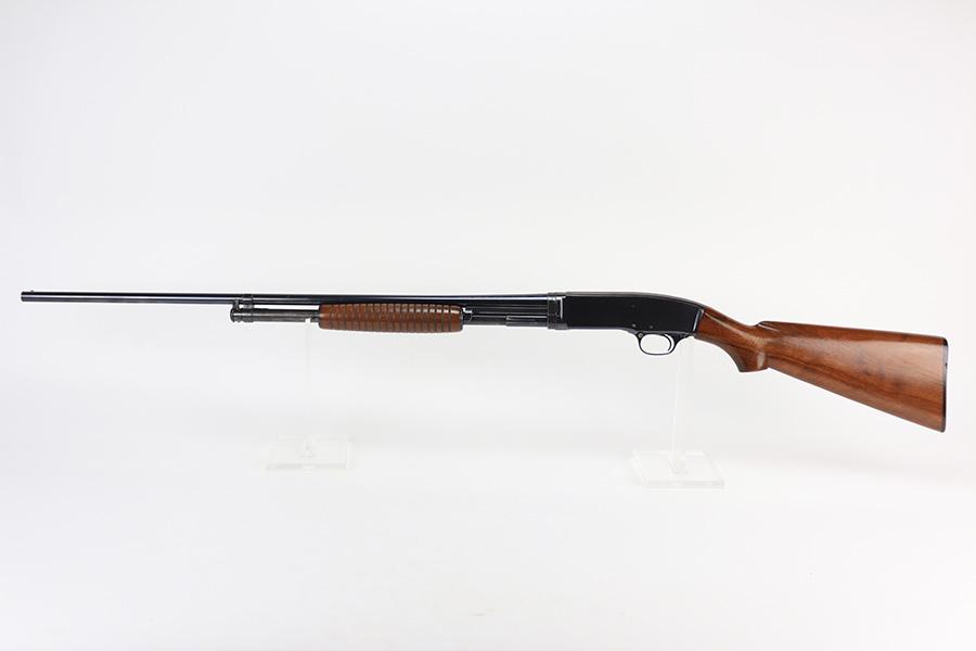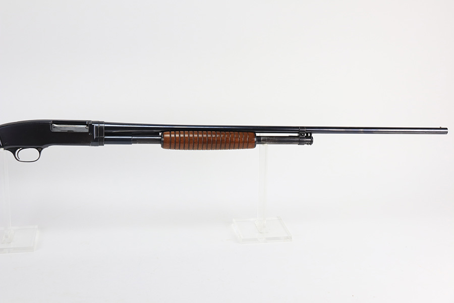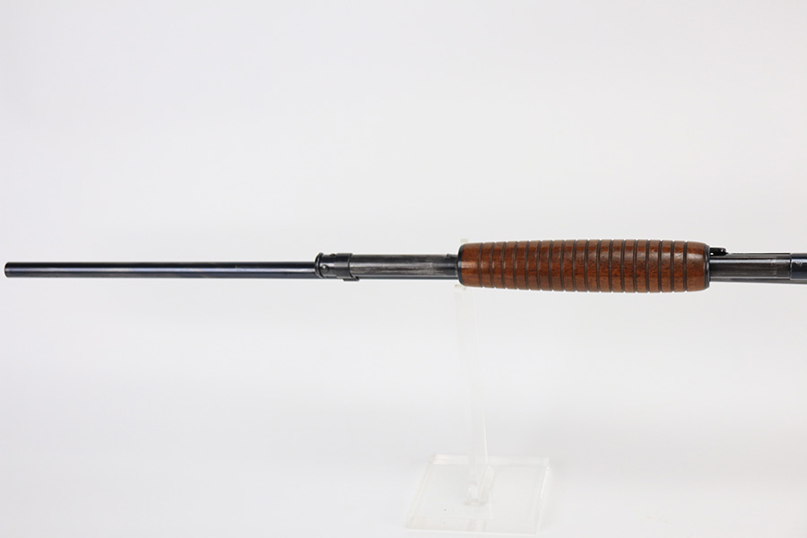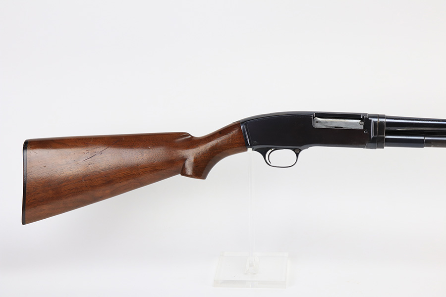 2/17/22 – This is a beautiful and very early Winchester Model 42 that was made in 1933, the first year of production. The Model 42 was the first pump shotgun specifically designed for the .410 chambering and resembles its larger cousin, the Model 12. The original blue is excellent throughout with minor high edge wear on the receiver. Barrel is 28in with 3in chamber with FULL choke and a minty bore. Excellent stock with minor dings, but there are no chips or cracks. The LOP measures 14” from the front of the trigger to the back of the buttplate.