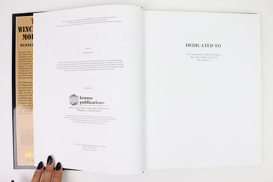 10/31/22 – This is an original hardcover copy of Herbert Houze’s book, “The Winchester Model 52: Perfection in Design”. The book is in great condition with all pages intact and the original sleeve. This exhaustively researched book, which includes more than 200 photos, features never-before-seen: