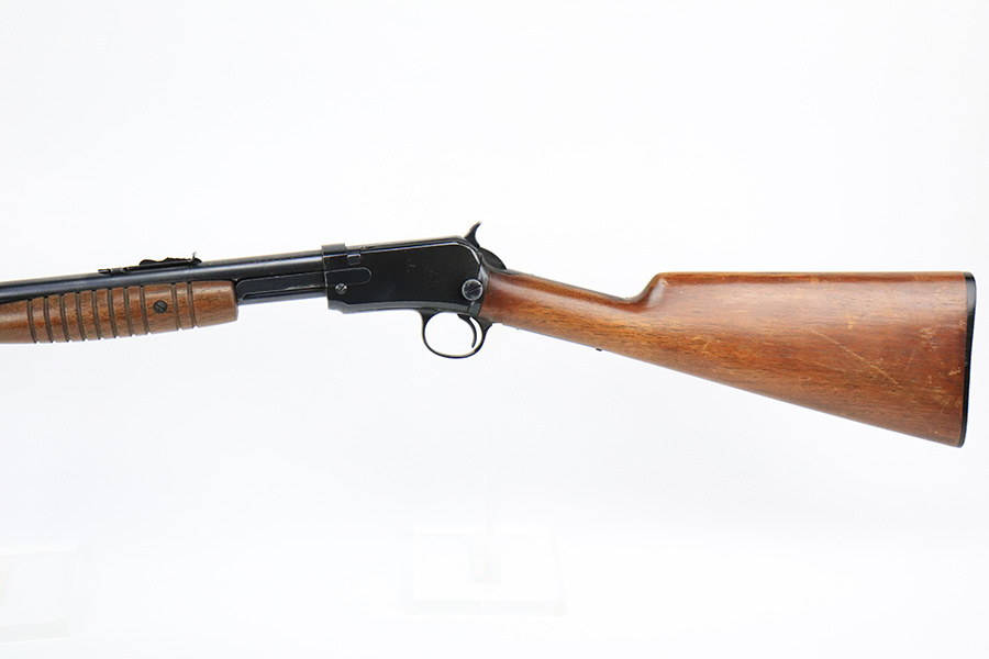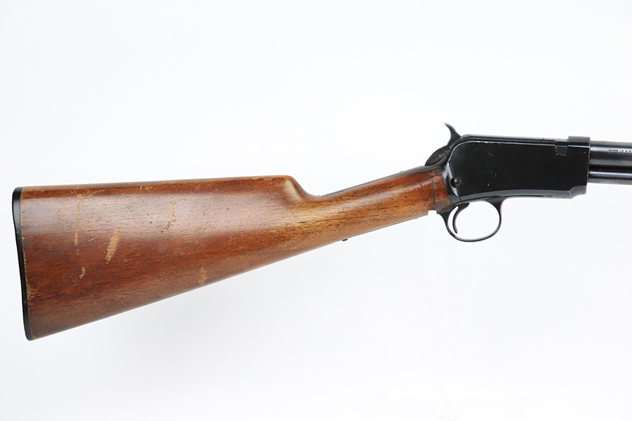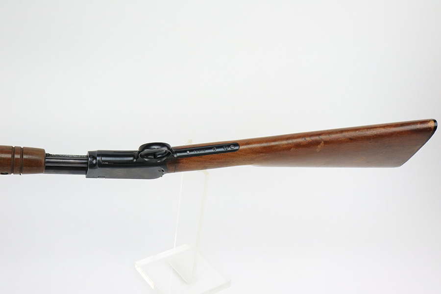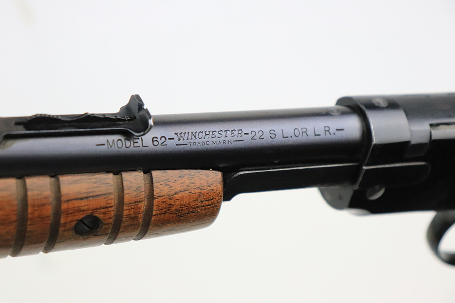 8/5/22 – This is a very nice Winchester Model 62 manufactured in 1938. The original finish is in very nice condition with minimal handling wear throughout and only a few patches of thinning here and there. The finish loss/thinning is isolated primarily to the muzzle and moving parts the action requires to function but there are a few small patches of finish loss on the barrel here and there. The wood stock and handguard are in excellent condition, the stock shows minor signs of handle/use wear. The action is smooth. The bore is mint.