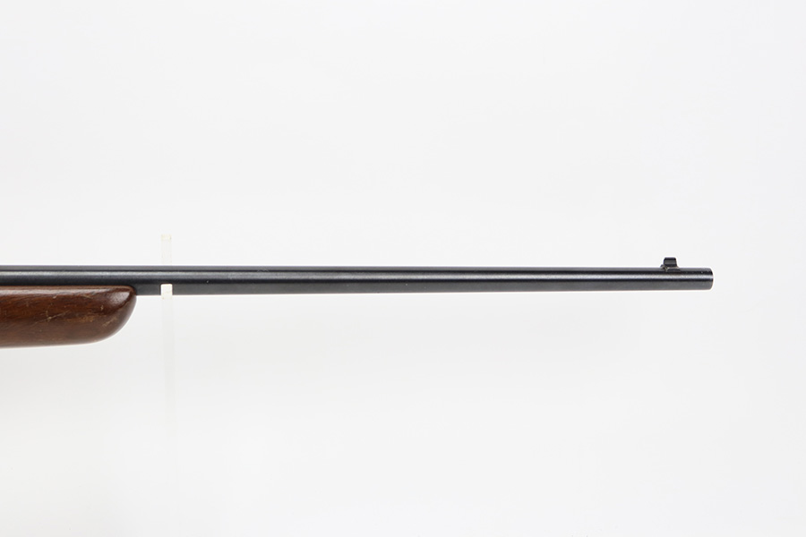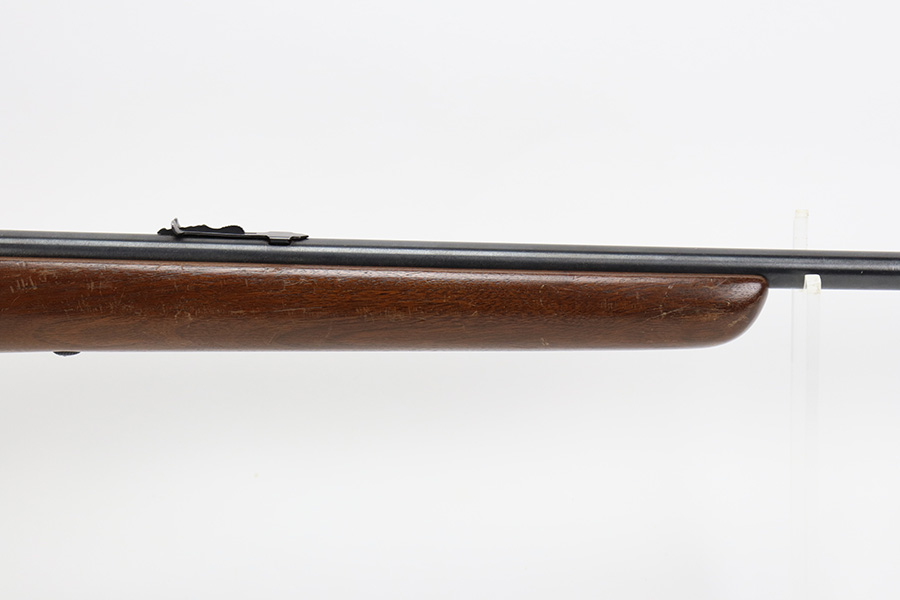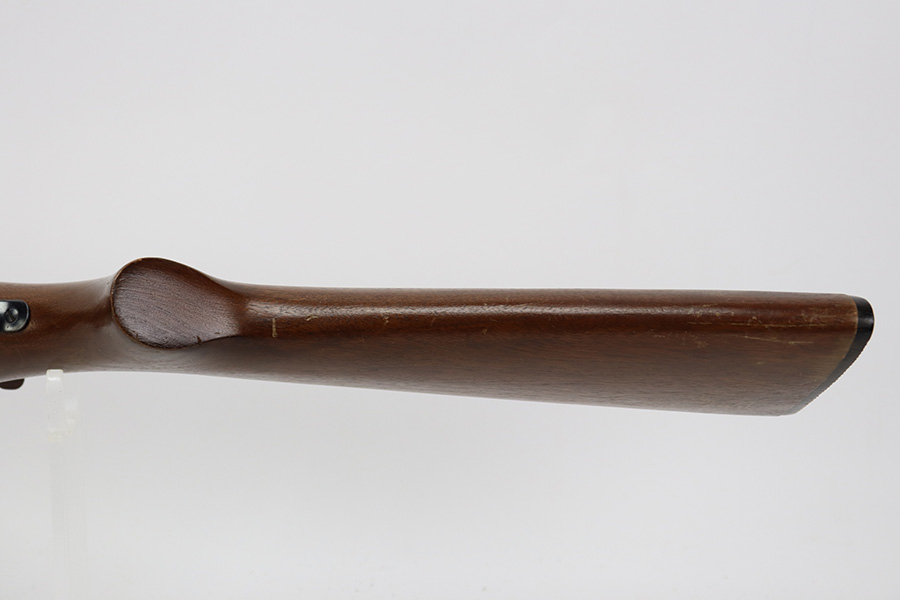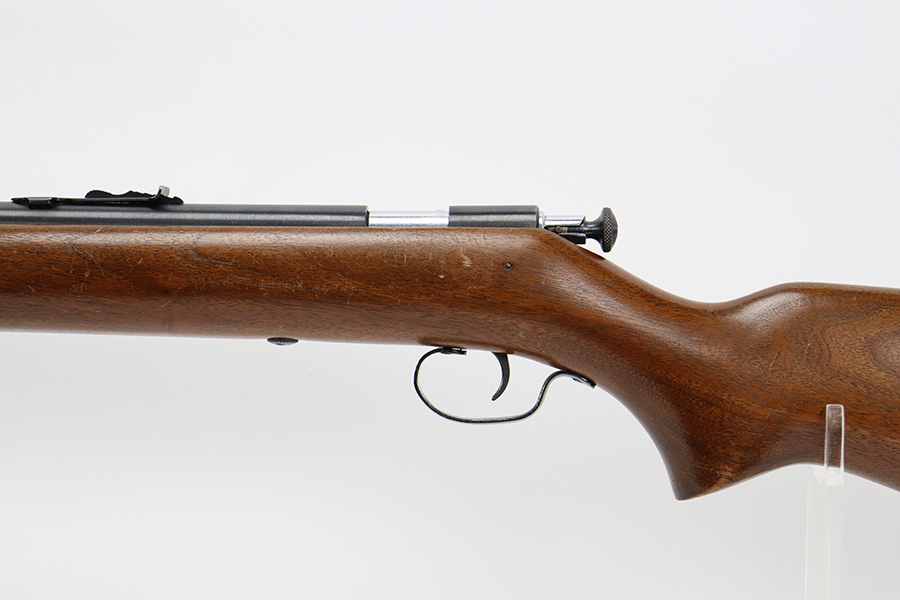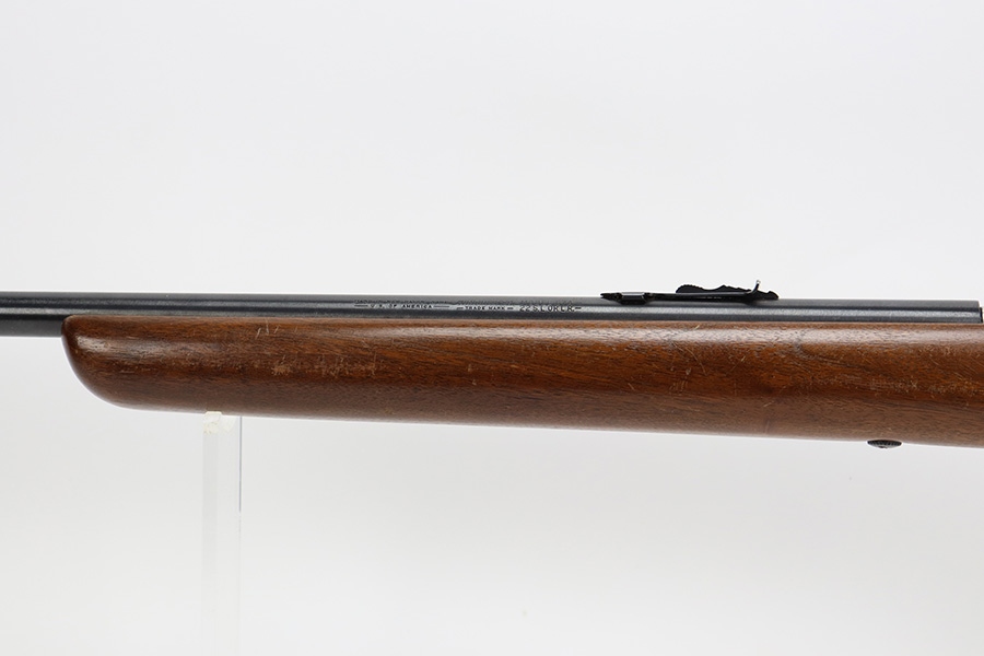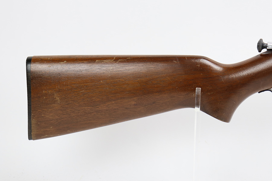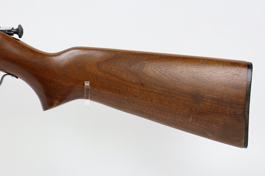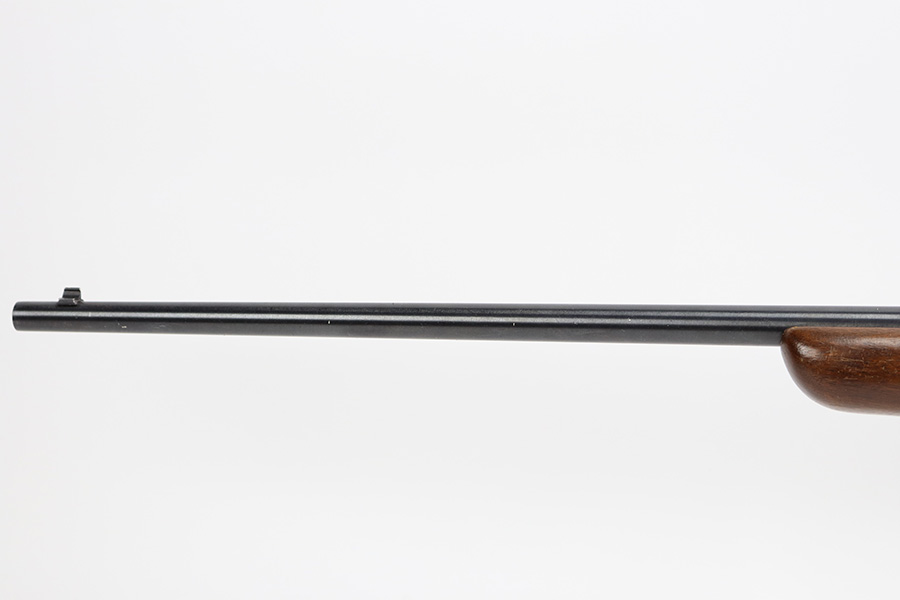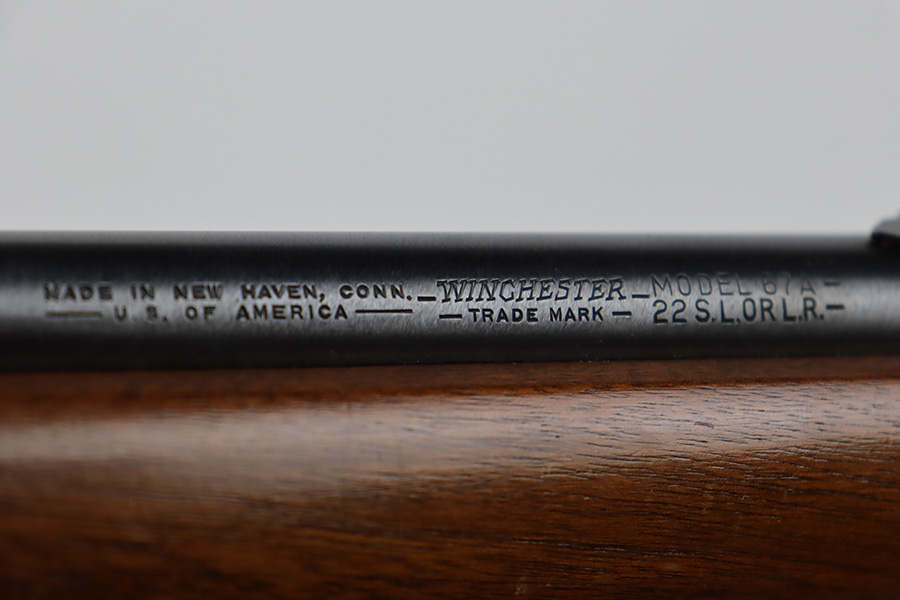 7/25/23 – This is a very nice example of a Winchester Model 67A single shot bolt action rifle, manufactured between 1938-63 and chambered in .22 short, long, and long rifle. The metal parts have retained nearly all of their finish with some tiny handling marks along the barrel. The wood stock has no major damage, but there are light scratches and scuffs throughout. Mint bore.