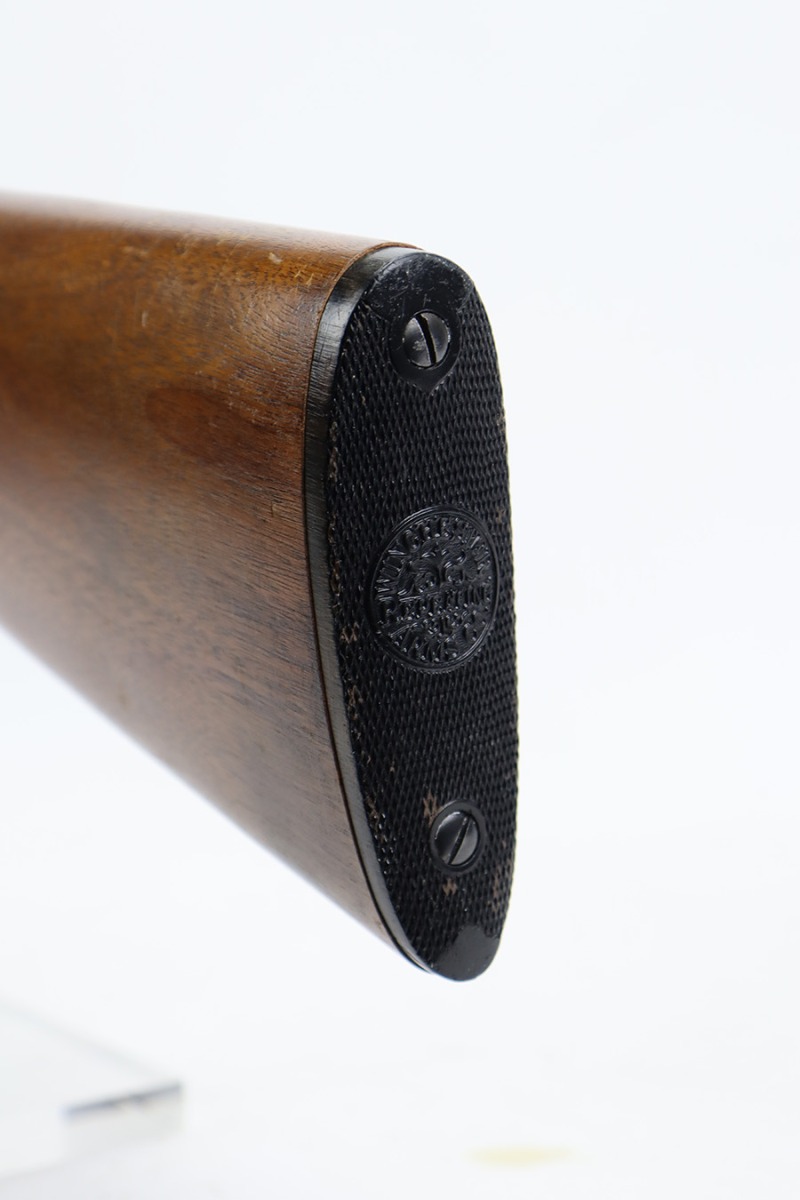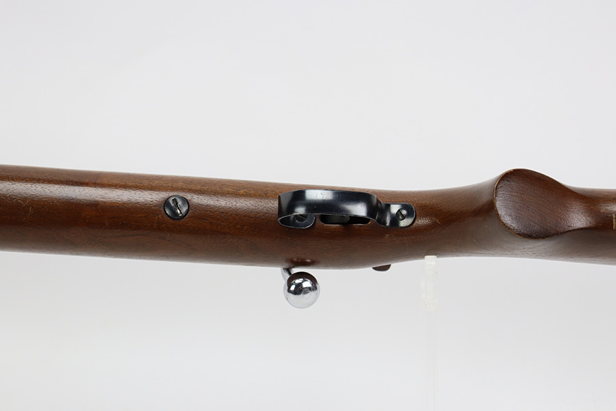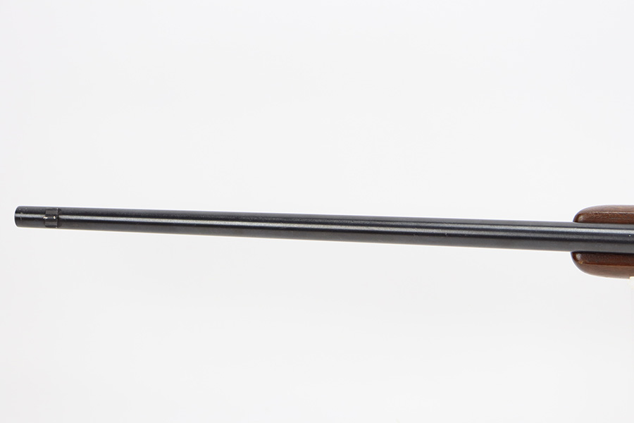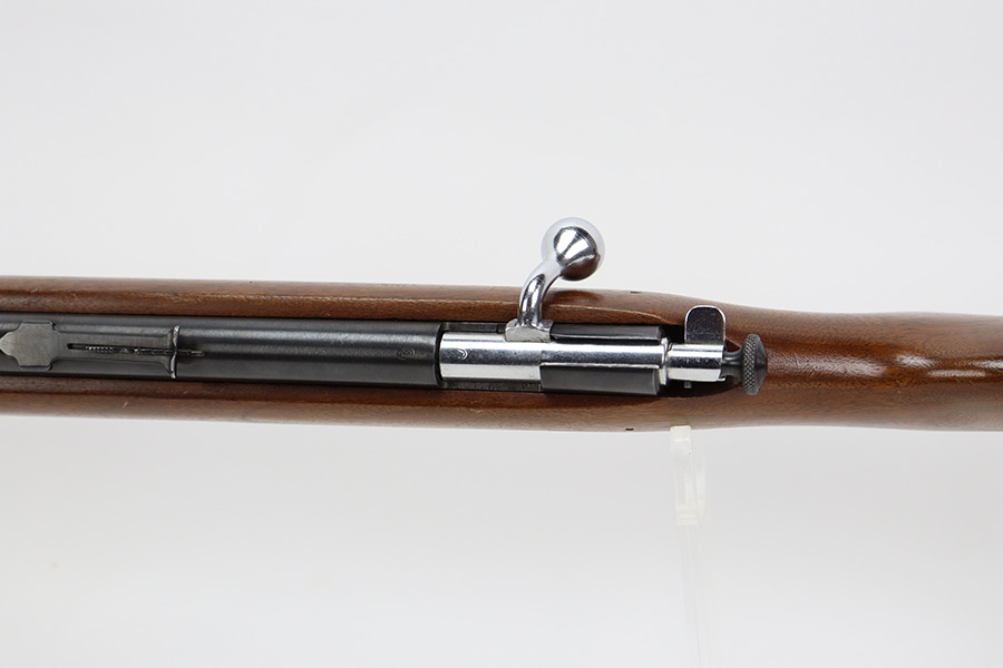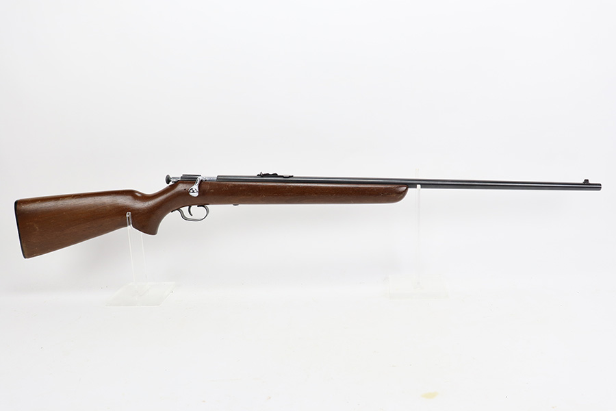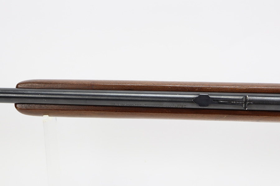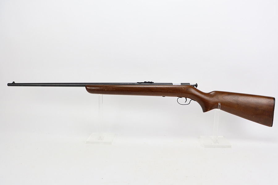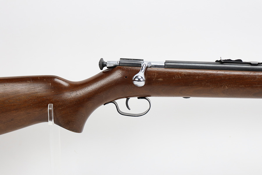 7/25/23 – This is a very nice example of a Winchester Model 67A single shot bolt action rifle, manufactured between 1938-63 and chambered in .22 short, long, and long rifle. The metal parts have retained nearly all of their finish with some tiny handling marks along the barrel. The wood stock has no major damage, but there are light scratches and scuffs throughout. Mint bore.