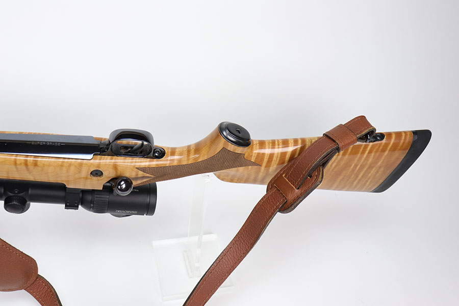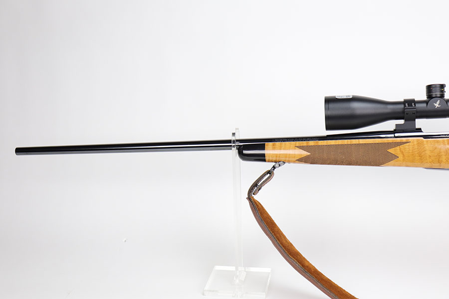 12/7/20 – This is a gorgeous Winchester Model 70 Supergrade bolt action rifle, chambered in .300 Win Mag. It has a beautiful high polish finish and a gorgeous blonde wood stock. It comes with a Swarovski Z6i 2-12x50mm rifle scope and a Redhead leather sling. The optics are excellent. 25″ barrel. The gun is in like-new condition – just a few very light handling marks here and there. Excellent bore – shiny with strong rifling.