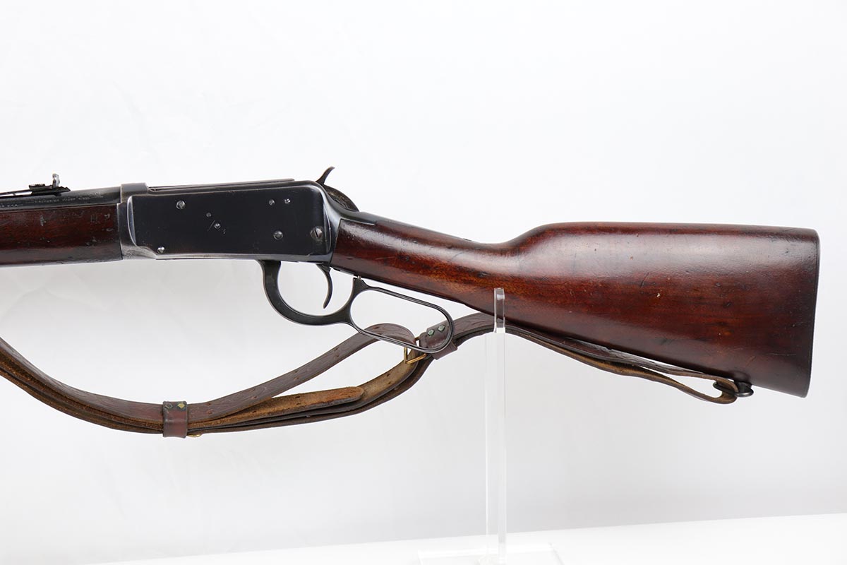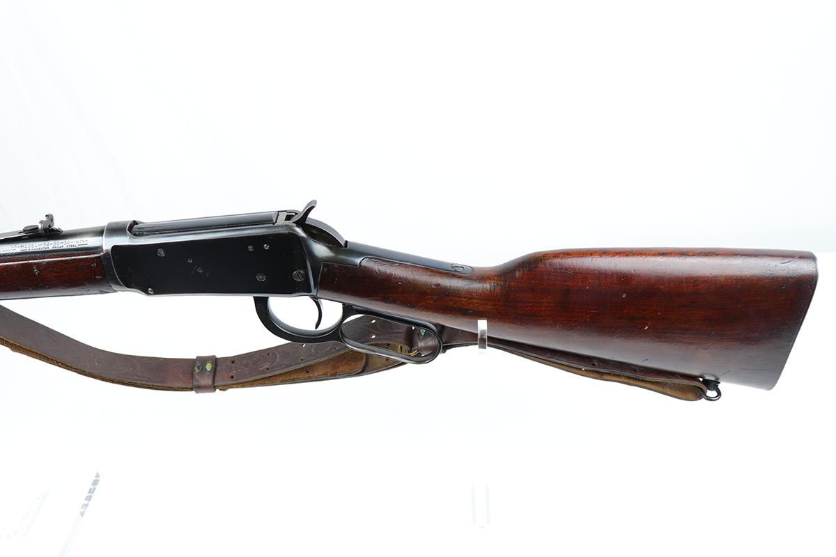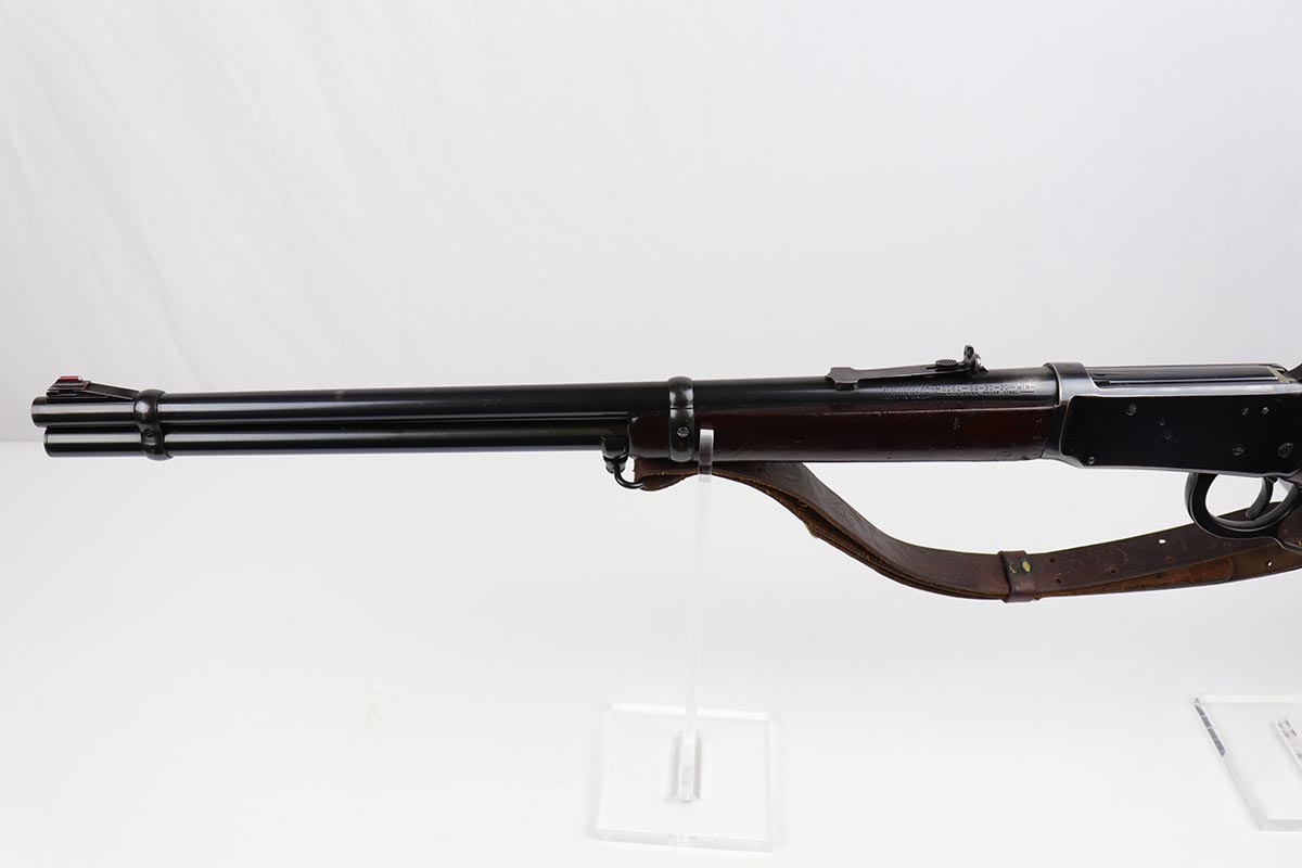 5/29/19 – This is a lever-action Winchester model 94 that was manufactured in 1960. The rifle is all original with about 90% high-polish blue remaining, showing the majority of finish loss on the top and bottom of the receiver. Smooth action and excellent bore. Chambered for .30-30 WIN. Stock has some obvious scratches and dings but no major flaws. Nice, original sling.