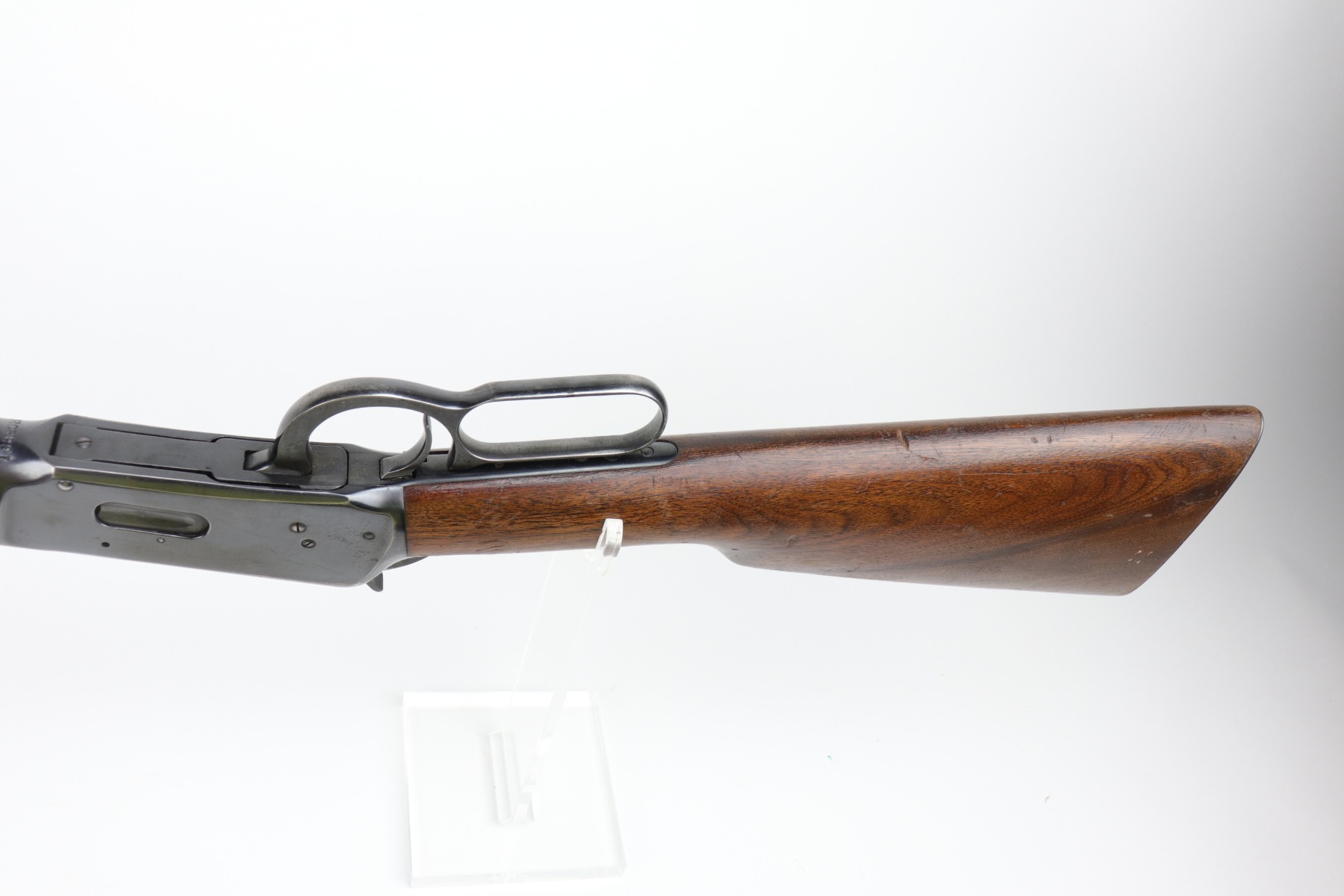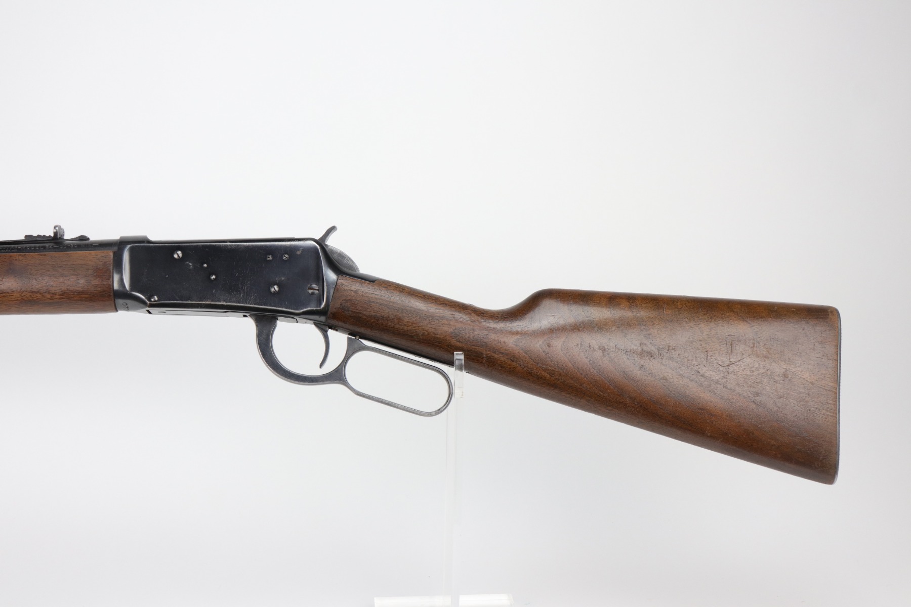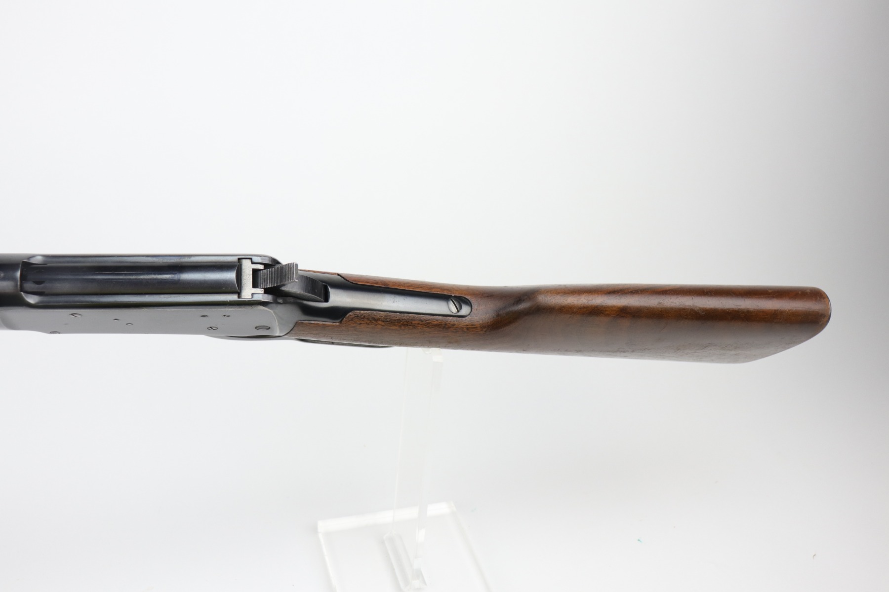 9/17/20 – This is a very nice example of a Winchester Model 94 Lever Action Rifle, chambered in .30-.30 Win. From the serial number, this gun was manufactured around 1952. It has retained about 92-94% of its original bluing with minor wear on the high edges of the receiver, on the bottom of the lever, and a few small spots on the barrel. There are some surface scratches on both sides of the receiver. There’s a small area of light freckling on the underside and both sides of the receiver. The gun is fully functional. The stock is excellent – just a few minor handling marks and surface scratches. The bore is minty.