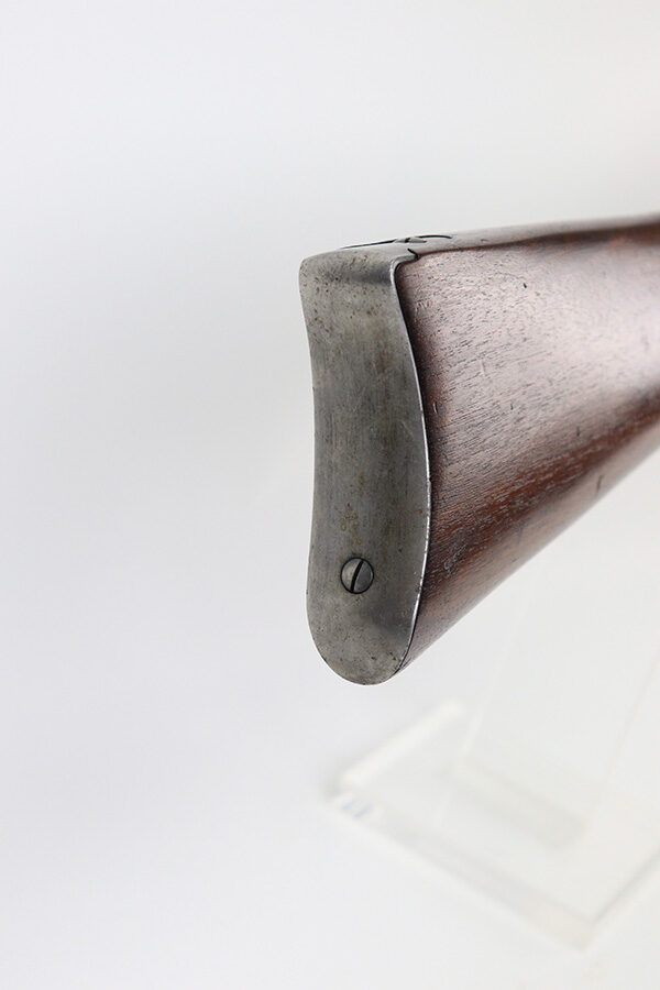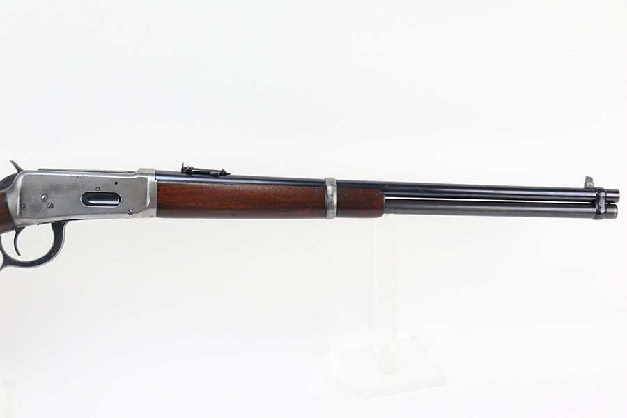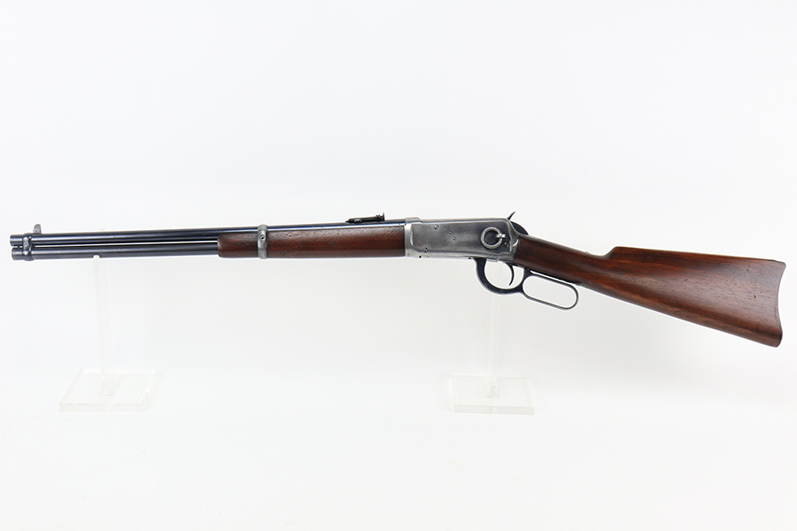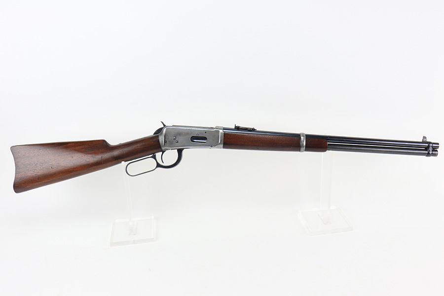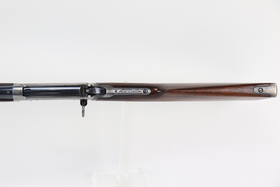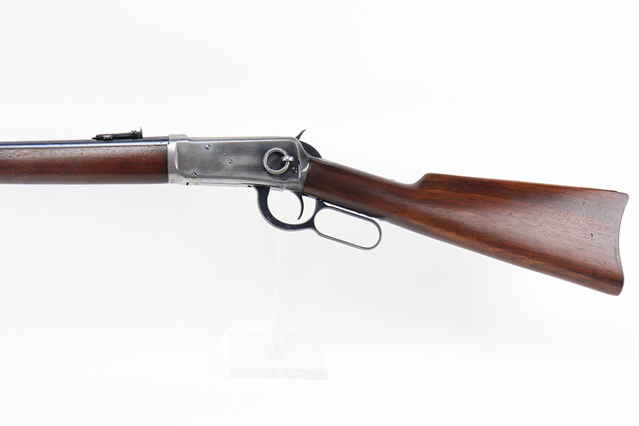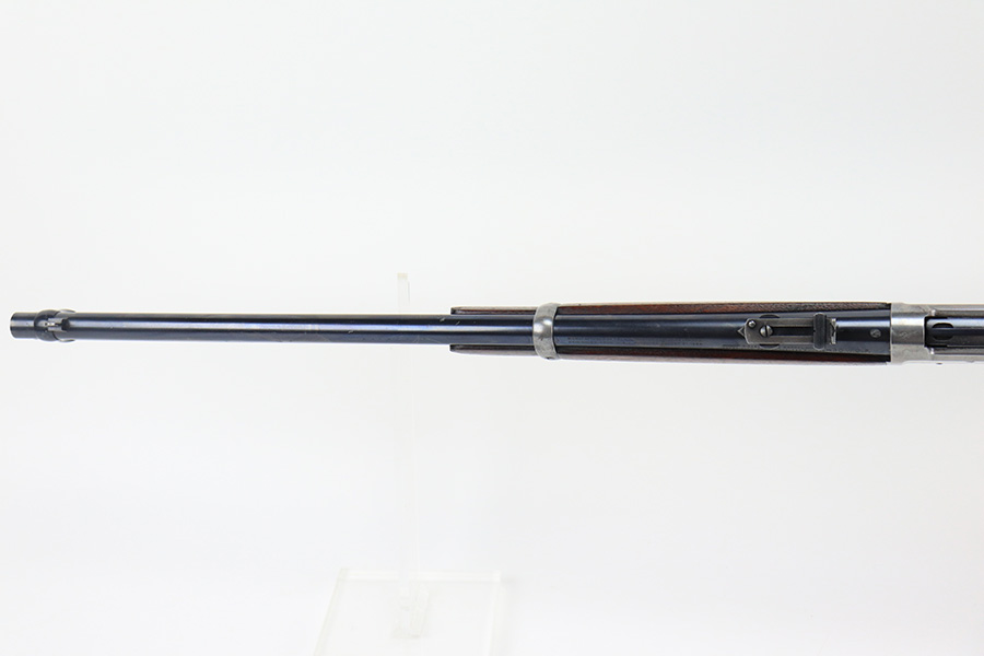 10/25/22 – This is a nice example of a Winchester Model 94 Saddle Ring Carbine. It is all matching, chambered in .30 WCF, and was manufactured in 1925. Overall, the gun is in very nice condition, but the receiver, rear barrel band, and butt plate have lost most of their original bluing. There is spotty wear on the lever and some light scratches and handling marks along the barrel. The original saddle ring is intact. The wood stock is excellent with only minor dings and scratches here and there. Excellent bore – shiny with strong rifling. The action is smooth.