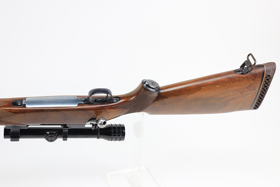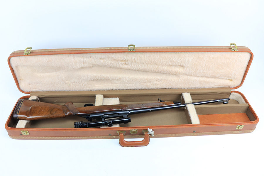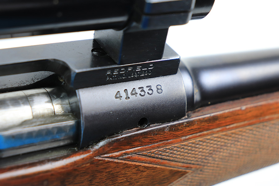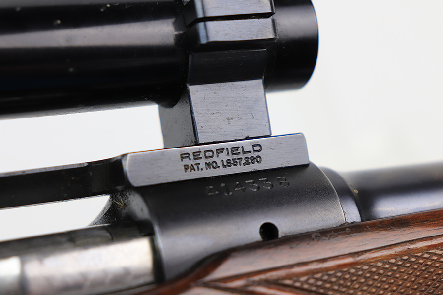 1/5/22 – This is an excellent example of a Pre-64 Winchester Model 70 Bolt action rifle, chambered in .270 Winchester. From the serial number, it was manufactured in 1957. This one comes with a nice Redfield 1″ Tube scope (excellent, clear optics) and a very nice felt-lined hard case. The gun has retained most of its finish with minor wear around the front sight/muzzle and few small handling marks on the barrel and trigger guard. The aluminum floor plate says “Super Grade” and has almost no finish. The stock is very nice with minor scratches and chips in the varnish here and there. There is a small amount of surface rust on the scope rings. The bore is stone-mint.