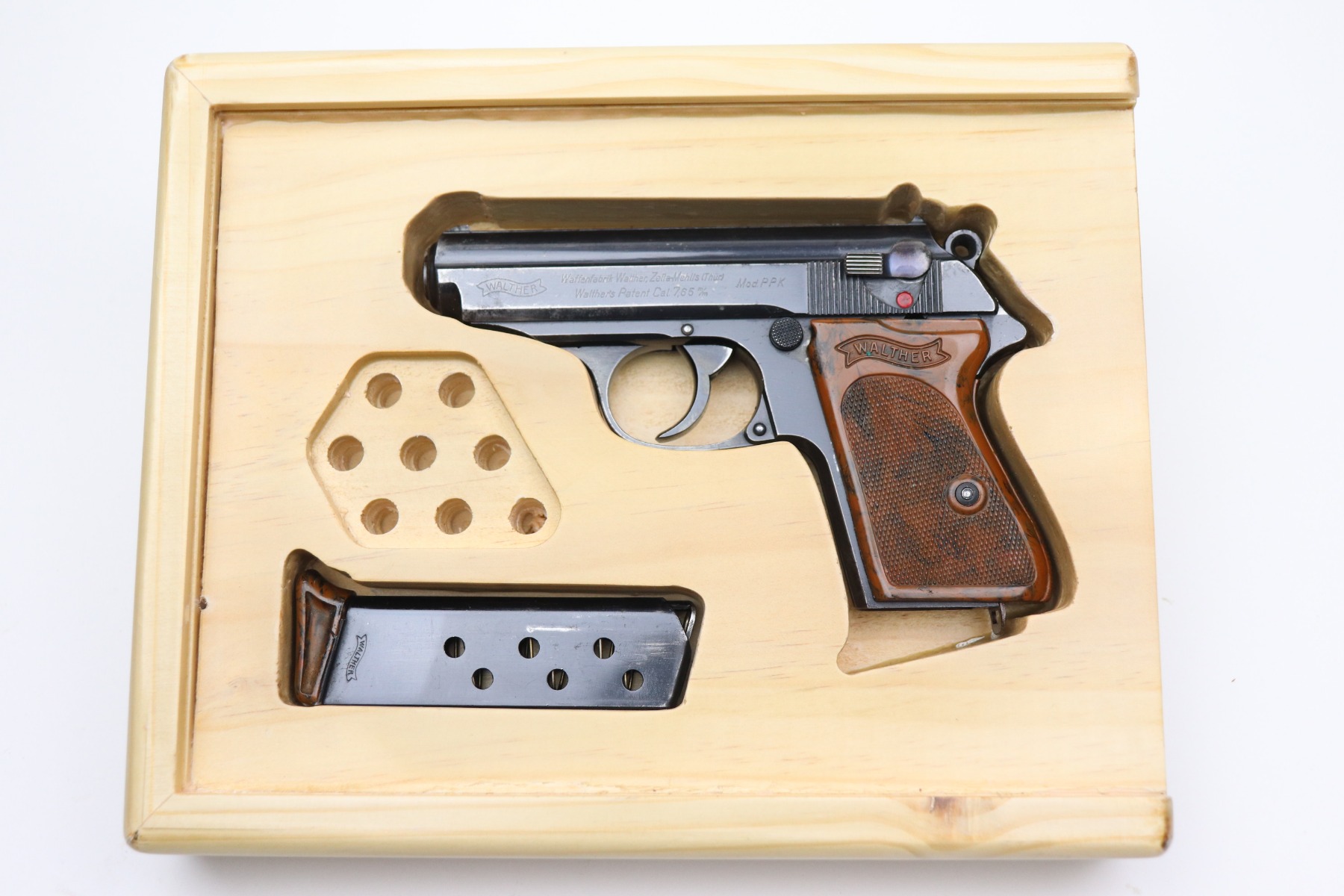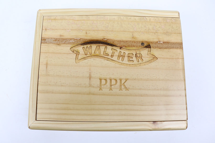 2/4/21 – This is a hand-made wooden presentation case for a Walther PPK pistol. New production and unused. Completely wooden construction with a sliding lid. Excellent craftsmanship.