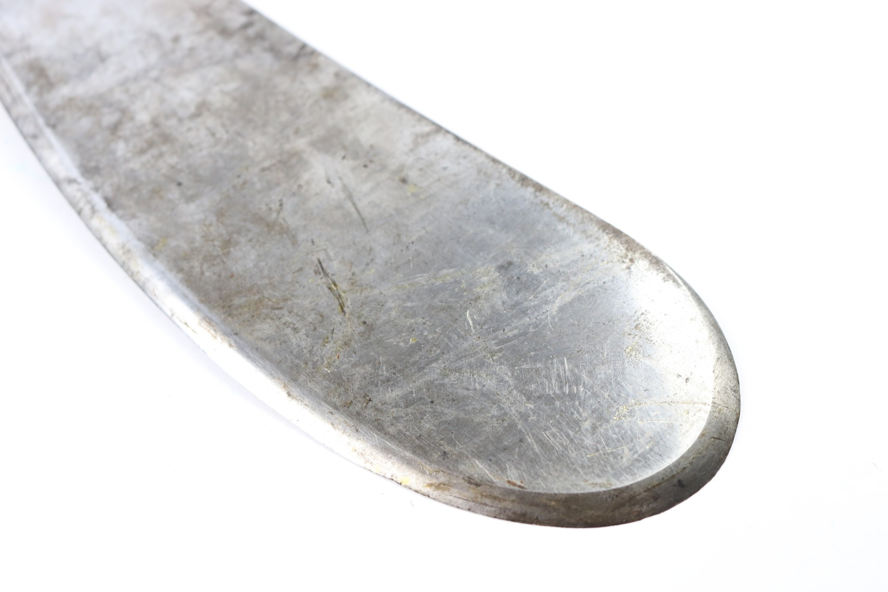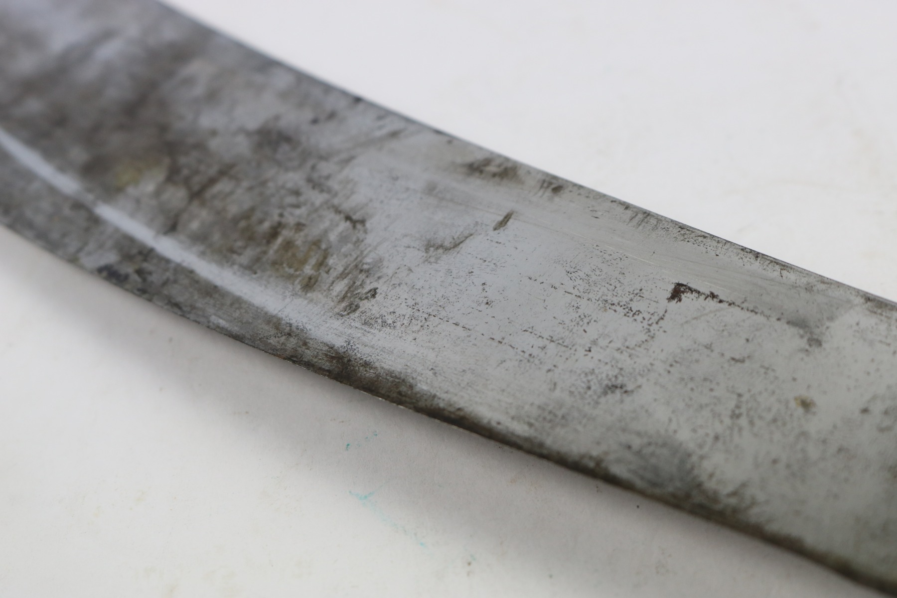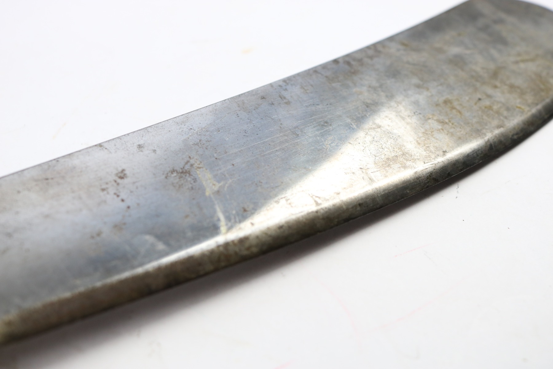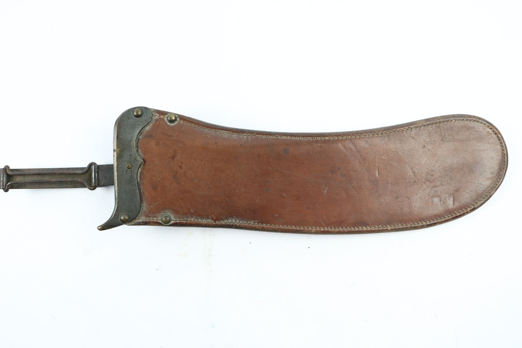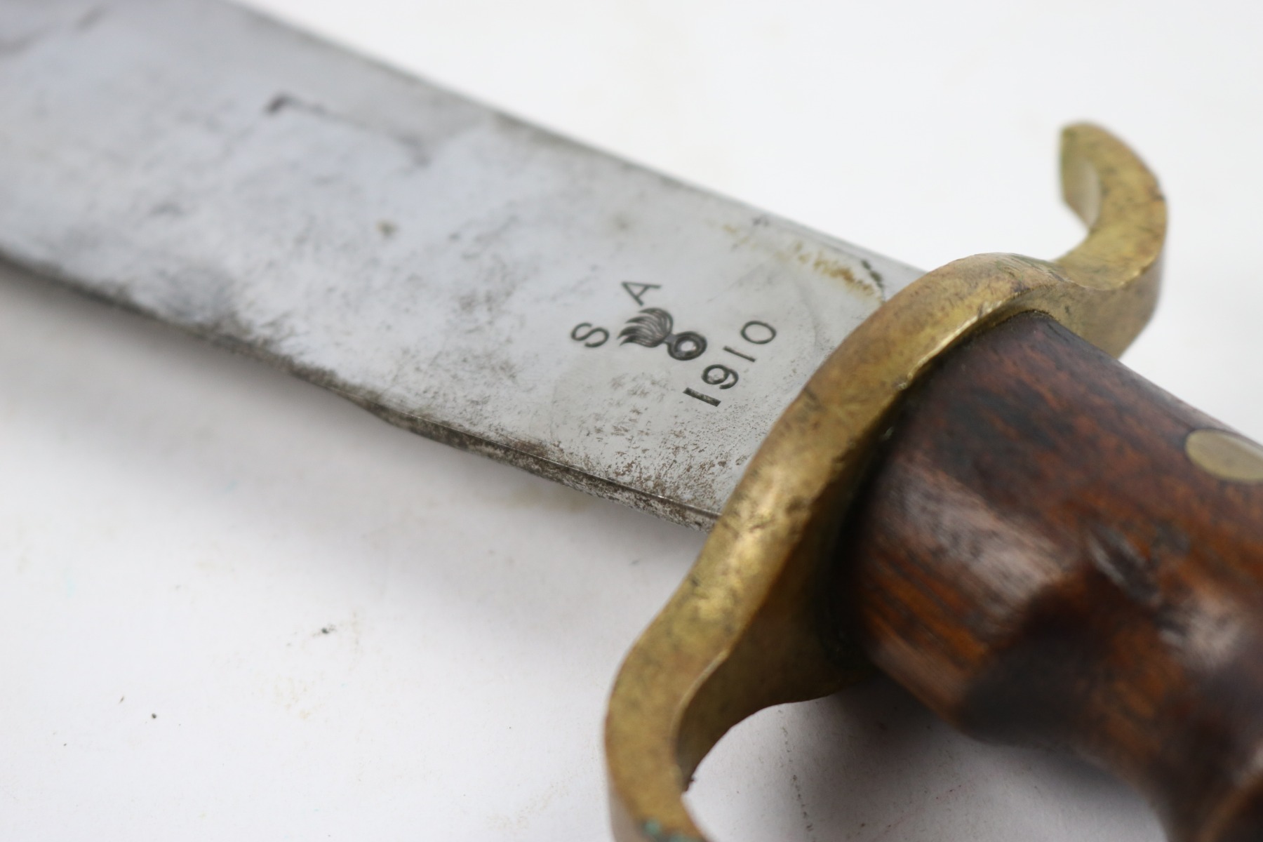 5/23/18 – This is an original WW1 US Bolo knife. The blade is “SA” marked for springfield arsenal and 1910. The reverse side US 14342 stamped. The blade is in great shape but has some light browning discoloration and a few surface scratches. The edge doesn’t appear to be messed with or sharpened. The handle and scabbard are both in excellent condition. The scabbard is 1912 dated made by Rock Island Arsenal. Guaranteed original and authentic.